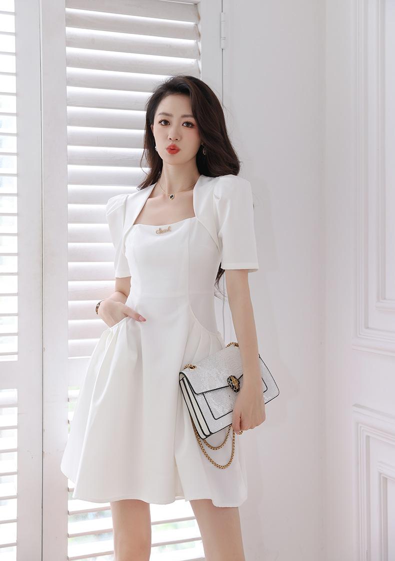 Ropa de Verano para Mujer Nueva 2025, Elegante Femenina, Look Adelgazante de Cintura Vestido Francés Alto y Pequeño, Falda Tutú 20397
