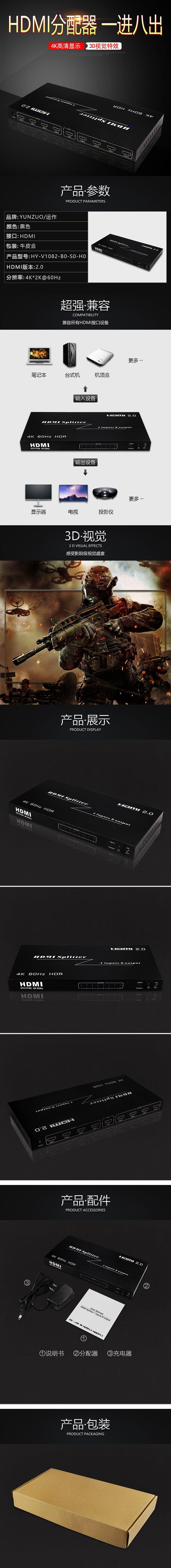 Distribuidor HDMI2.0 en funcionamiento, divisor de pantalla de una entrada y ocho salidas, divisor de pantalla 4K60 HDMI1X8