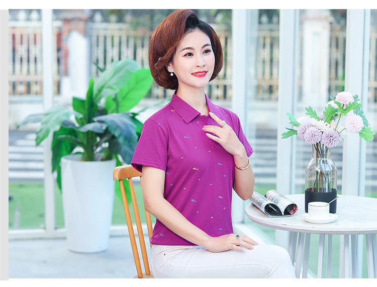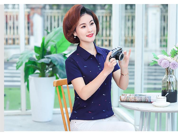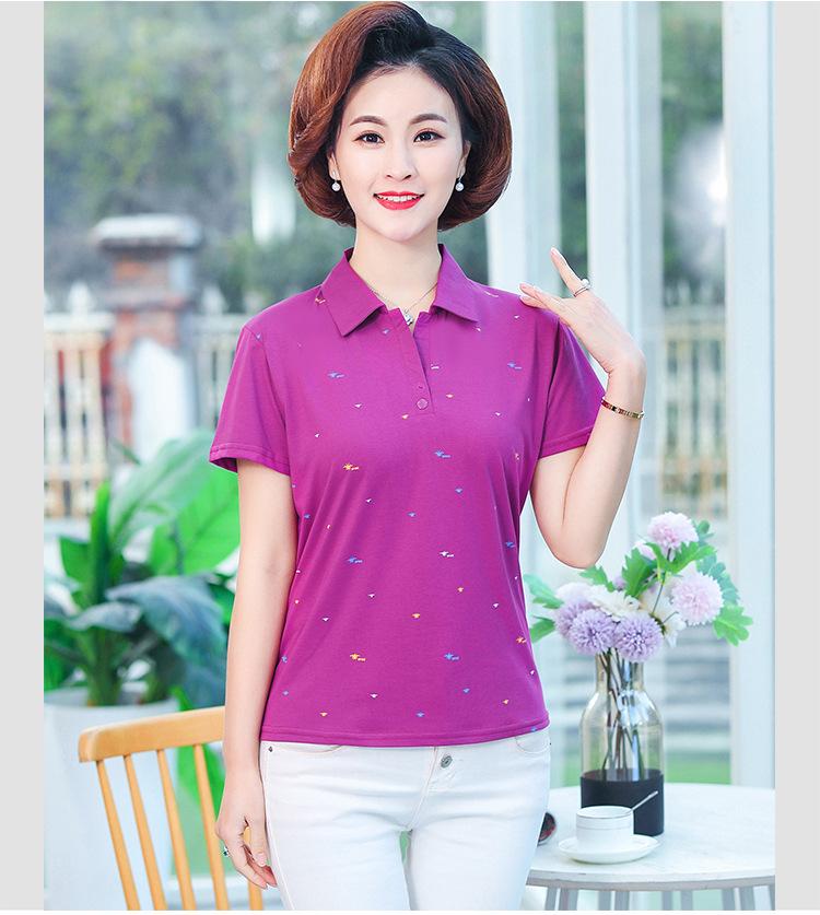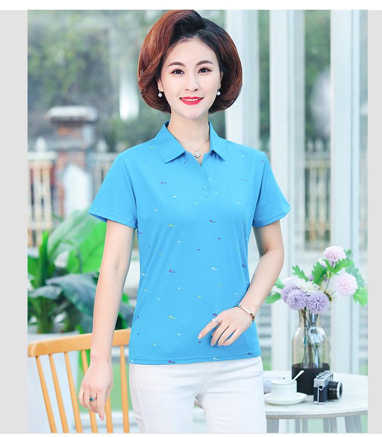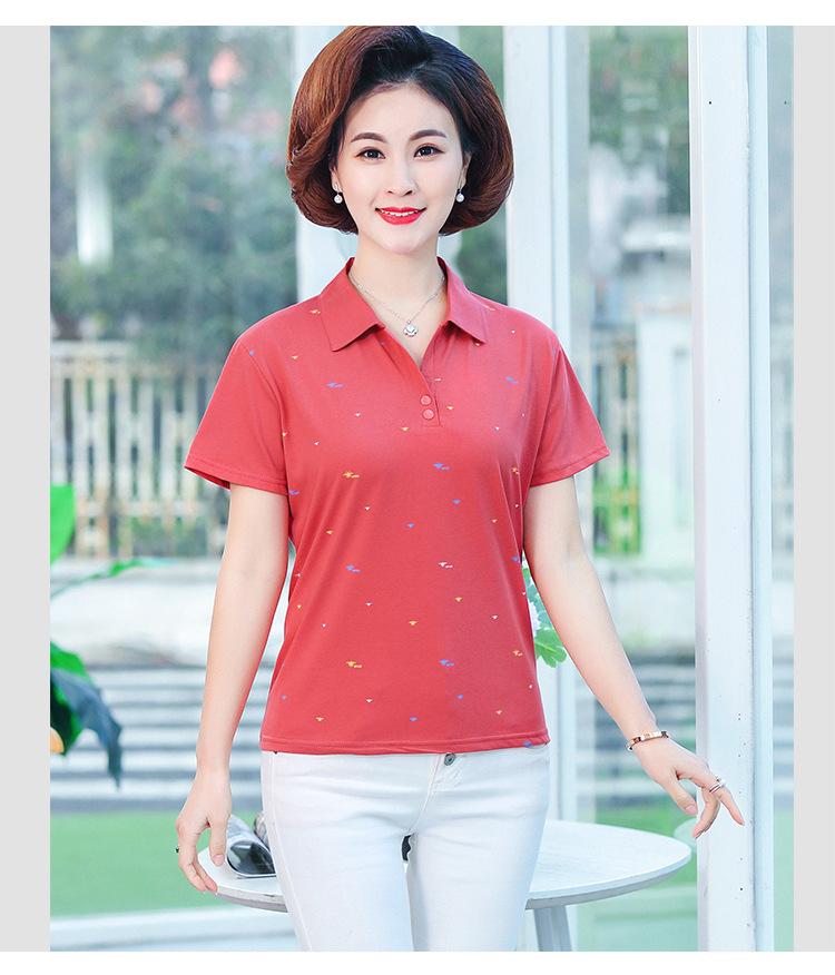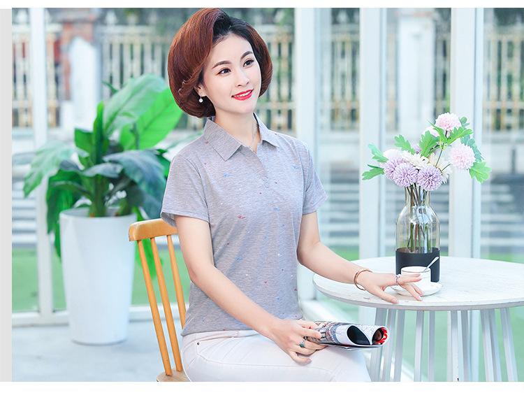 Camiseta de manga corta para mujer, nueva camiseta polo de verano 2023, camisa pequeña con solapa de algodón, top deportivo informal para mamá de mediana edad