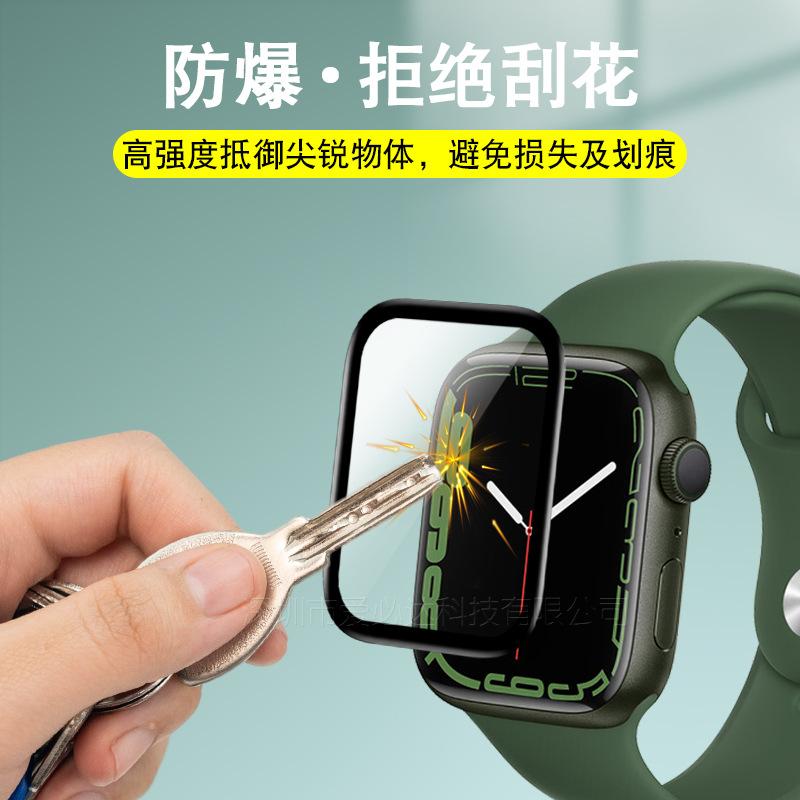 Adecuado para Apple Watch Watch7 Película de Pantalla Completa Curvada con Pegamento Completo Iwatch8/6 Película Templada Suave 3D Compuesta