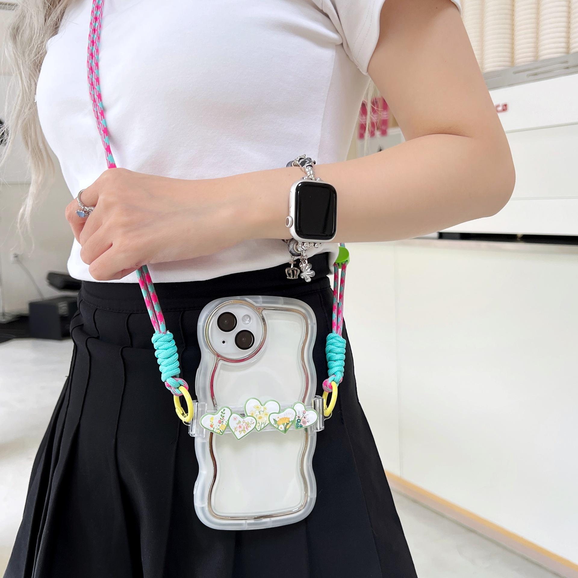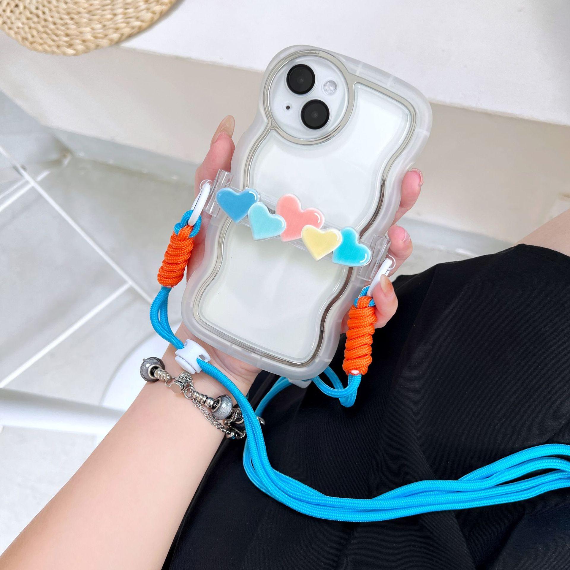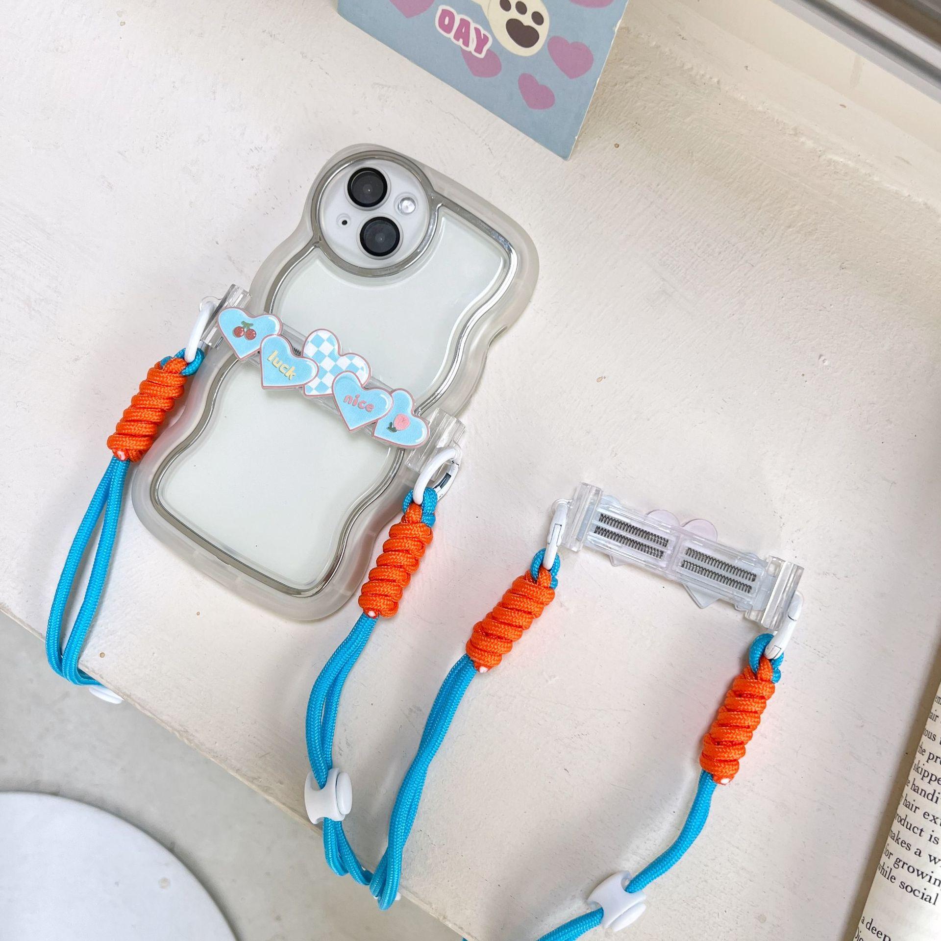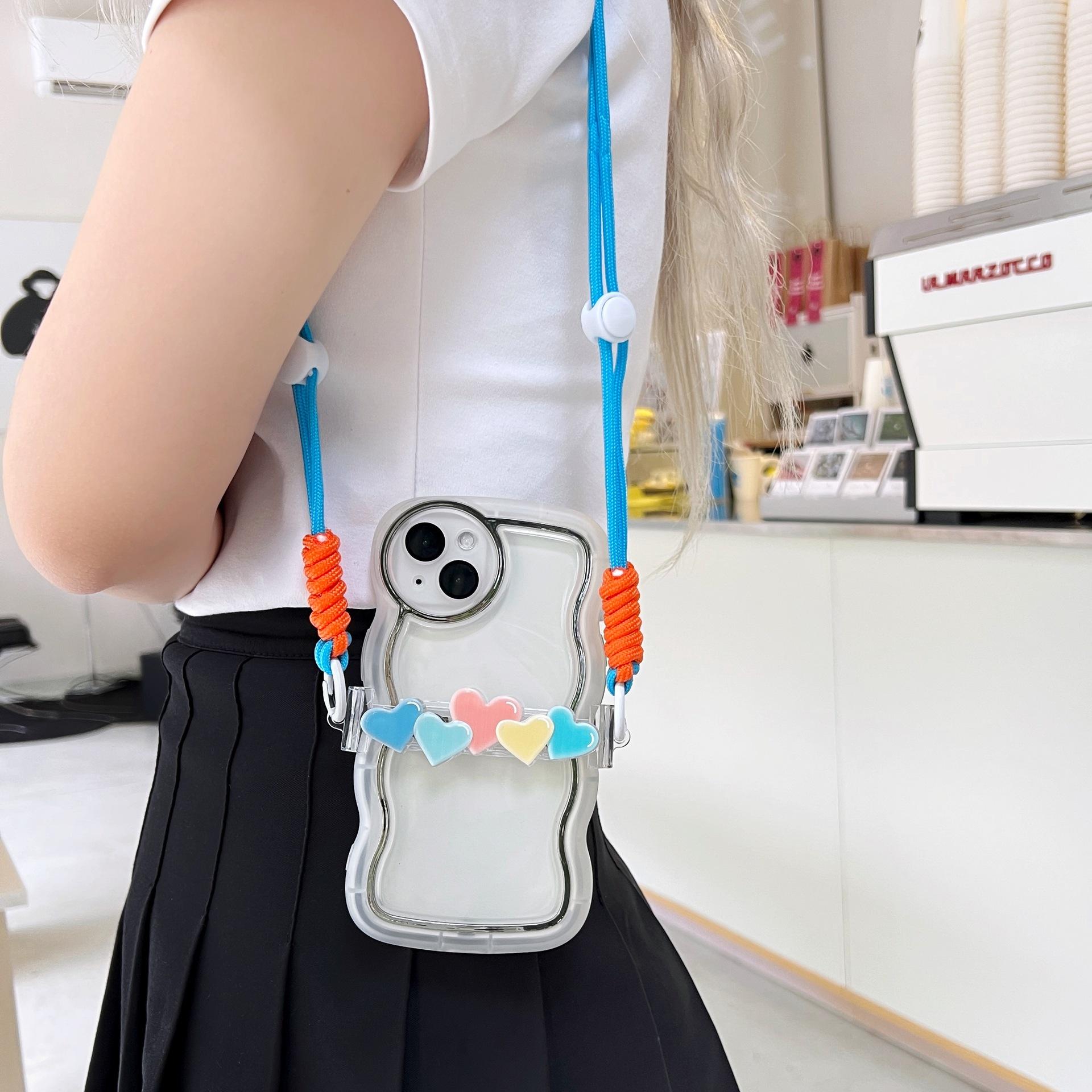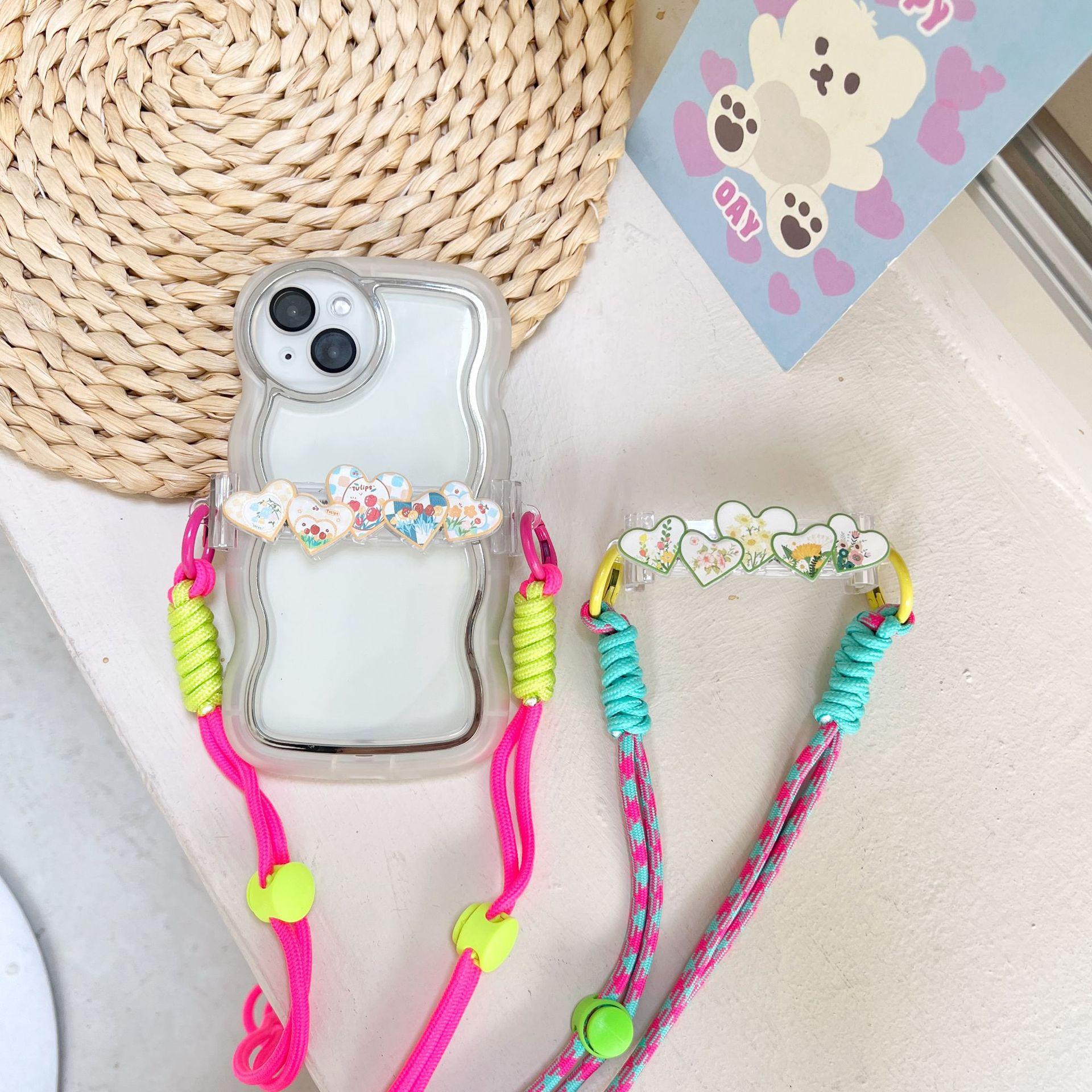 Adecuado para teléfono móvil Apple, lindo clip trasero, cordón cruzado, puede respaldar el iPhone 14plus, bandolera, clip trasero de amor de cinco colores