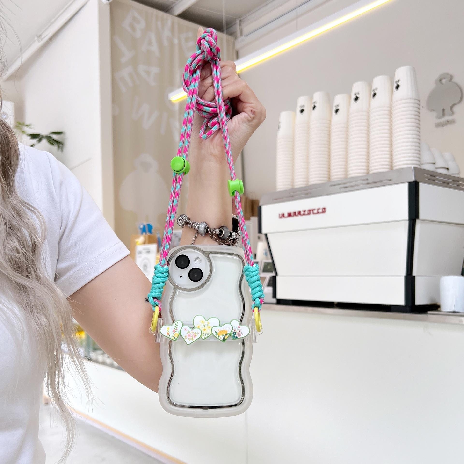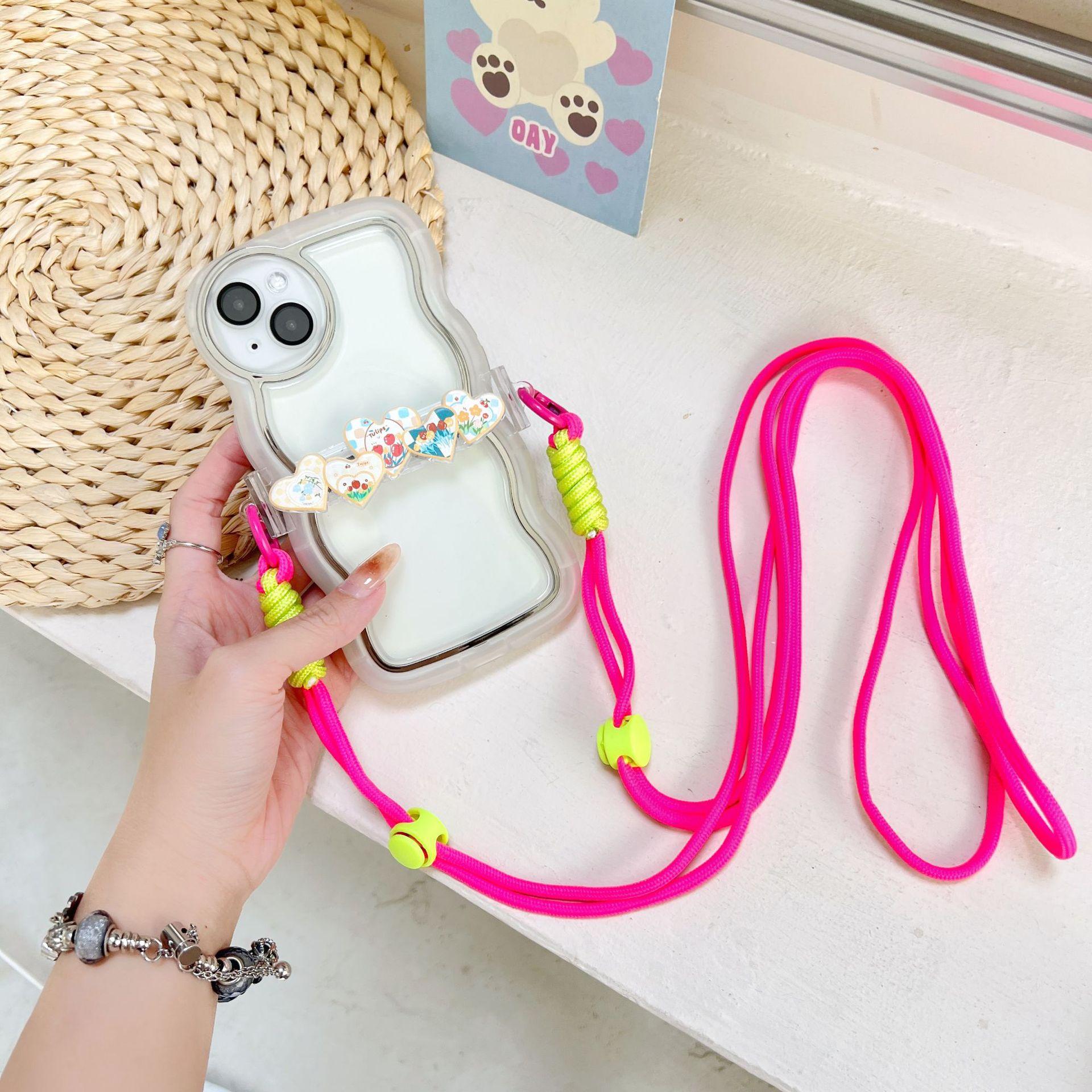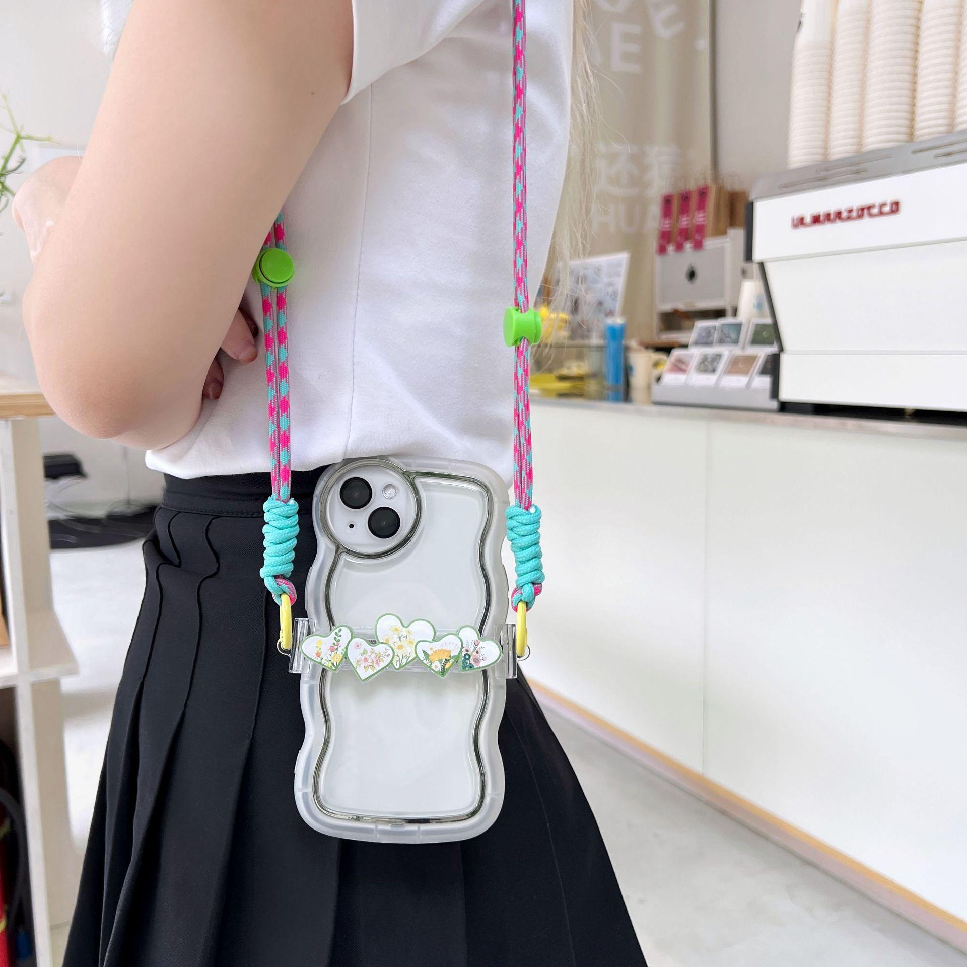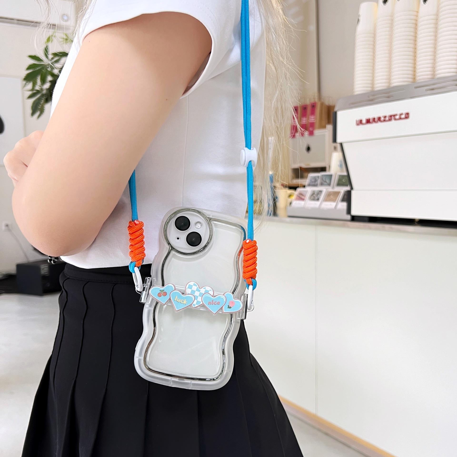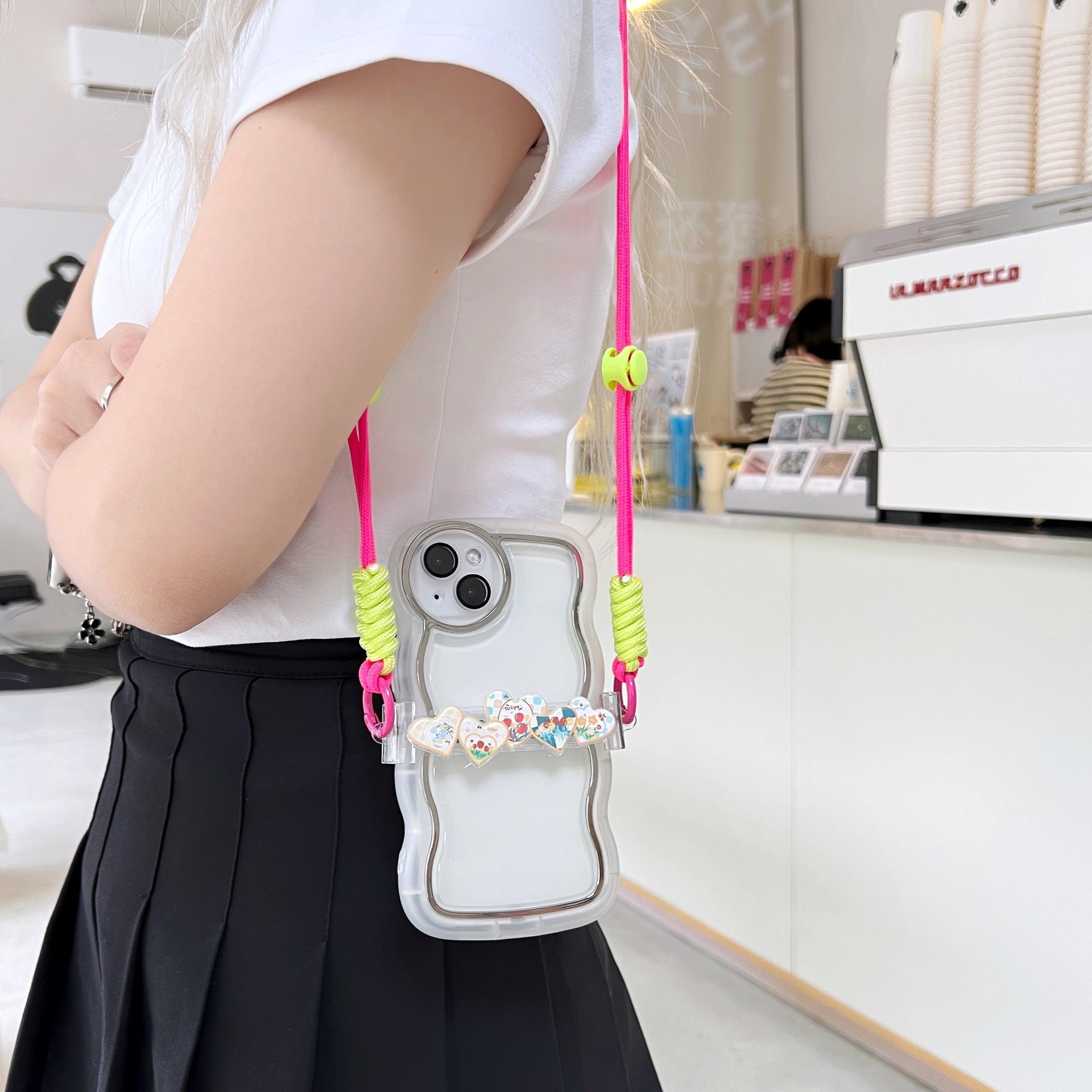 Adecuado para teléfono móvil Apple, lindo clip trasero, cordón cruzado, puede respaldar el iPhone 14plus, bandolera, clip trasero de amor de cinco colores