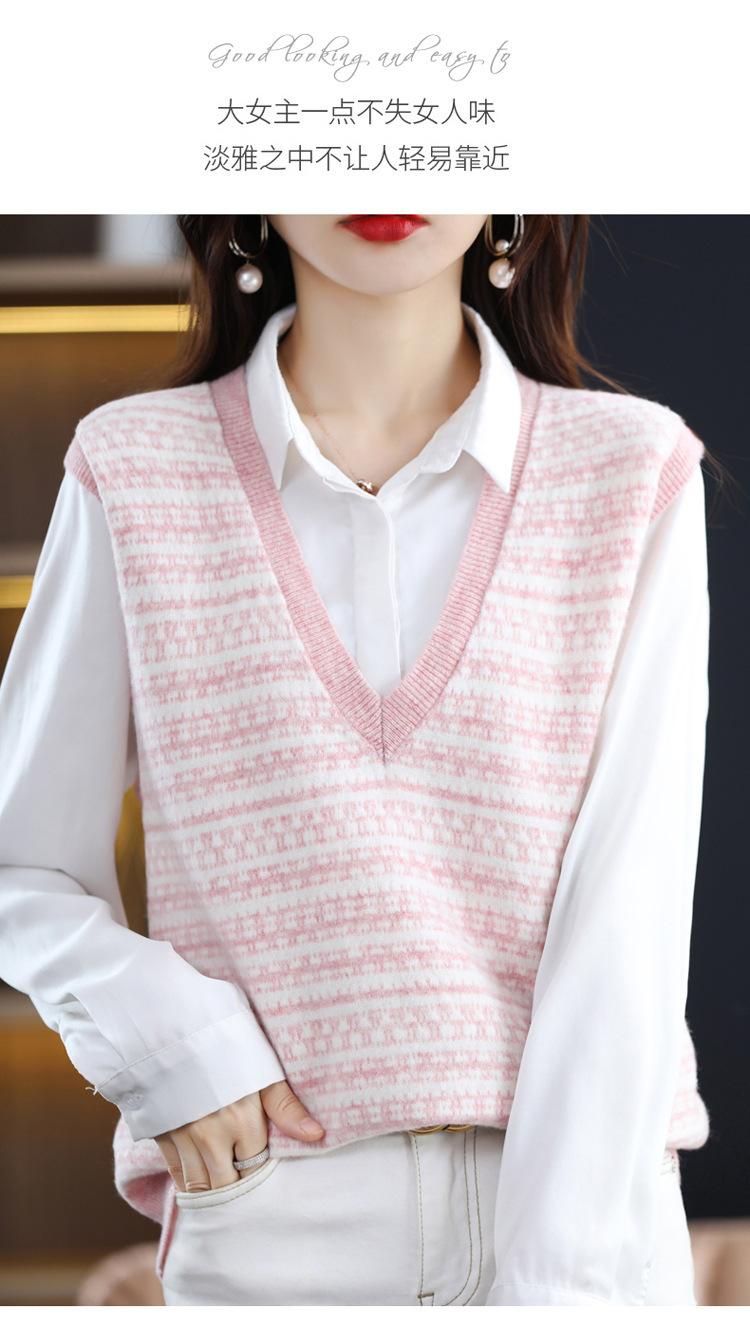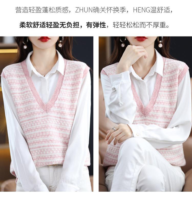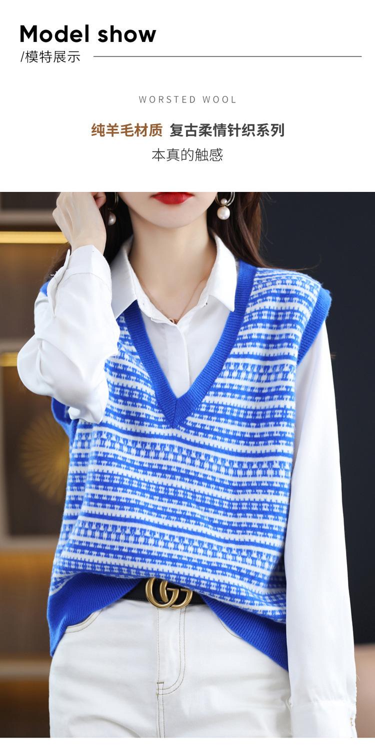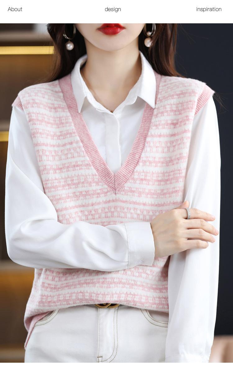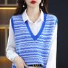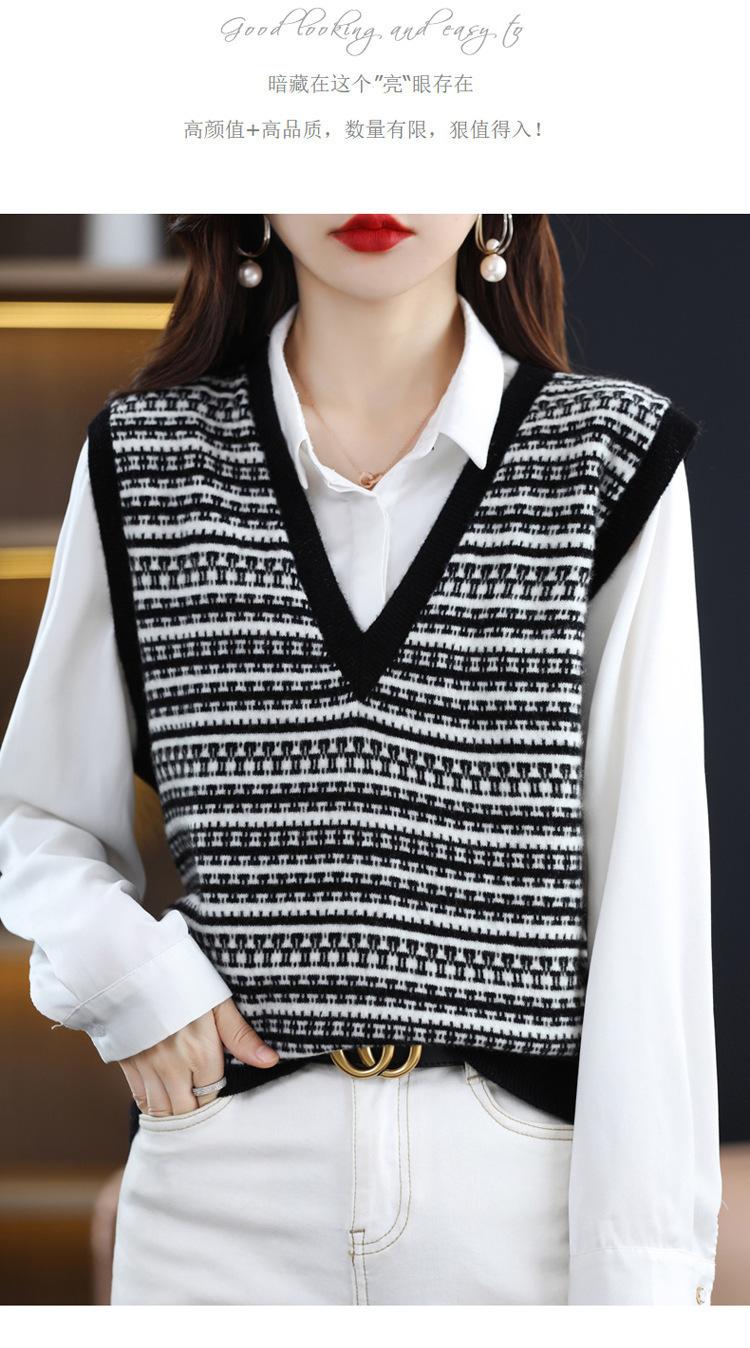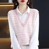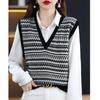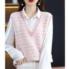 23 otoño e invierno Nuevo chaleco de punto sin mangas con cuello en V para mujer, suéter suelto de cachemira a rayas, chaleco de lana