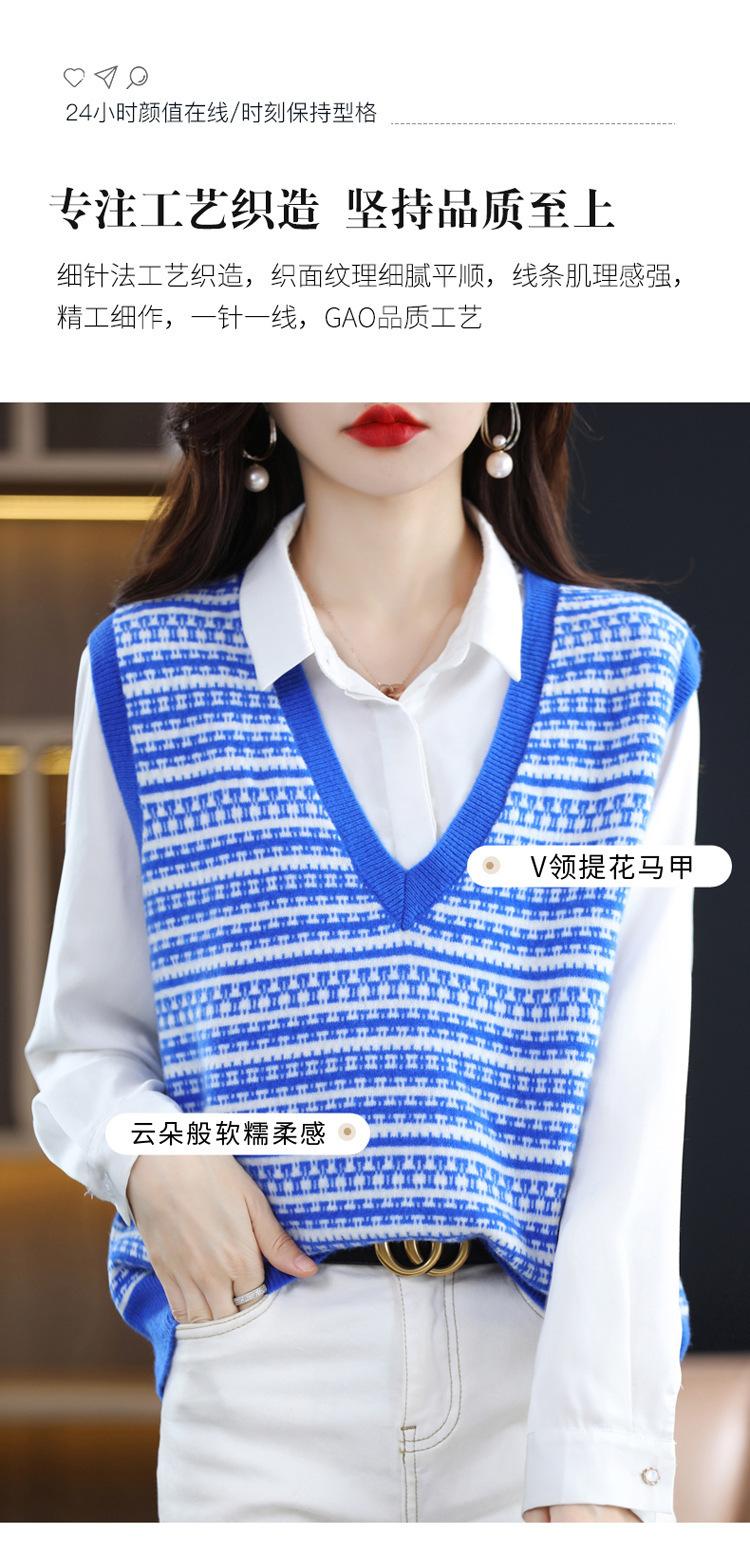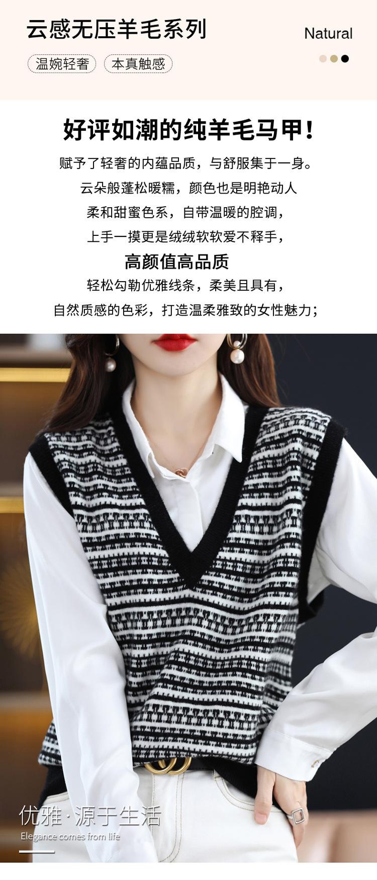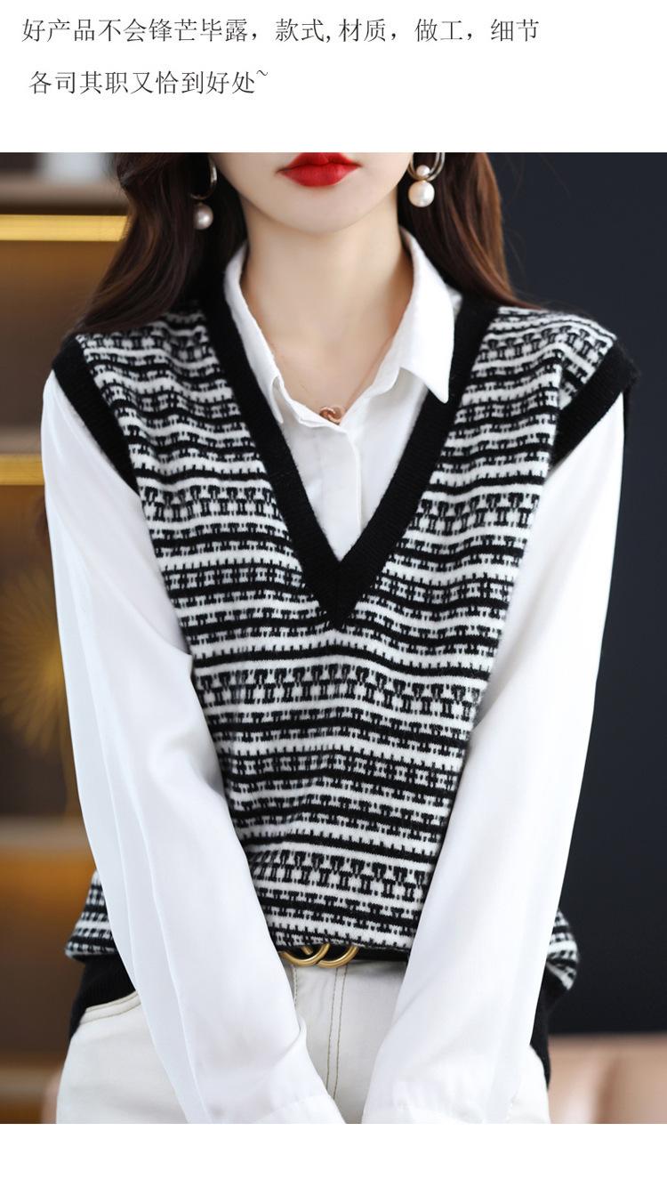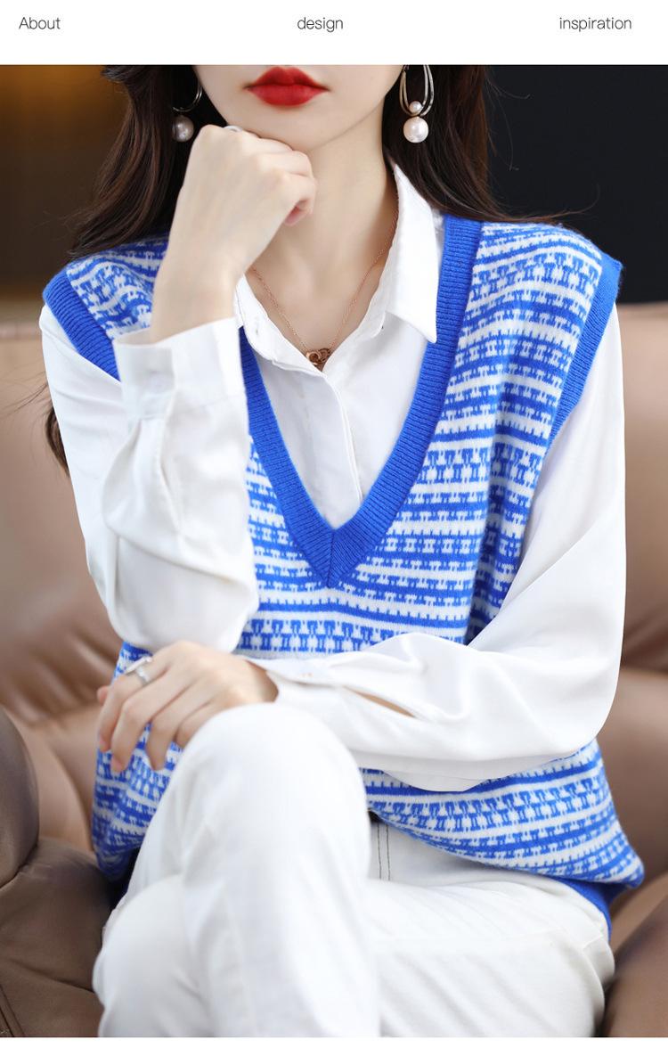 23 otoño e invierno Nuevo chaleco de punto sin mangas con cuello en V para mujer, suéter suelto de cachemira a rayas, chaleco de lana