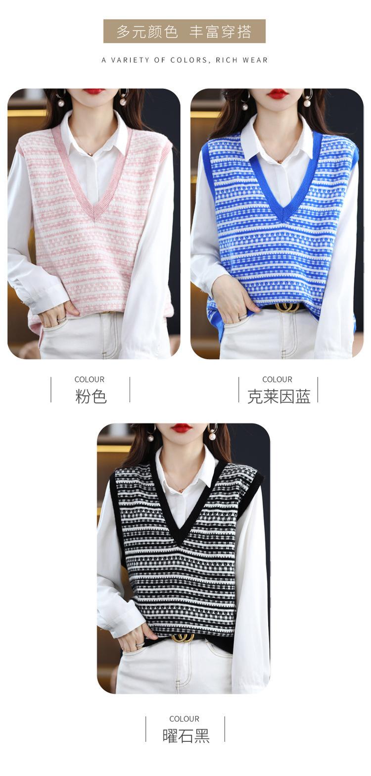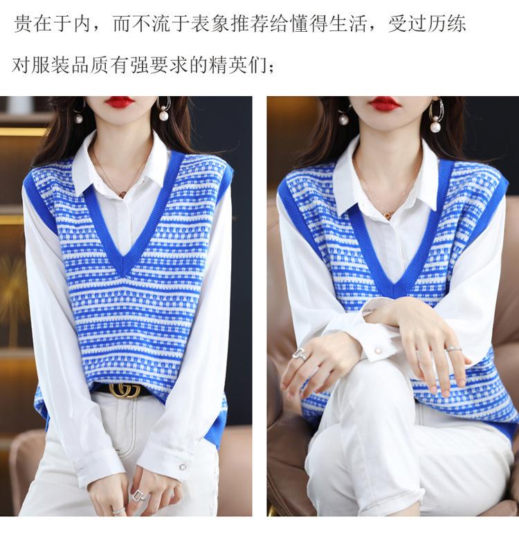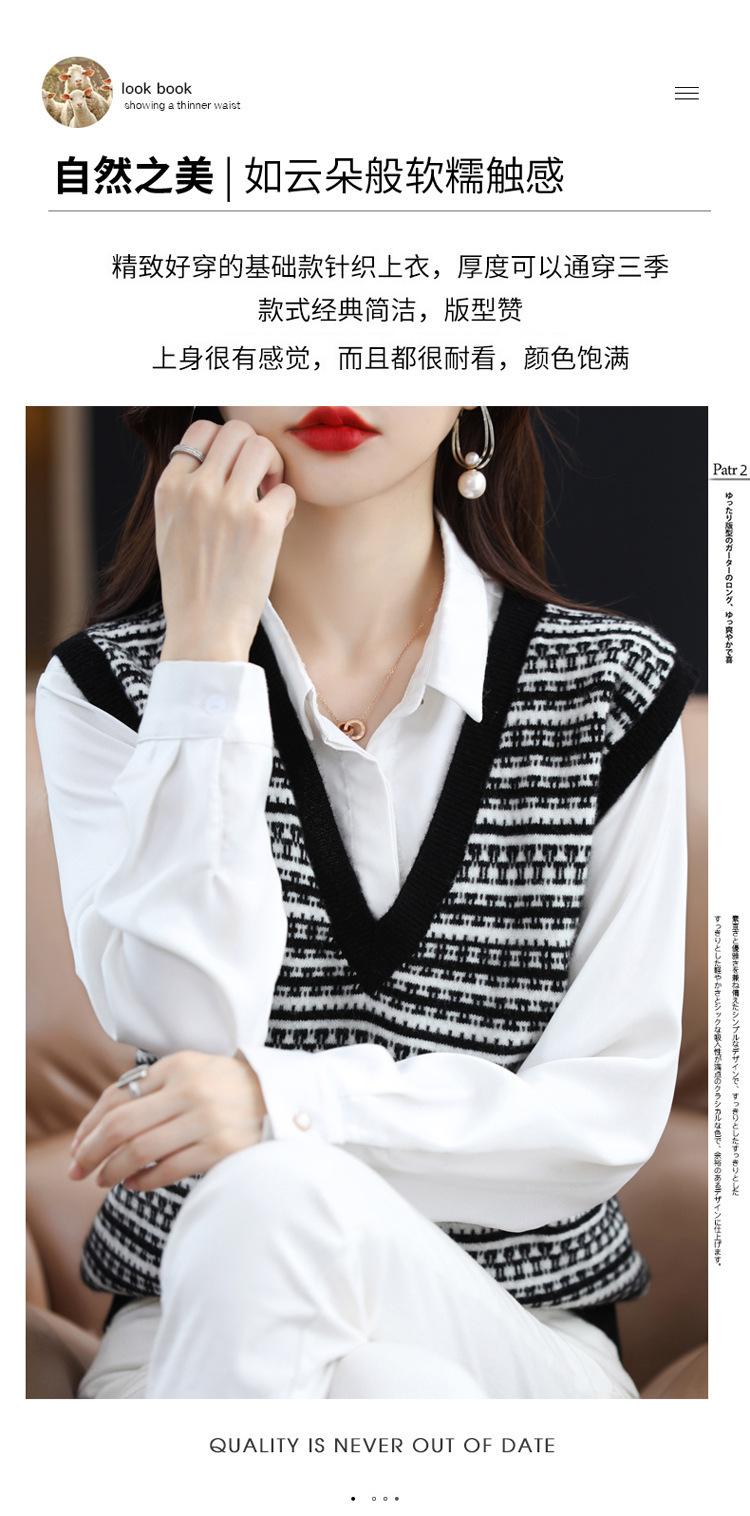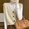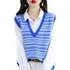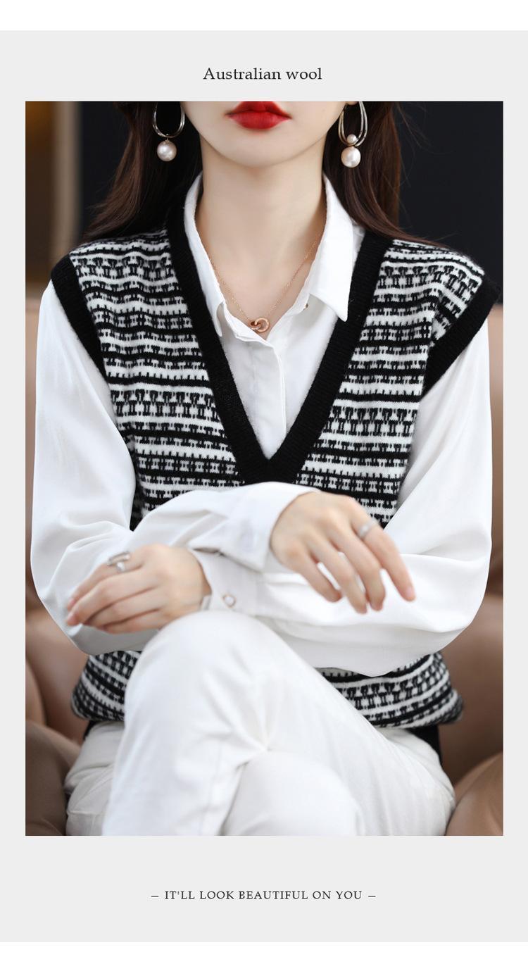 23 otoño e invierno Nuevo chaleco de punto sin mangas con cuello en V para mujer, suéter suelto de cachemira a rayas, chaleco de lana