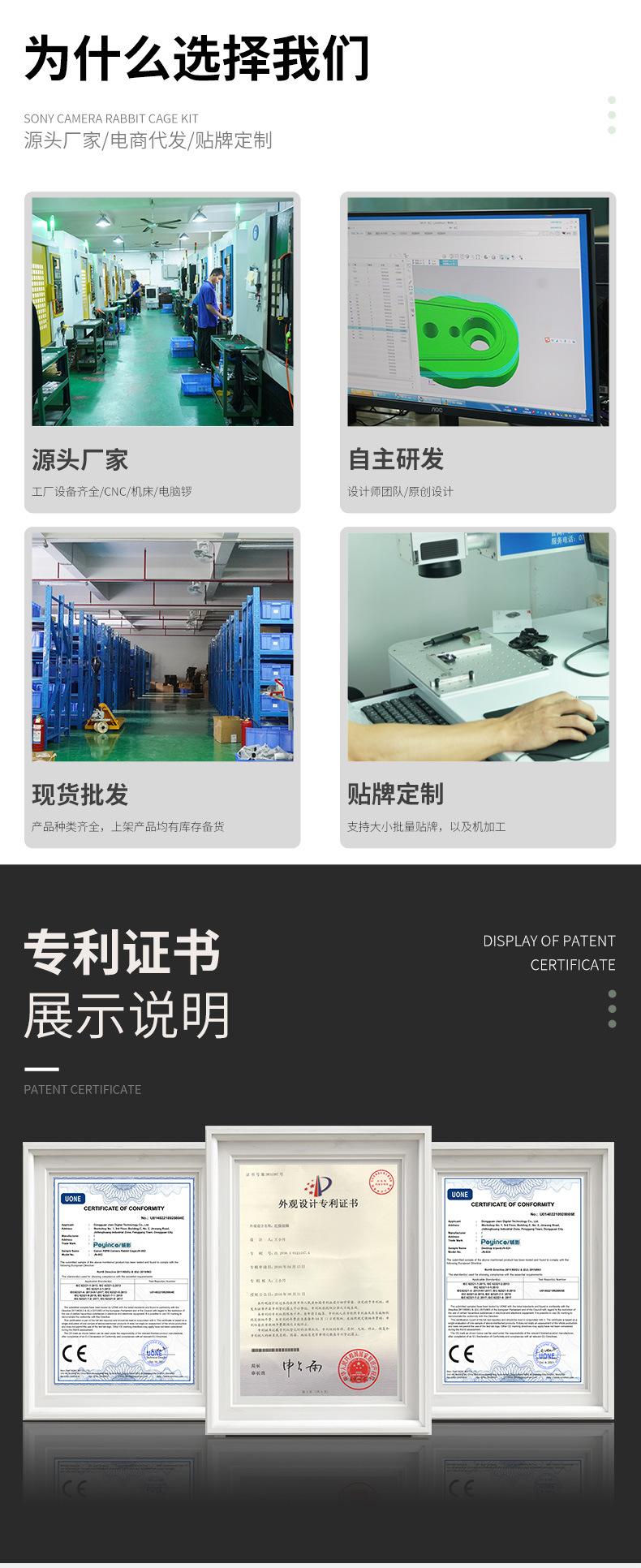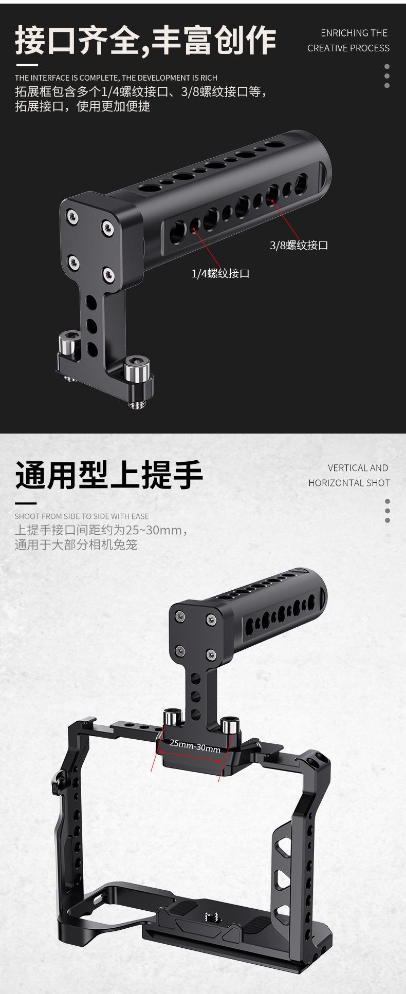 Jaula para cámara de conejo de Amazon, venta al por mayor, de aleación de aluminio, con asa superior para Sony y Canon.
