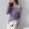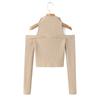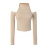 Otoño 2023 Nuevo Pure Spice Girls Suéter de punto con cuello alto y hombros descubiertos para mujer Suéter de manga larga adelgazante de corte entallado