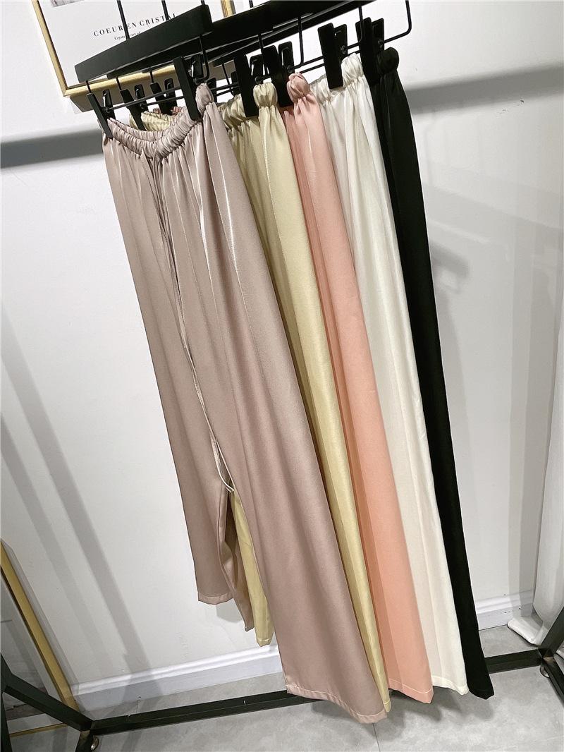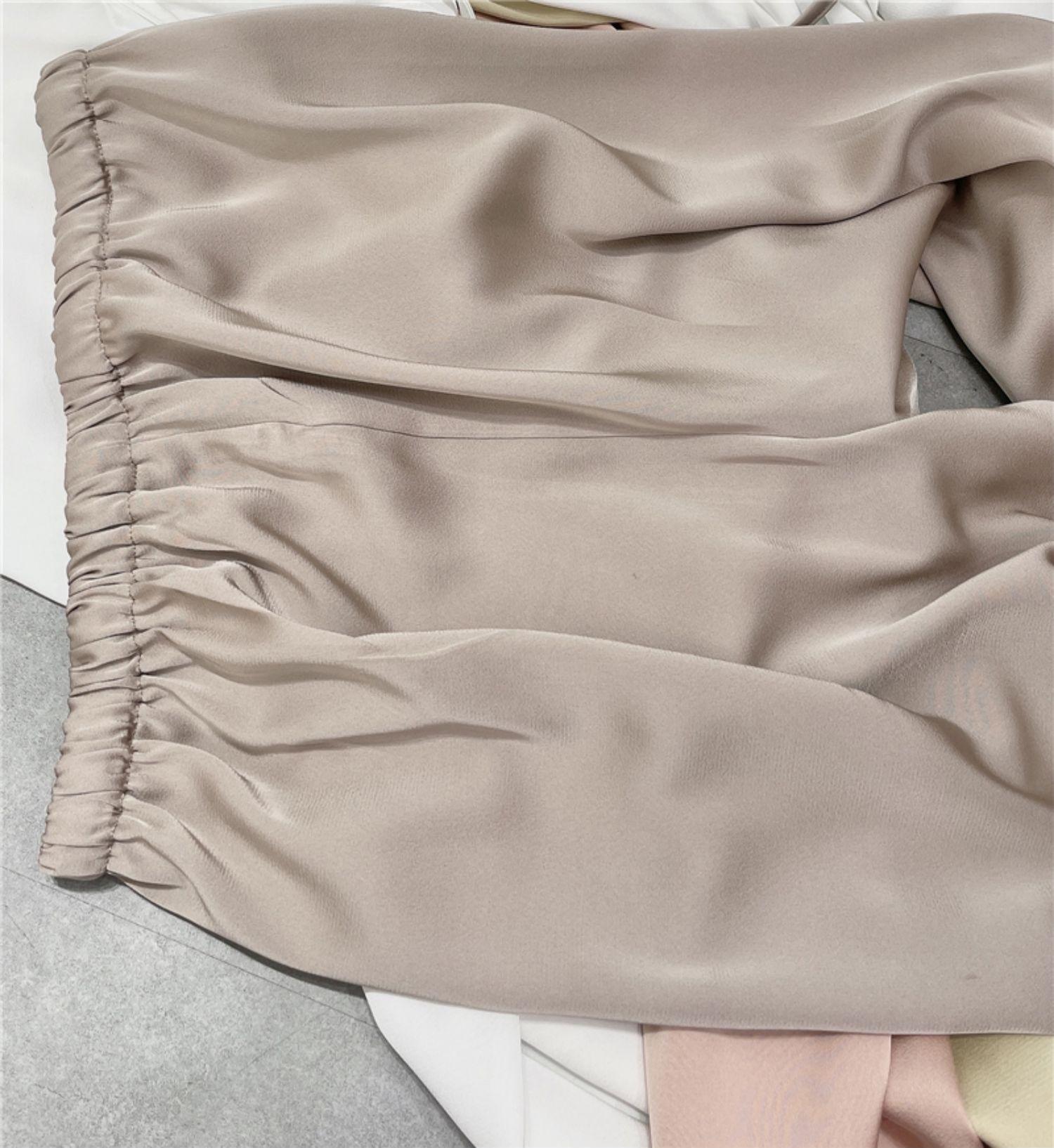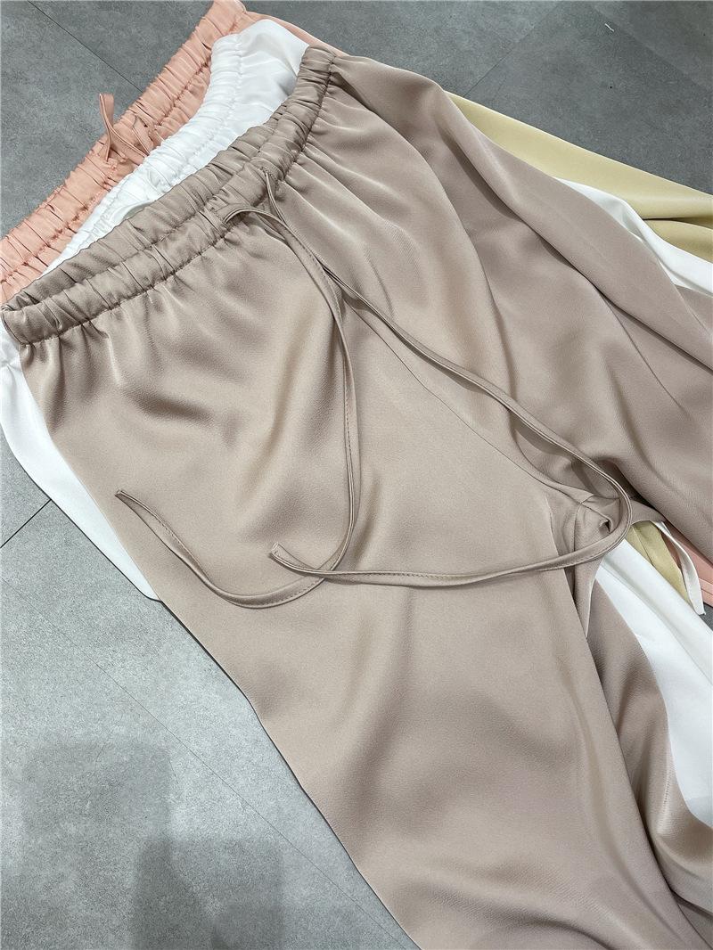Pantalones de Pierna Ancha de Satén de Triacetato de Seda para Mujer, Verano Delgados Elásticos con Cordón Versátiles Rectos Casuales Largos