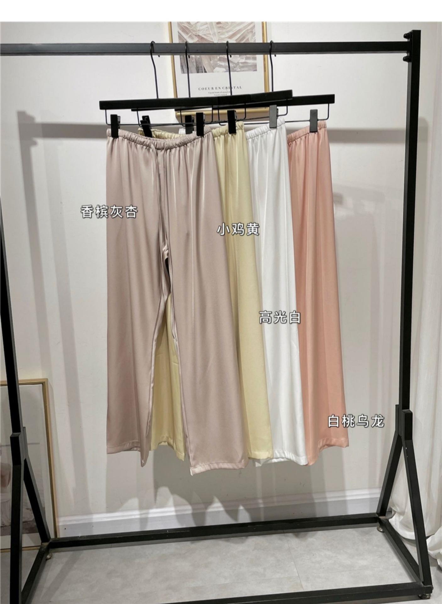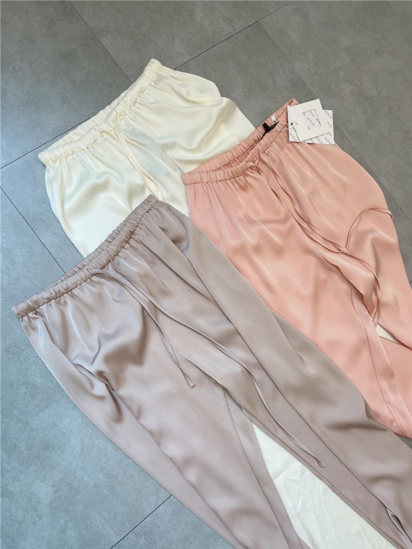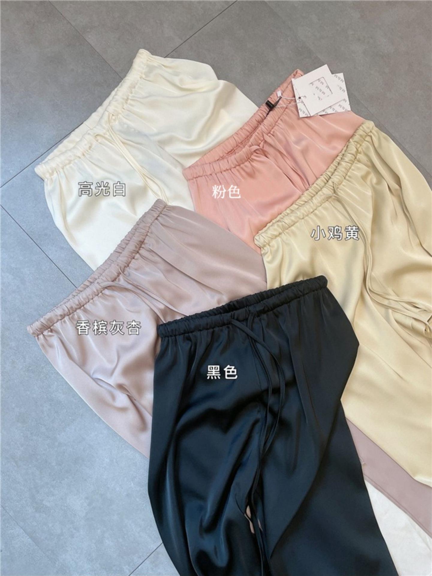 Pantalones de Pierna Ancha de Satén de Triacetato de Seda para Mujer, Verano Delgados Elásticos con Cordón Versátiles Rectos Casuales Largos