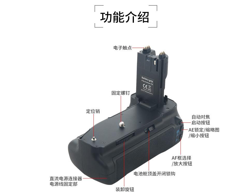 Compra Mango SLR RINGTEAM Yuntianmeng BG-E7 compatible con la cámara Canon 7D, caja de batería, mango de raqueta vertical al por mayor en Joom.pro