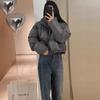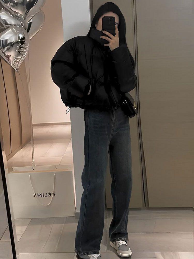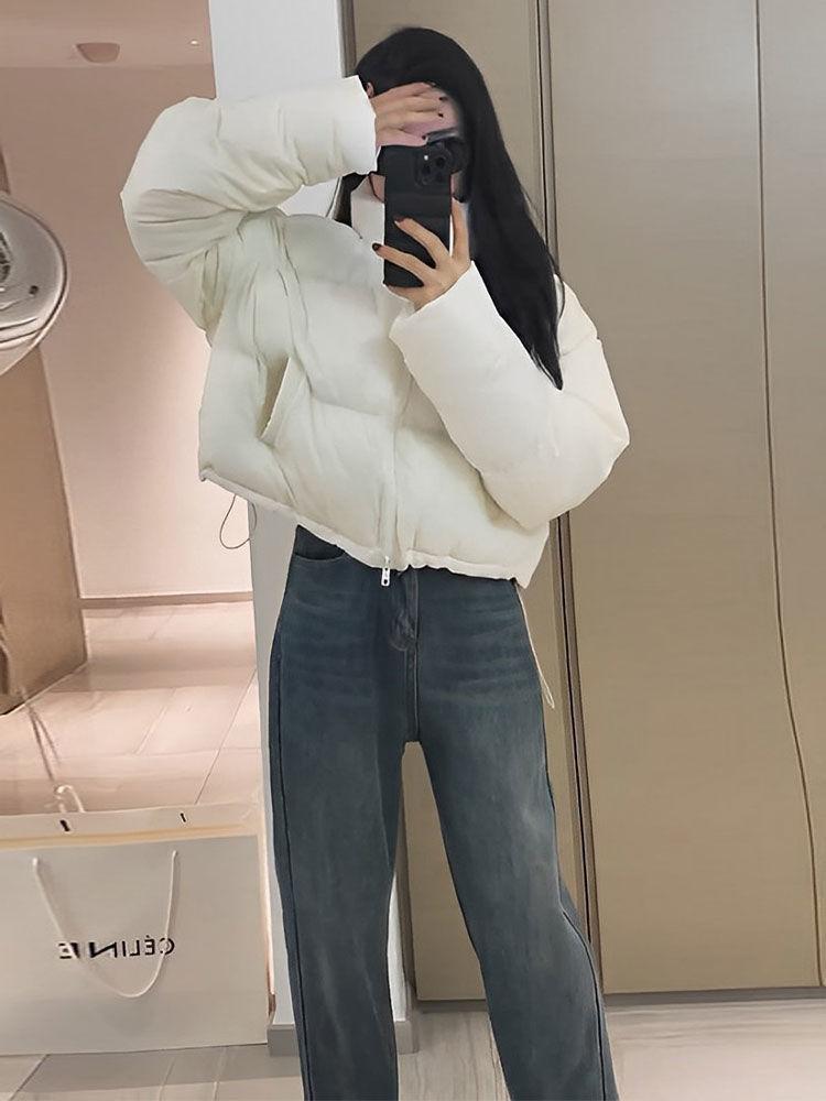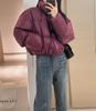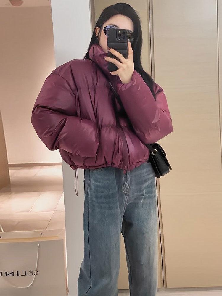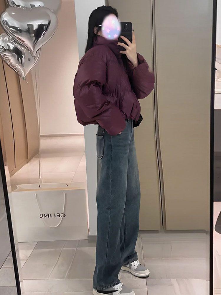 Chaqueta Corta Casual de Moda Roja Ankora para Mujer Invierno Acolchada Cálida Gruesa para Tallas Petite Abrigo de Algodón Suelto Moderno