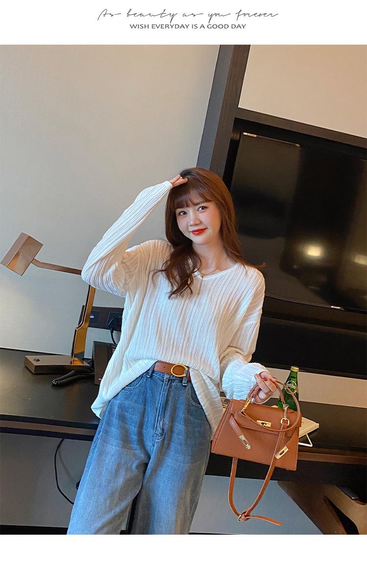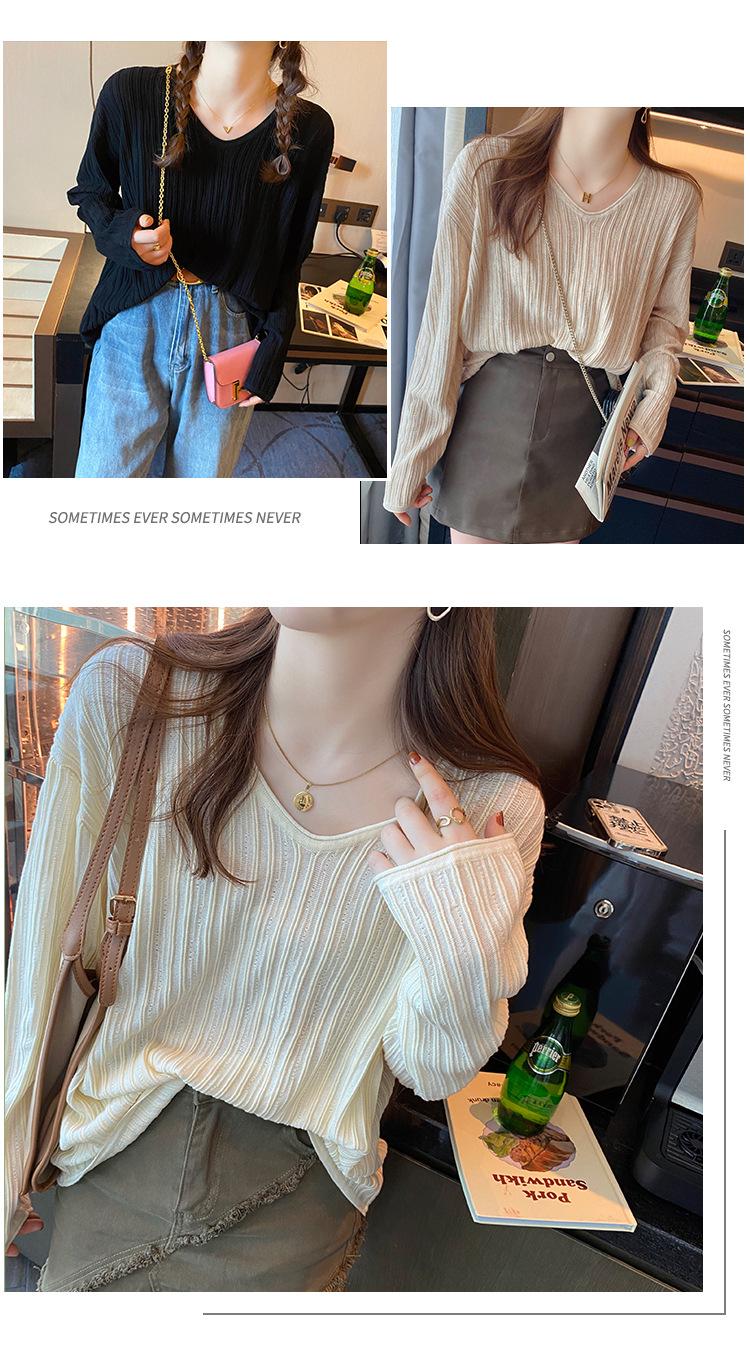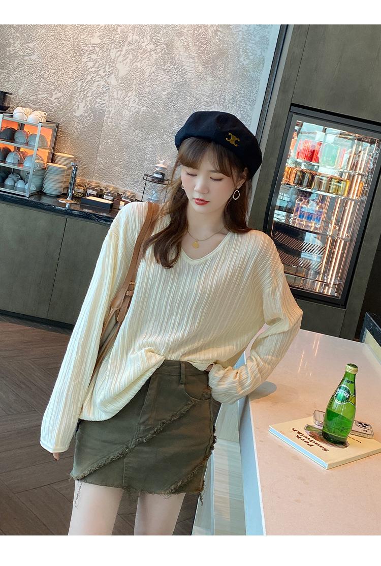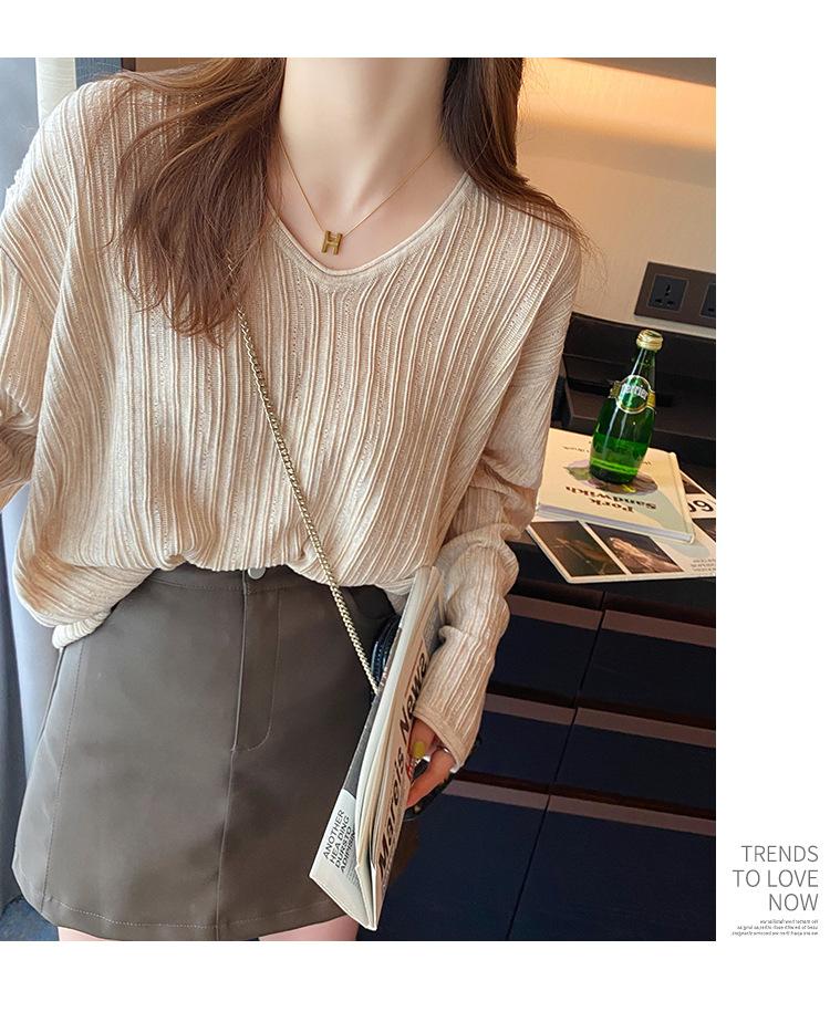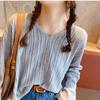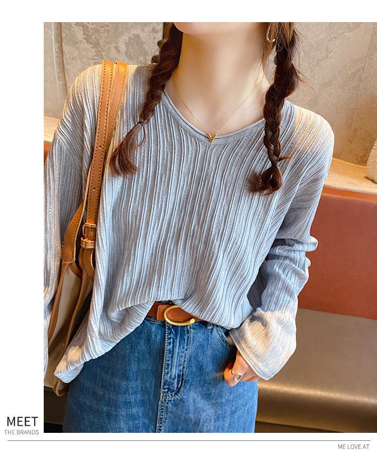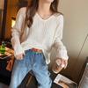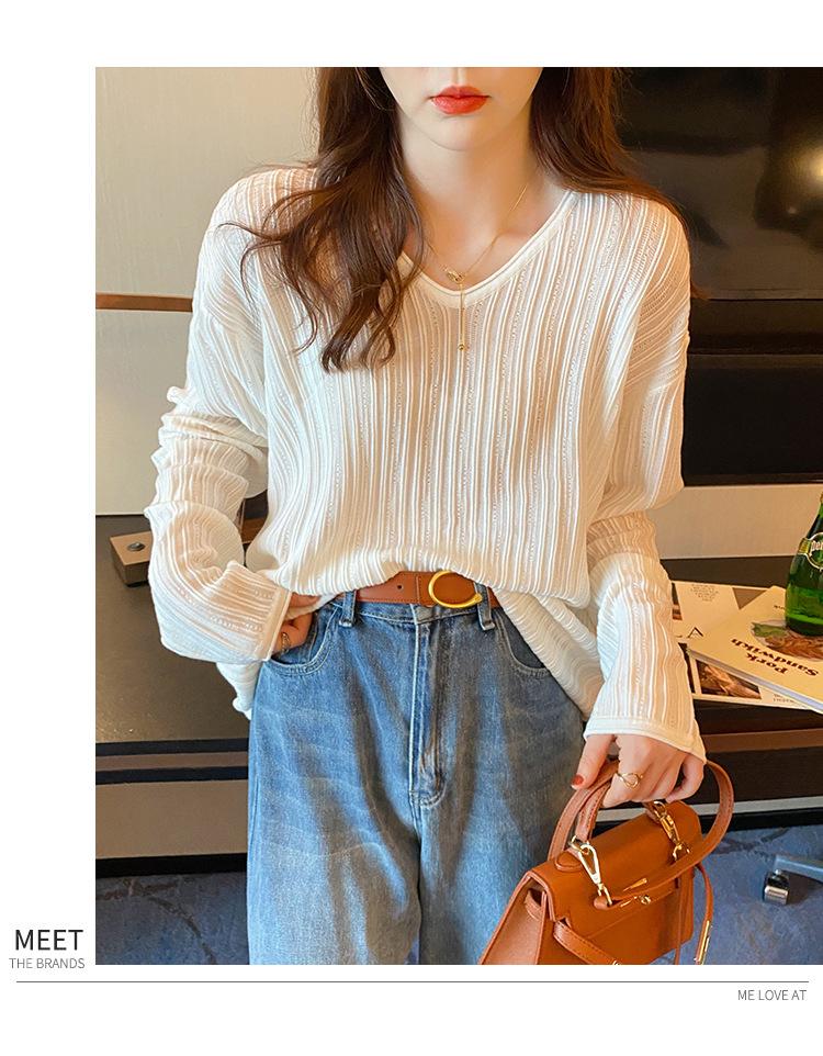 Suéter de cuello en V para mujer, camisa fina con diseño interior, suéter holgado estilo occidental, top de manga larga, primavera y otoño