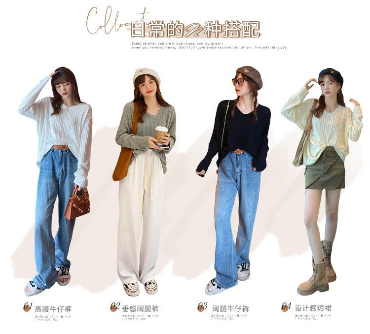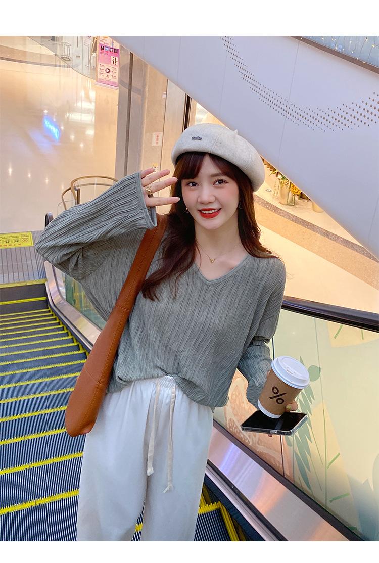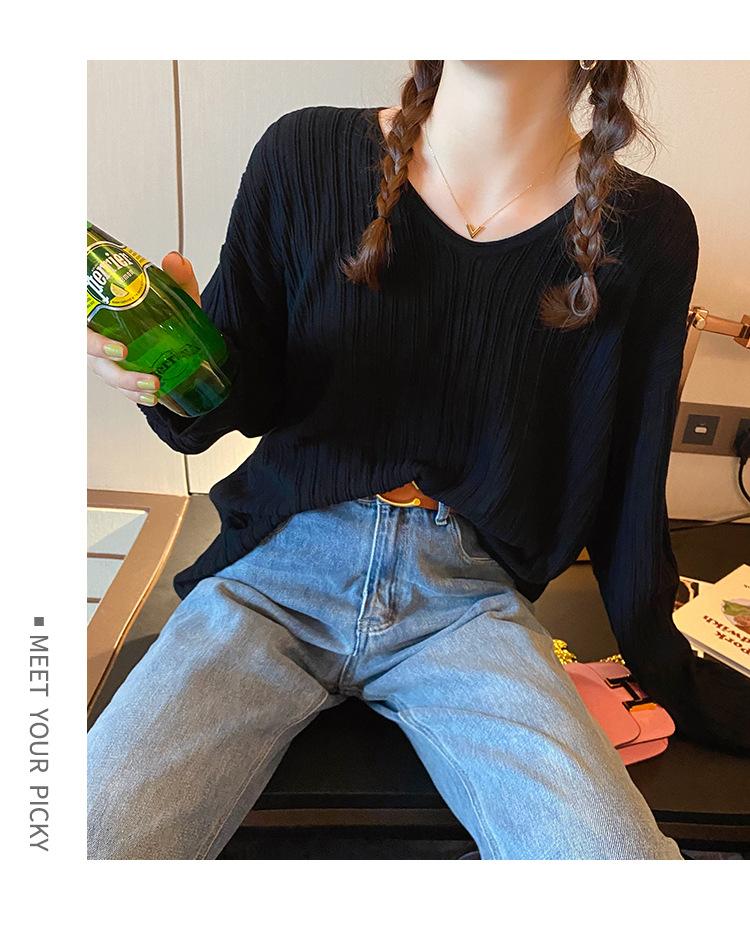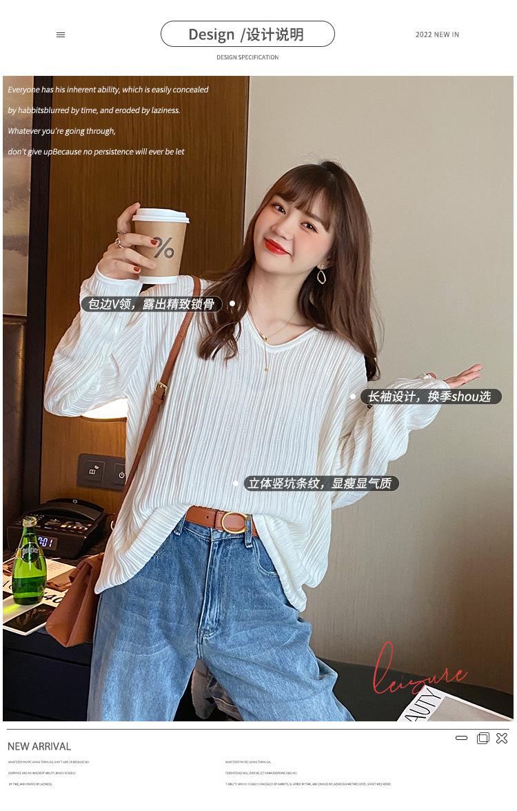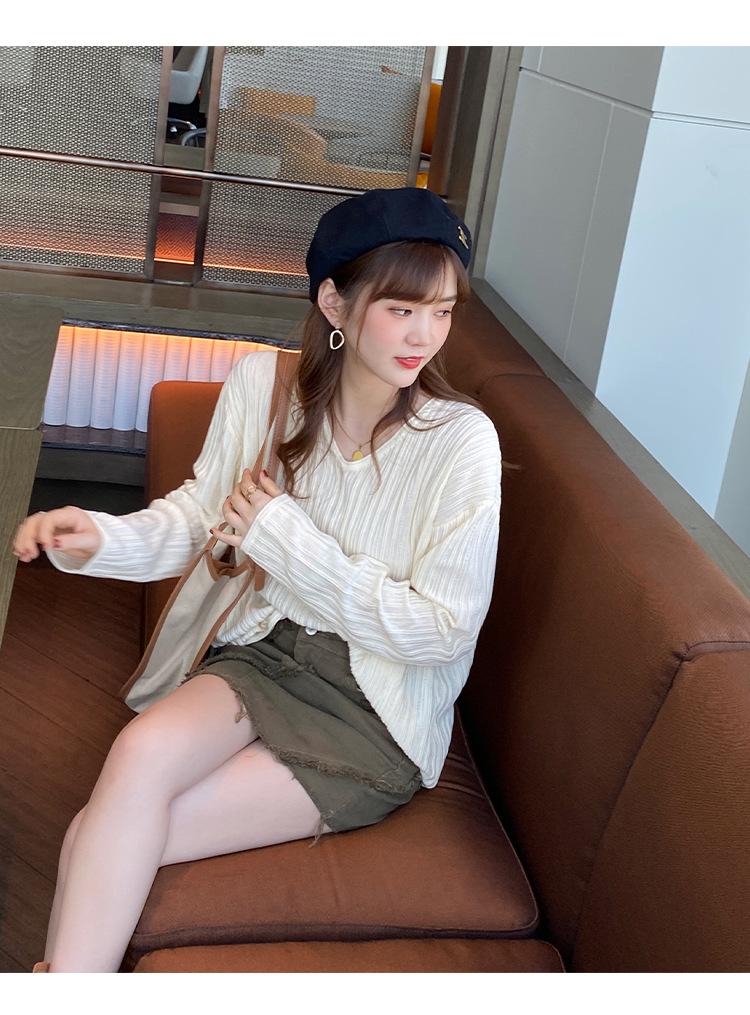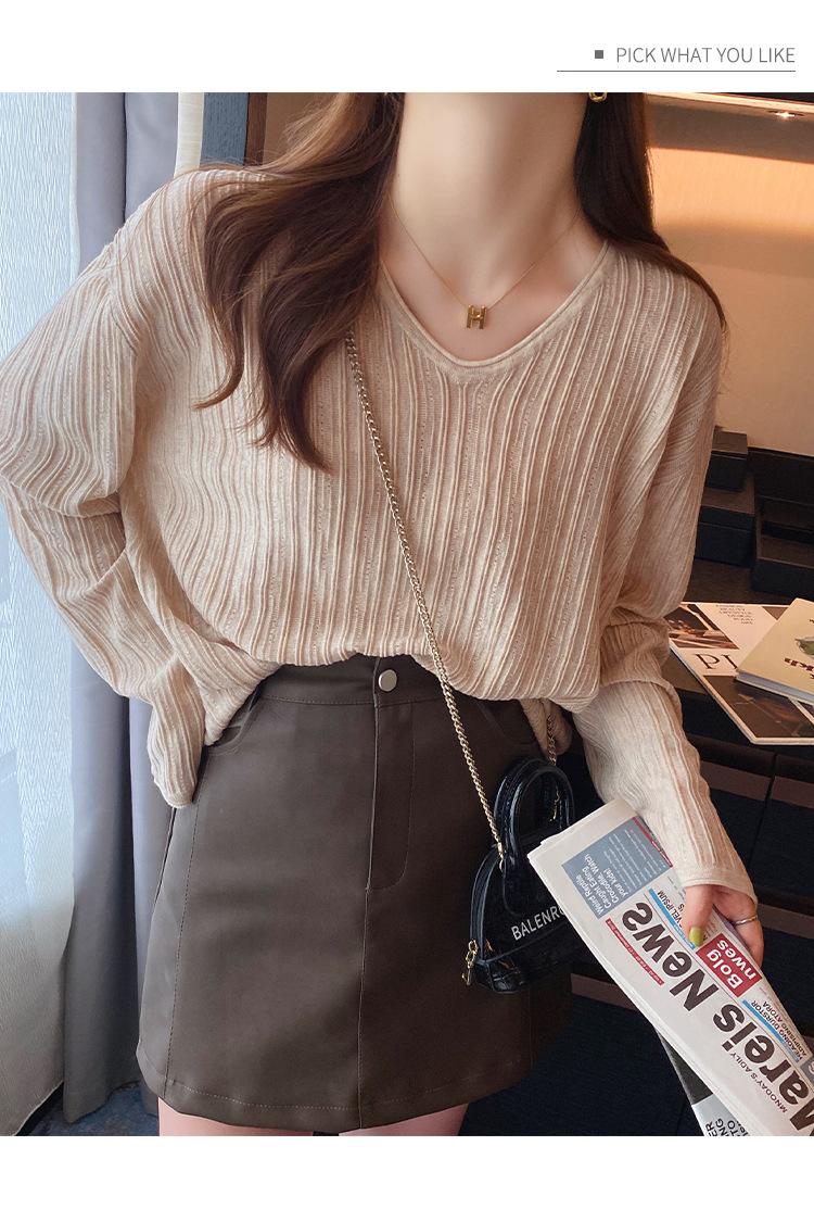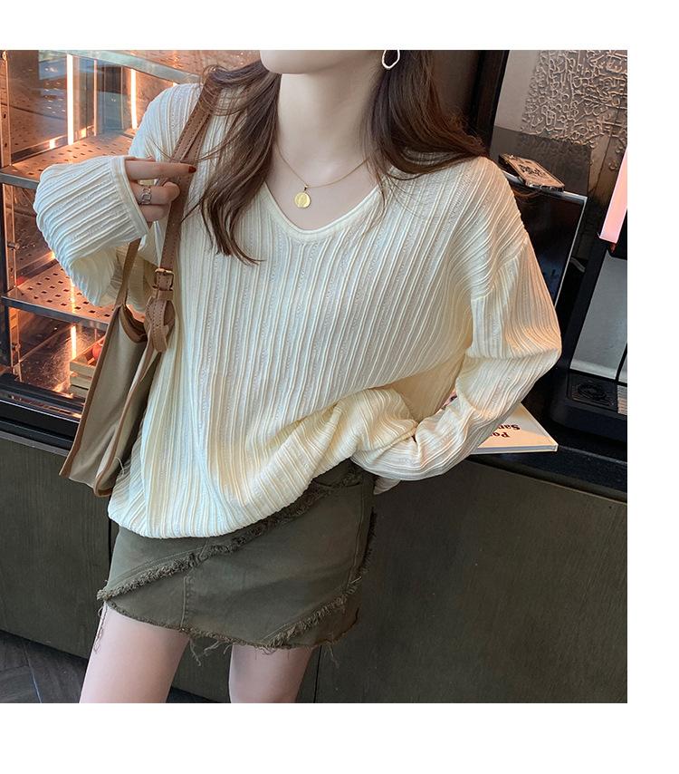 Suéter de cuello en V para mujer, camisa fina con diseño interior, suéter holgado estilo occidental, top de manga larga, primavera y otoño