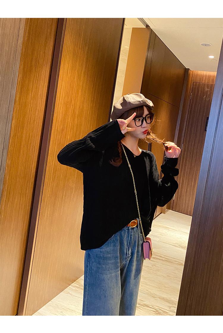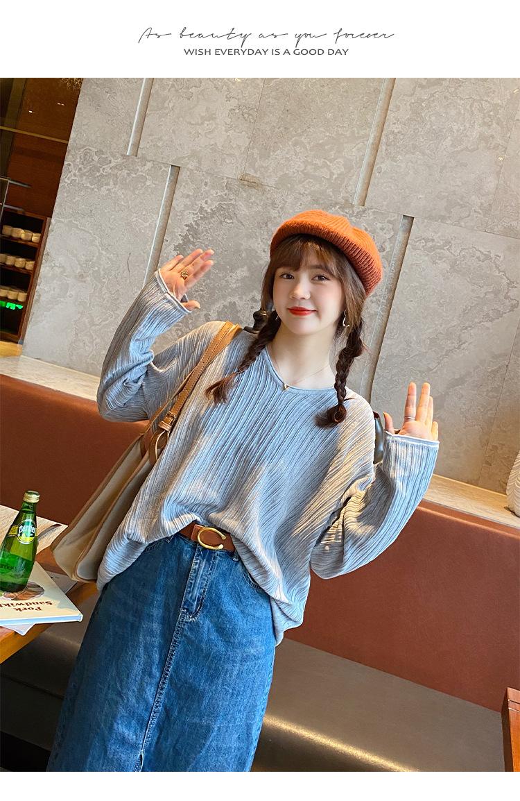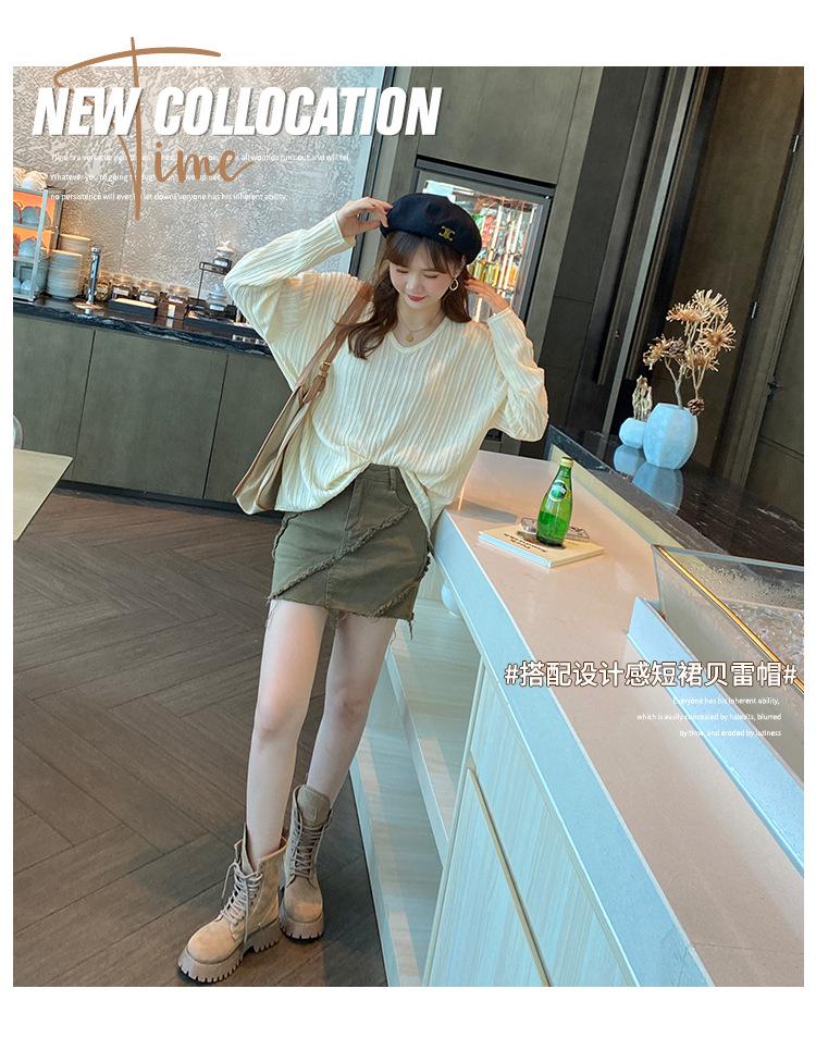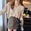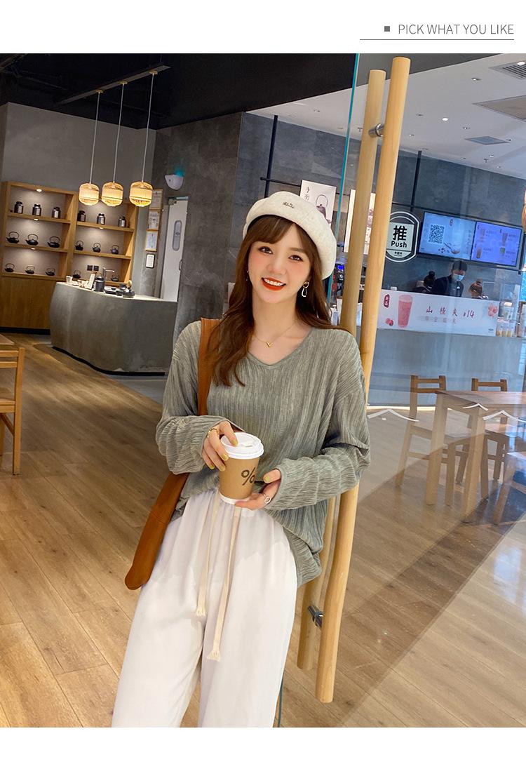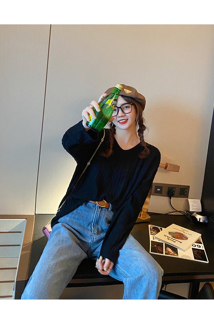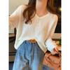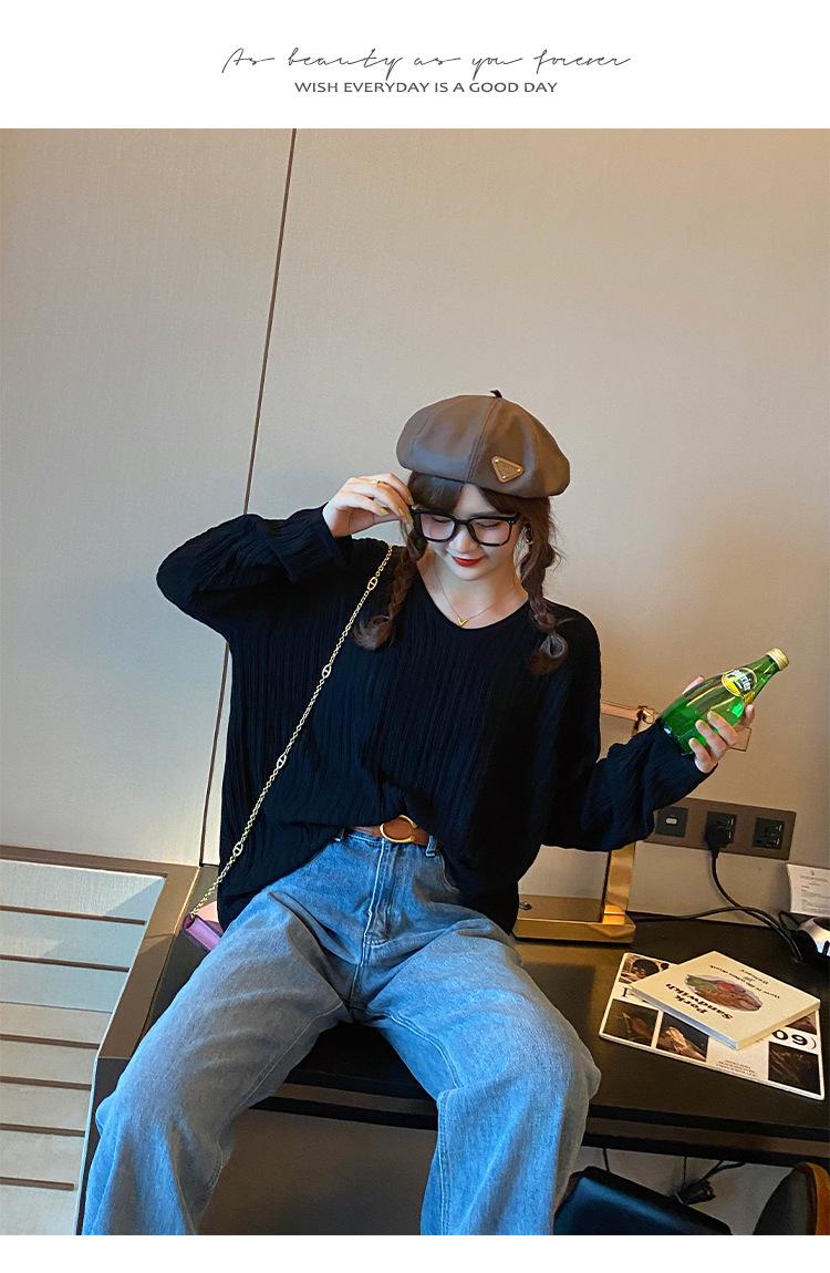 Suéter de cuello en V para mujer, camisa fina con diseño interior, suéter holgado estilo occidental, top de manga larga, primavera y otoño