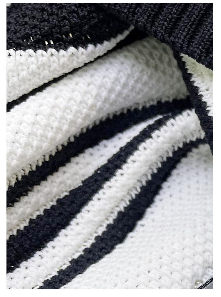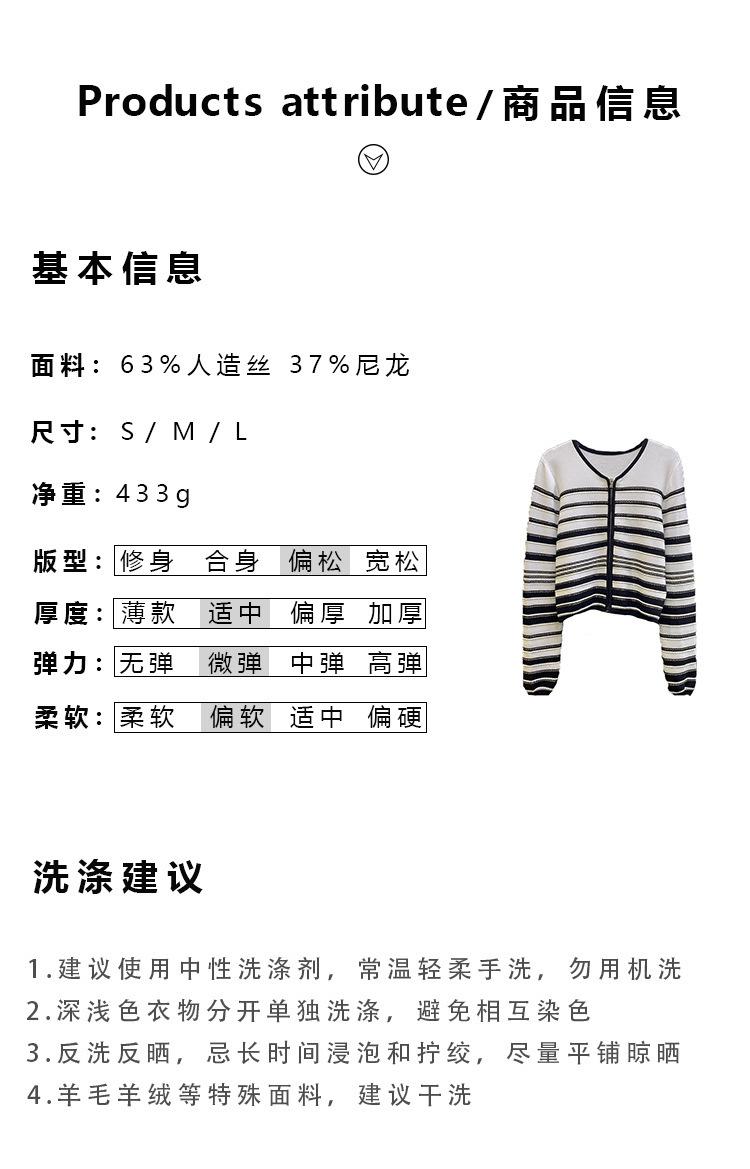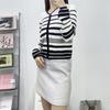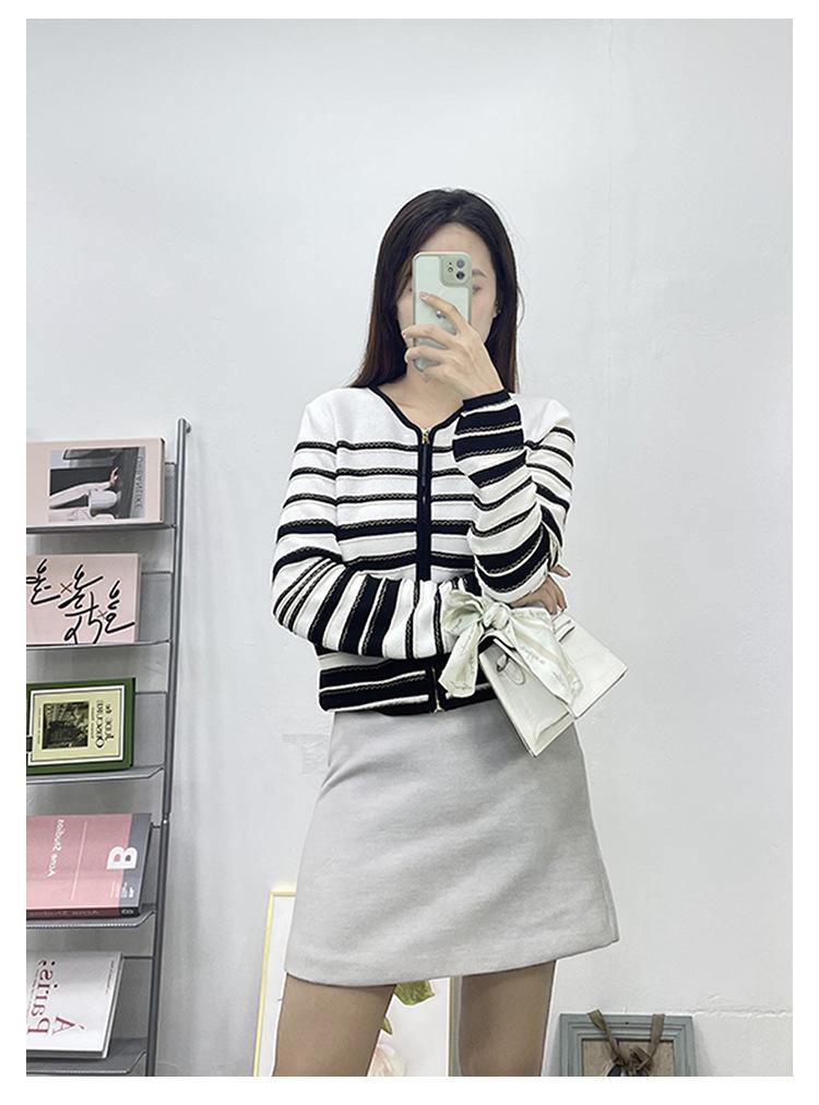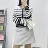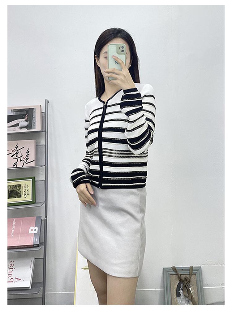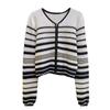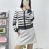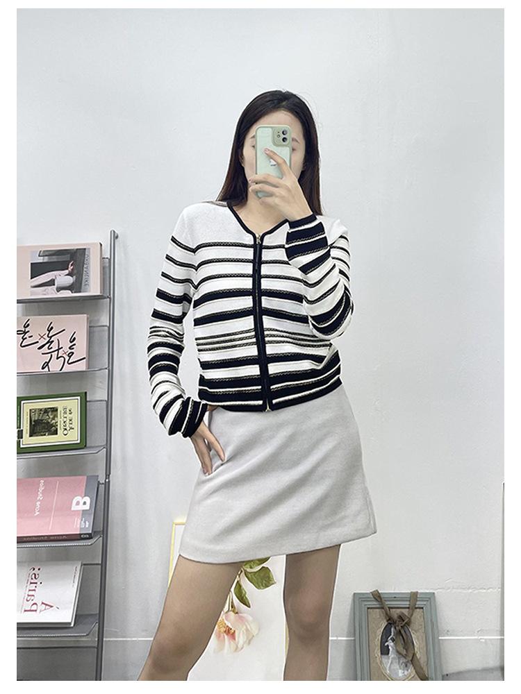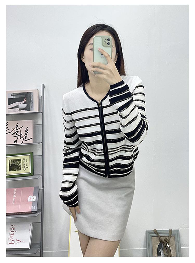 Ropa de Mujer Nueva Primavera 2024 Estilo Chanel Cuello Redondo Raya Blanca y Negra Combinable Manga Larga Cremallera Chaqueta Cárdigan Tejida para Mujer