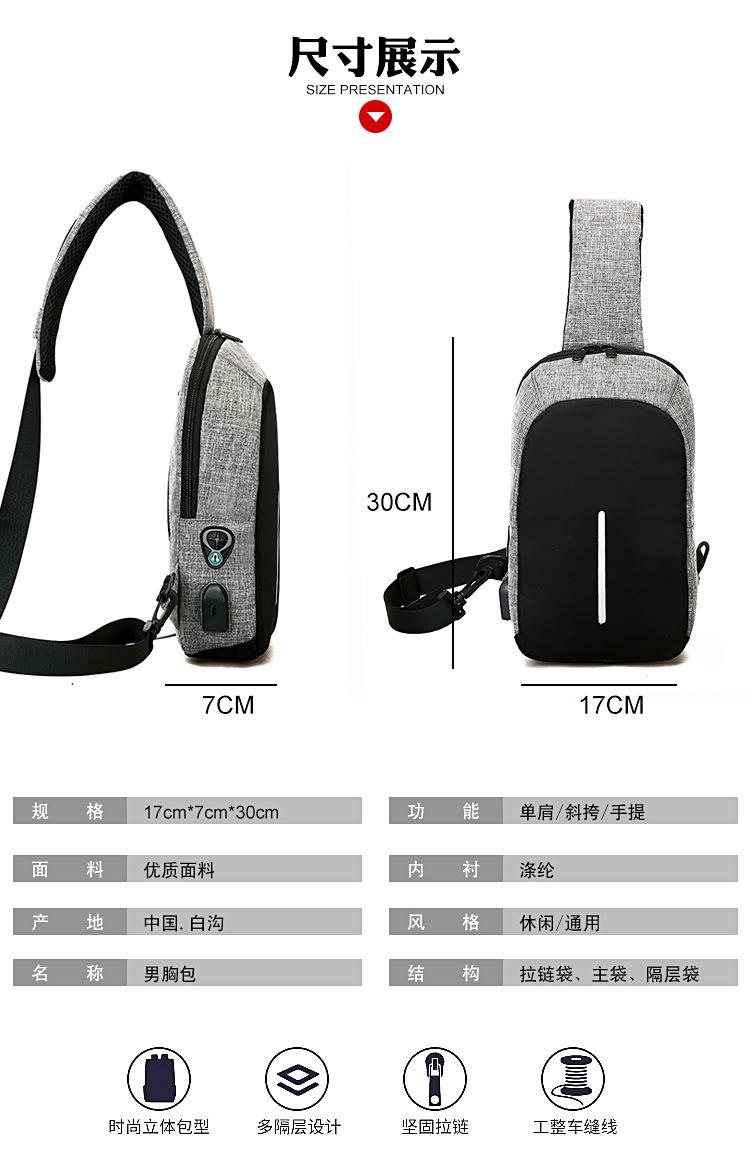 Moda Transfronteriza Comercio Exterior Bolsa de Pecho para Exteriores Bolso Cruzado Casual Bolso Pequeño Combinable Bandolera Multifuncional Bolso de Hombro para Hombre