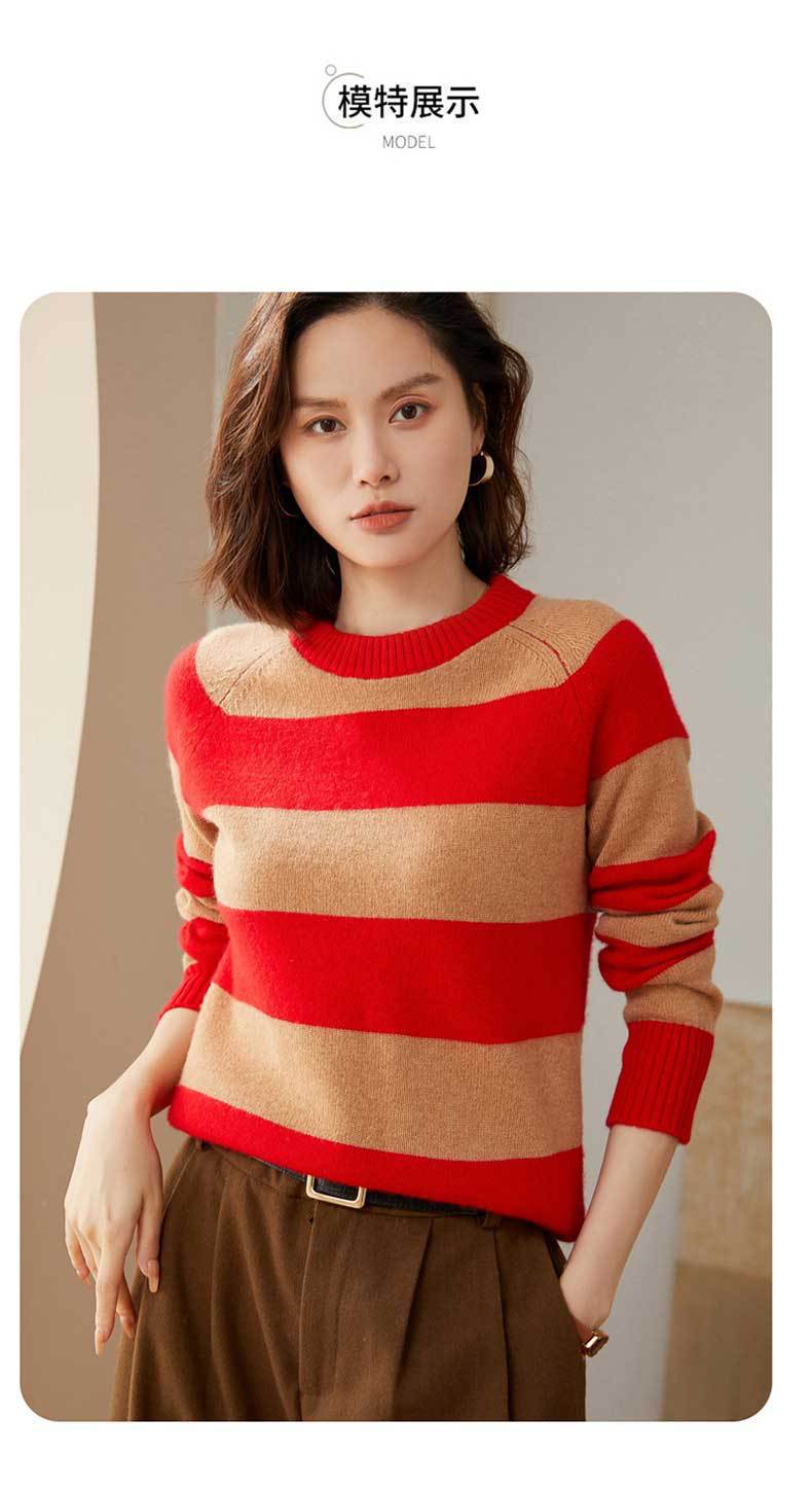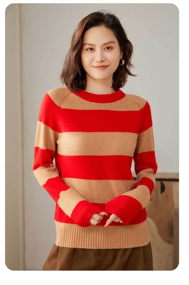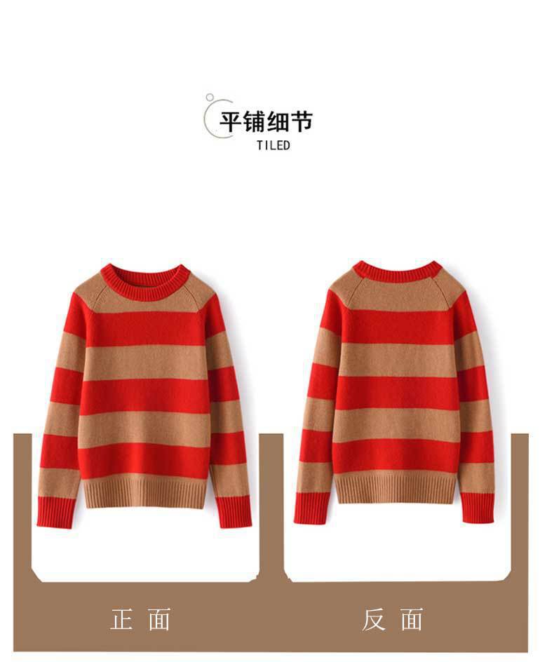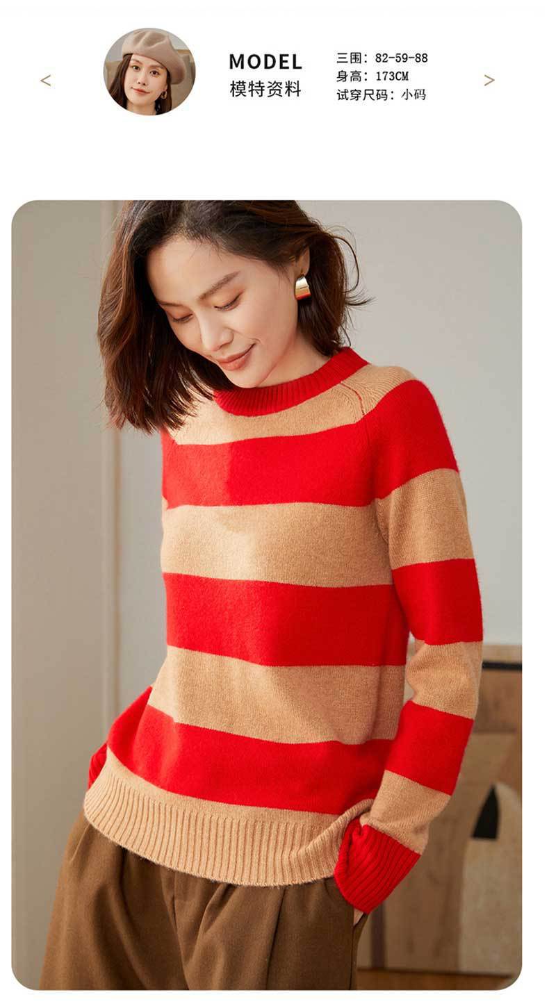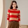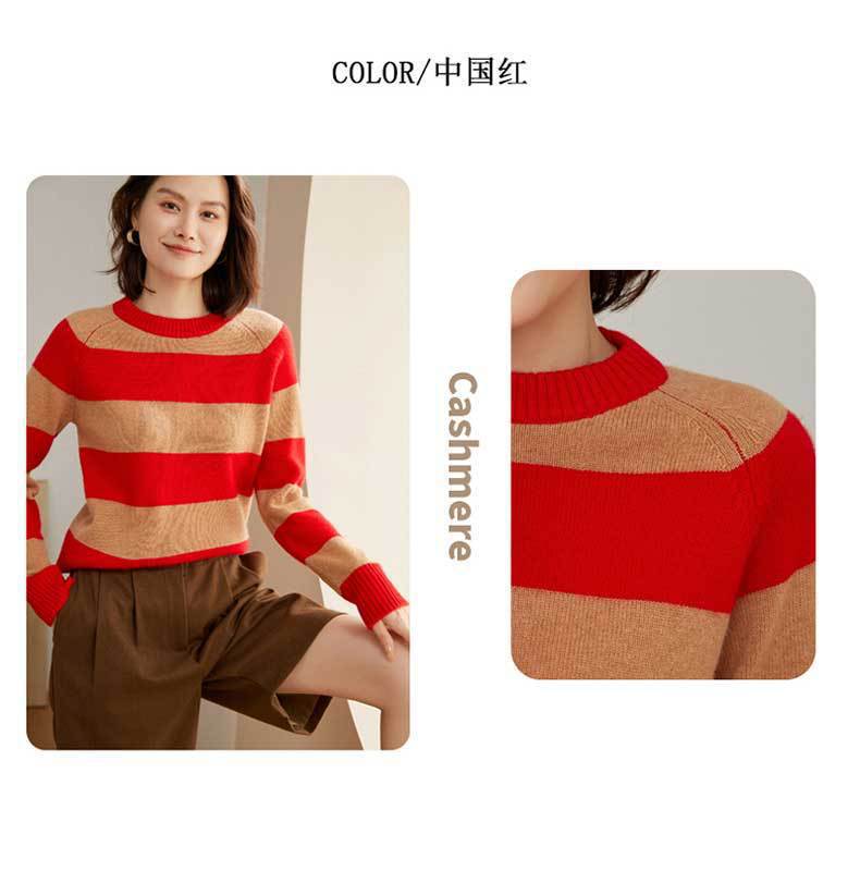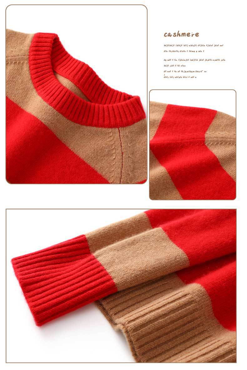 2022 otoño e invierno nuevo suéter de cachemira para mujer suelto cuello redondo corto color de contraste suéter de punto a rayas camisa básica