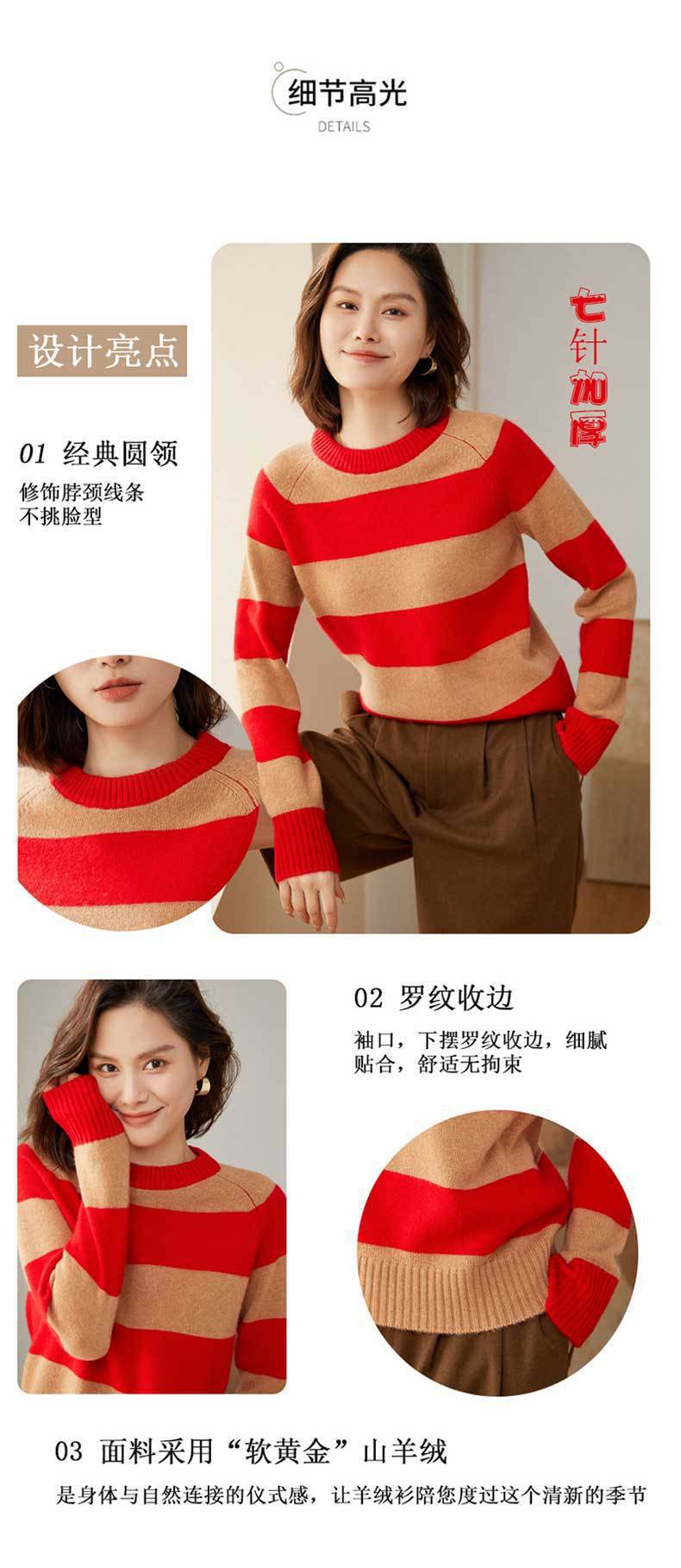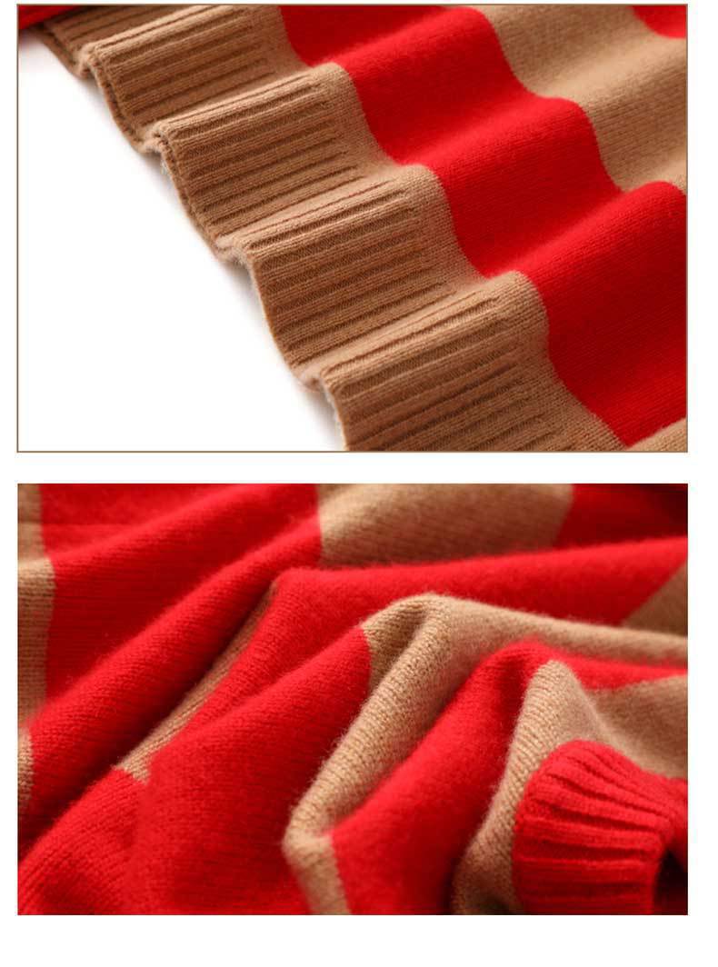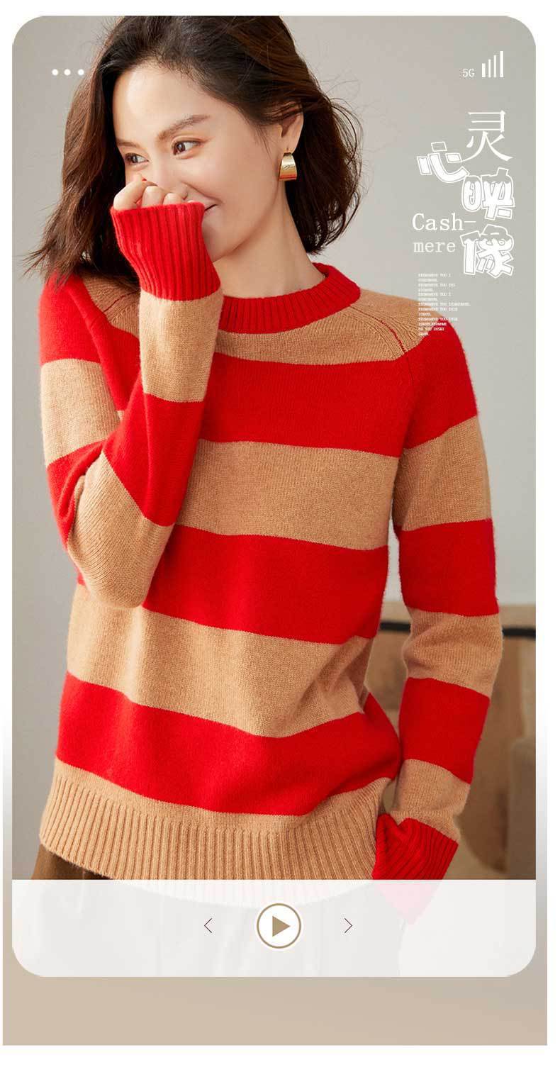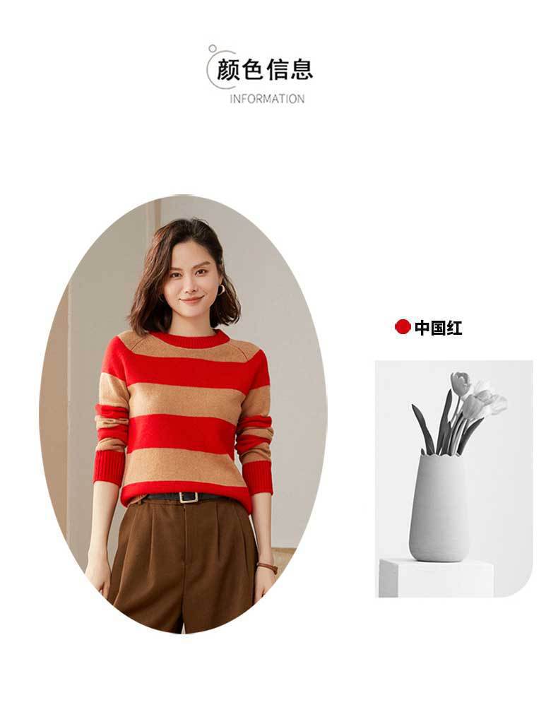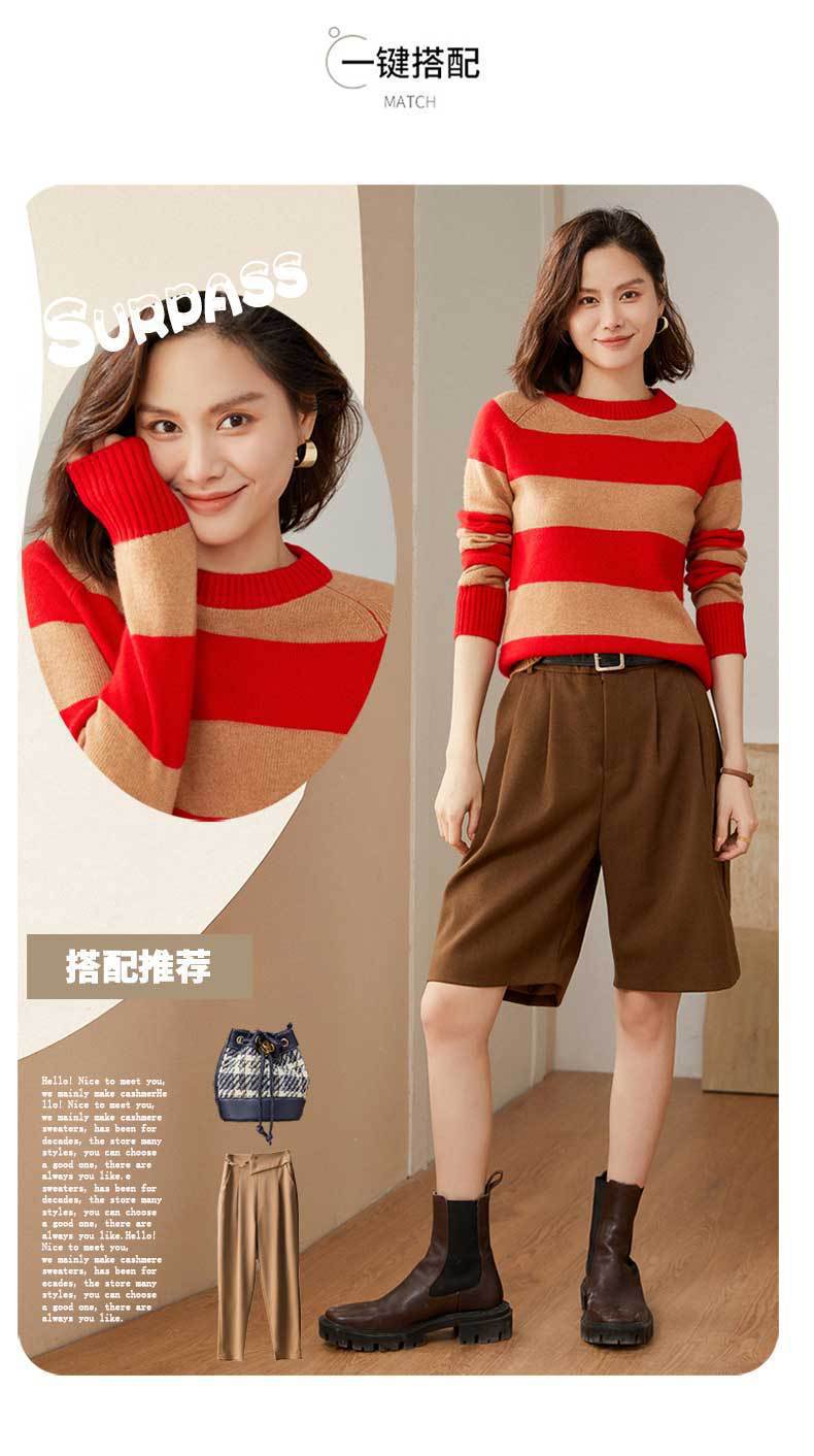 2022 otoño e invierno nuevo suéter de cachemira para mujer suelto cuello redondo corto color de contraste suéter de punto a rayas camisa básica