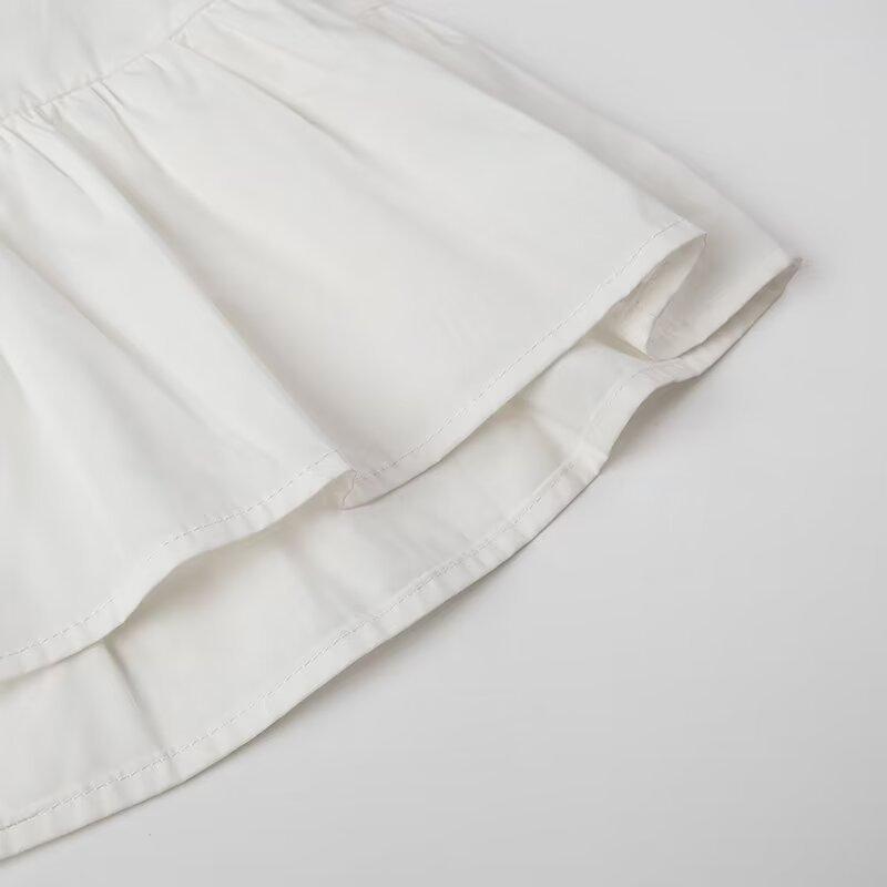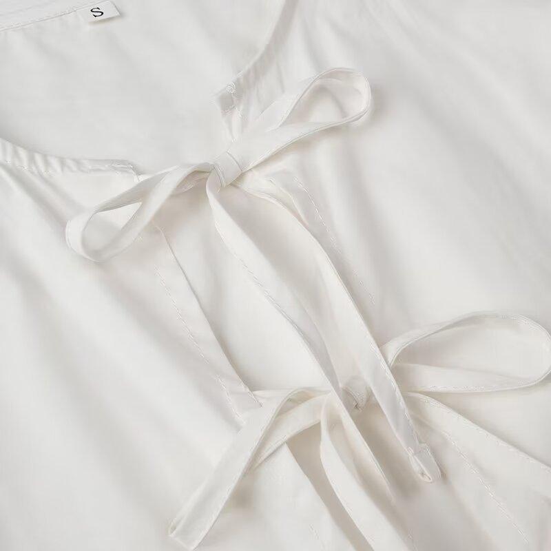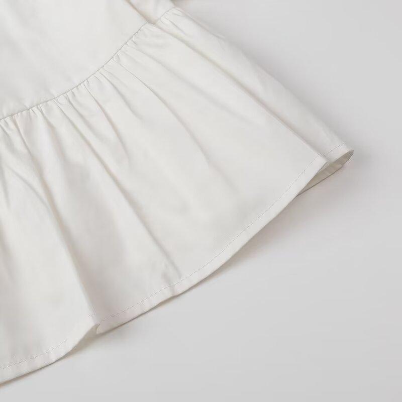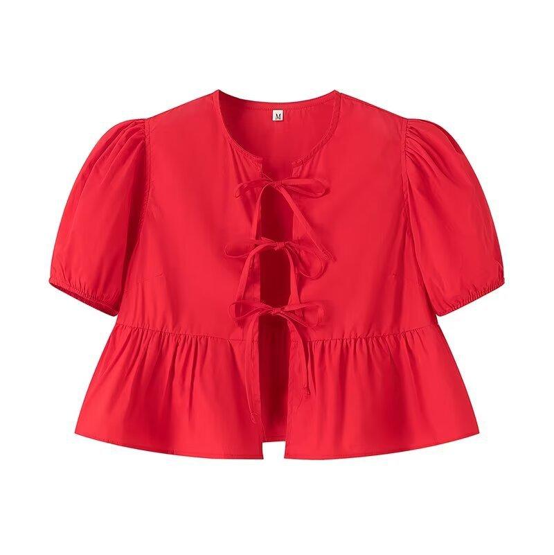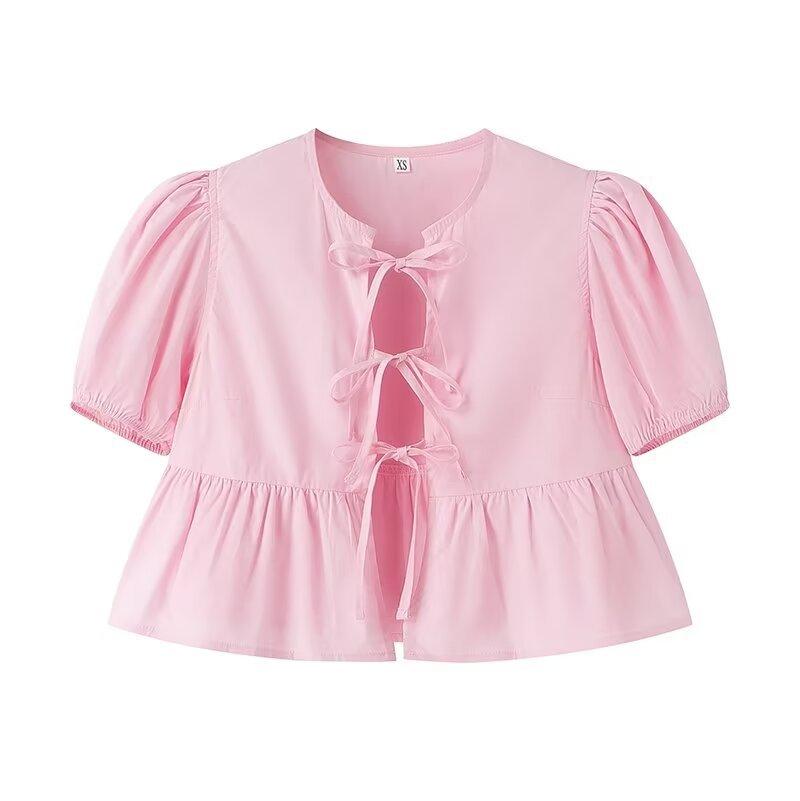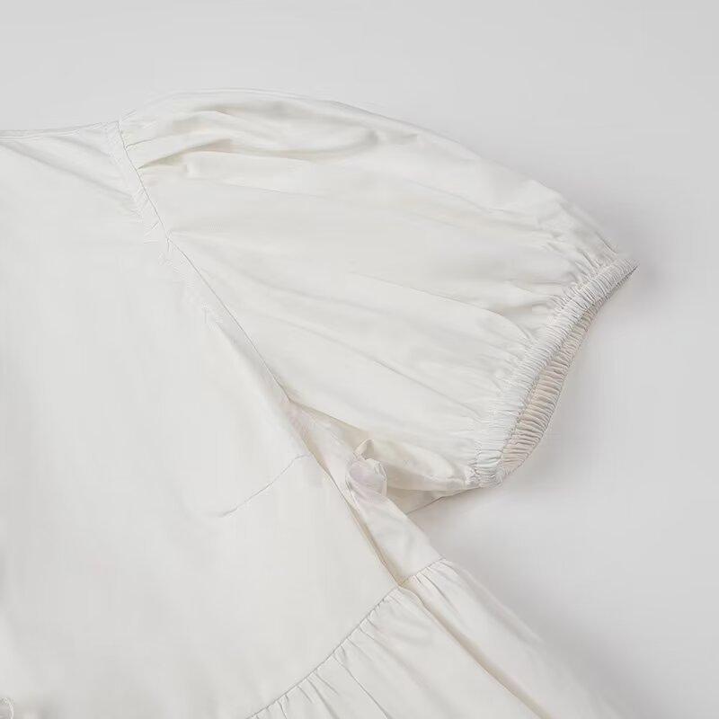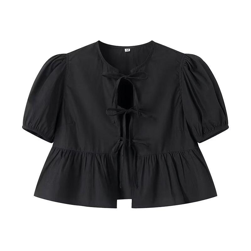 Primavera 2024, nueva ropa de mujer transfronteriza europea y americana, top de manga abullonada con encaje de algodón de moda de color sólido w091 1803