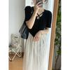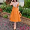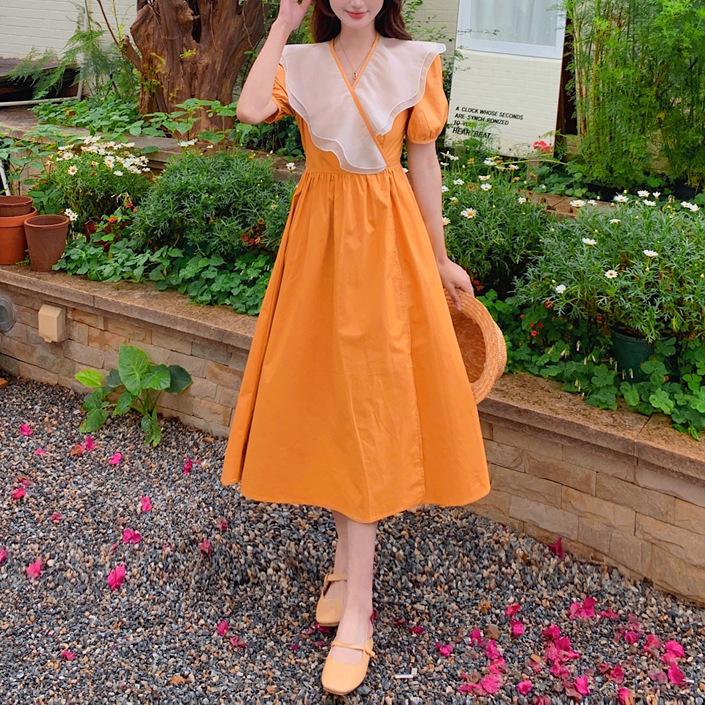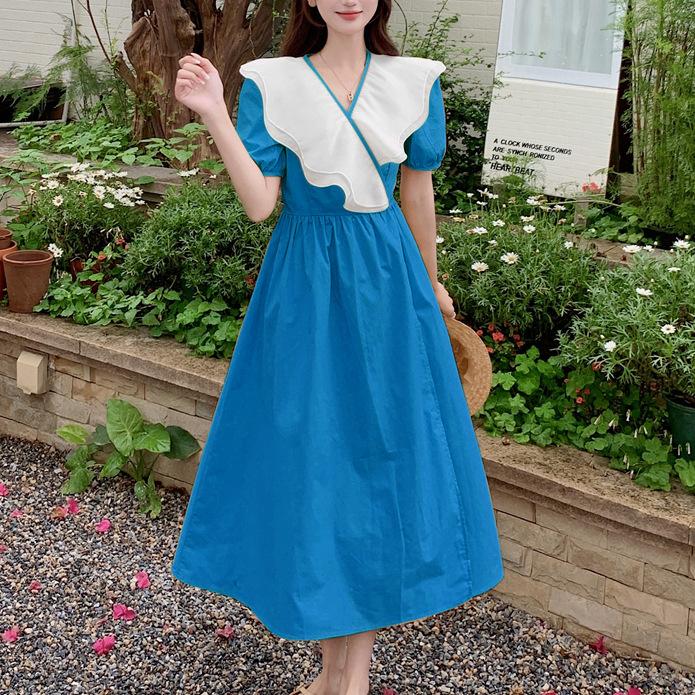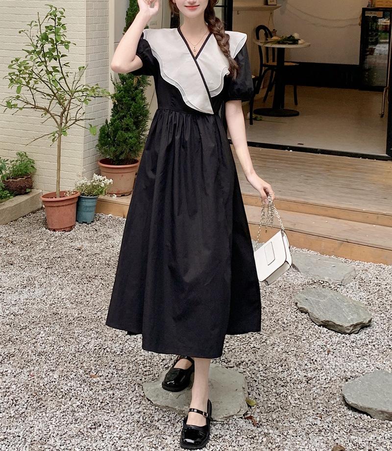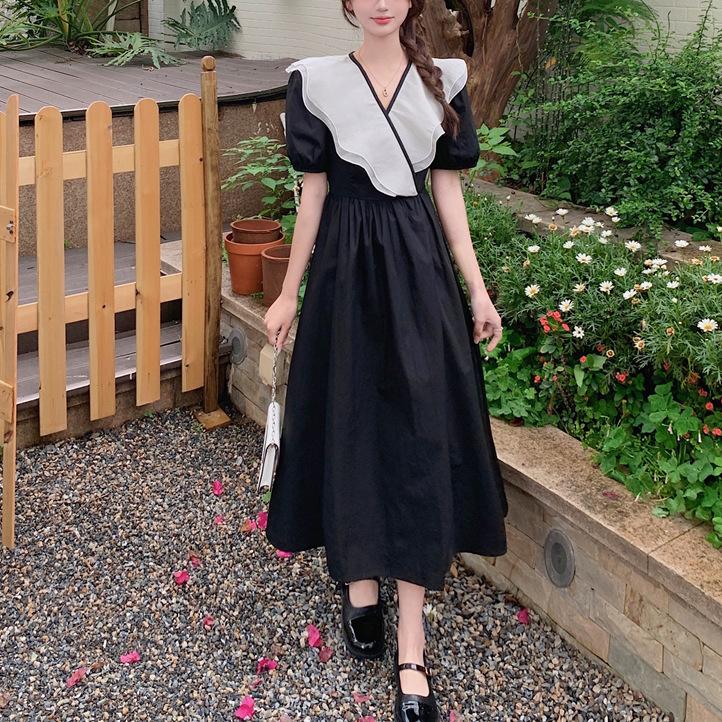 Vestido casual y dulce para mujer estilo Hepburn francés con cuello de volantes, unicolor, que reduce la edad y estiliza, de largo medio