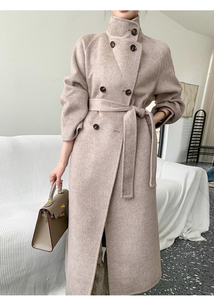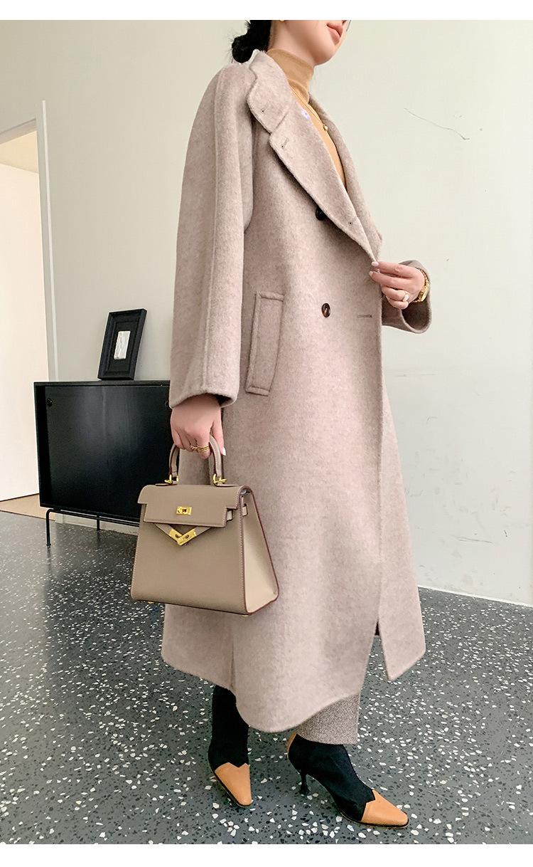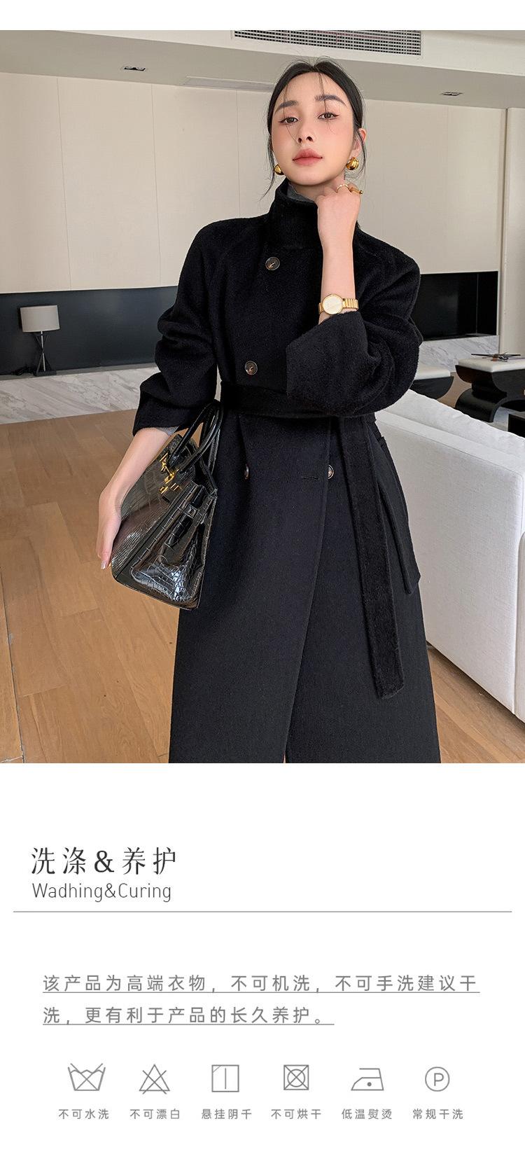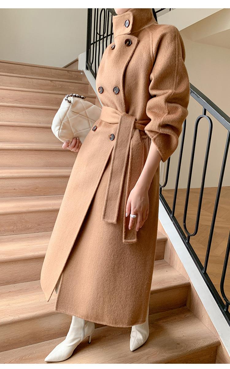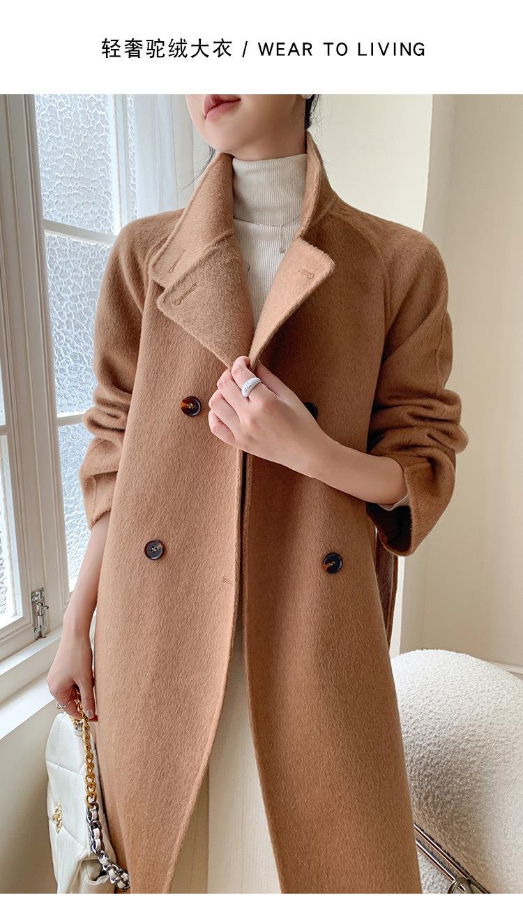 Abrigo de cachemira de doble cara para mujer, largo medio, otoño 2023, nuevo abrigo de lana de alta gama, abrigo de lana pequeño de otoño e invierno