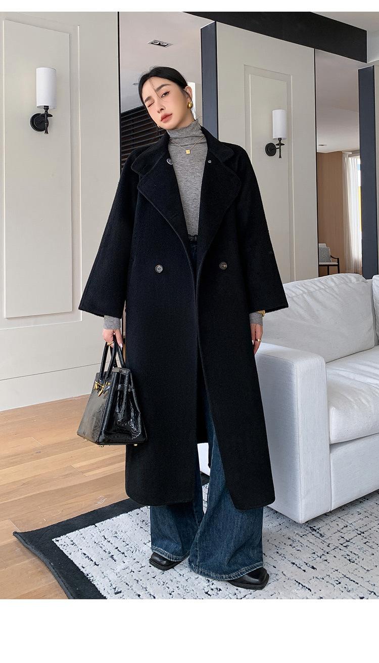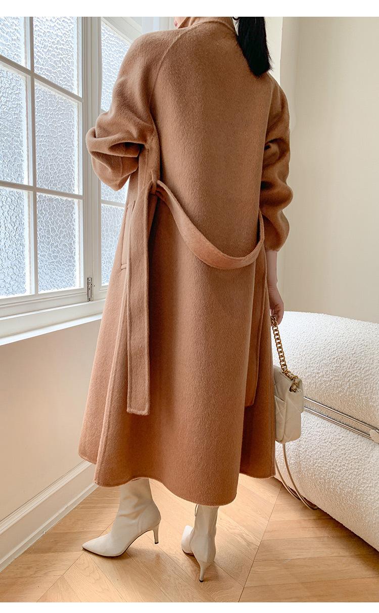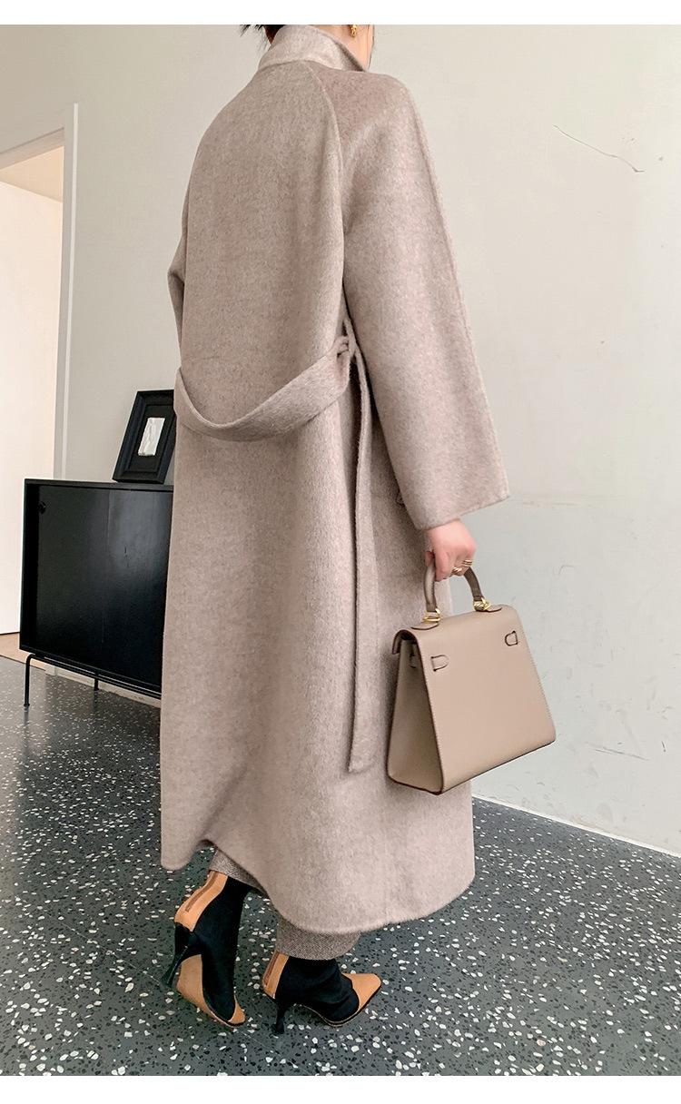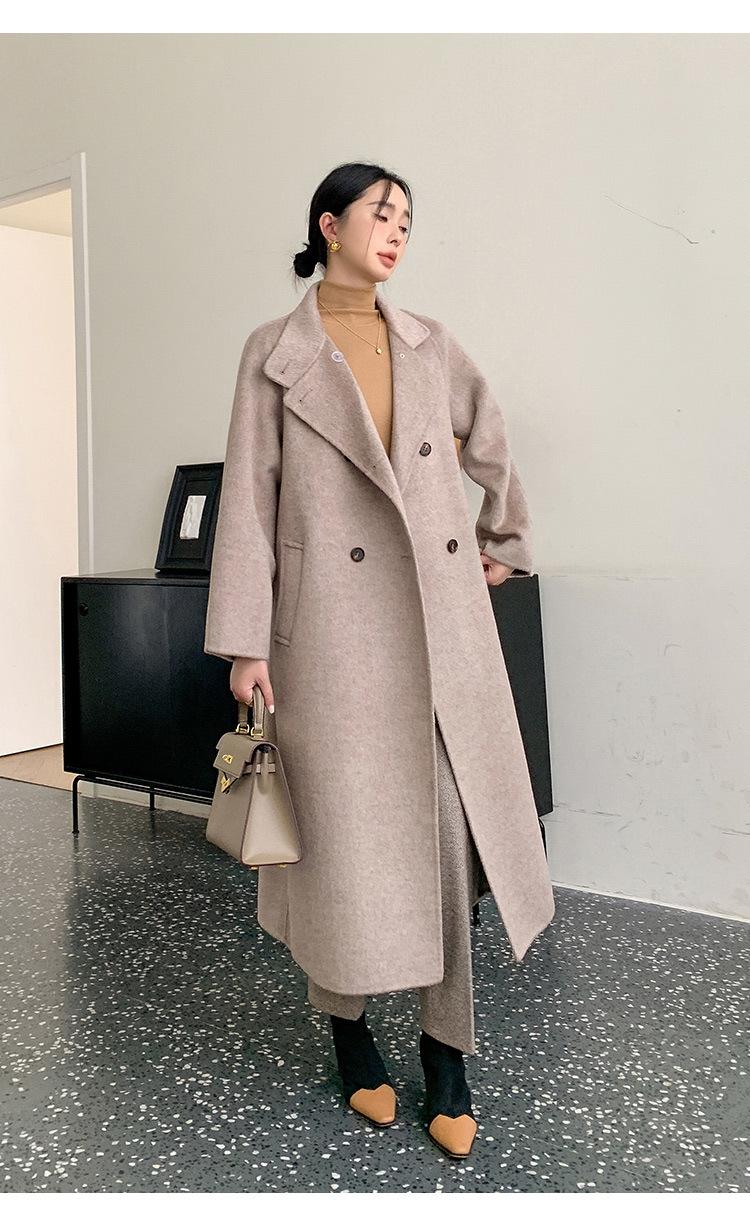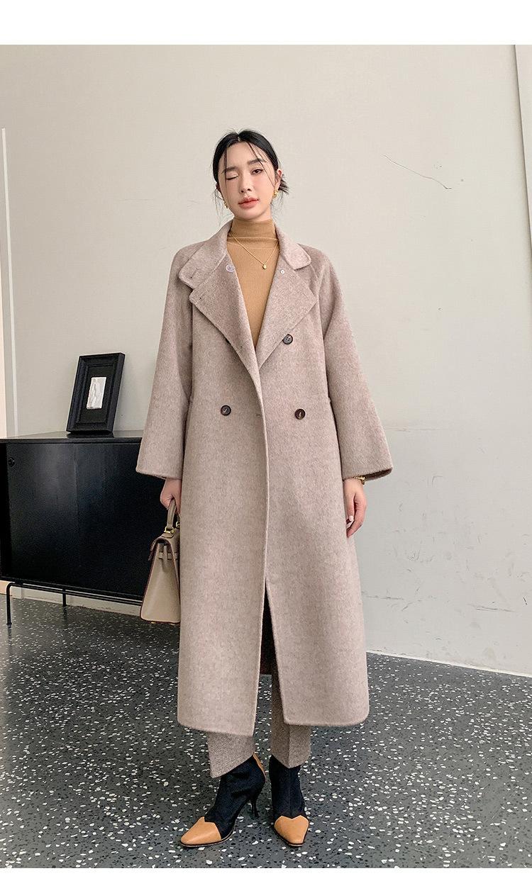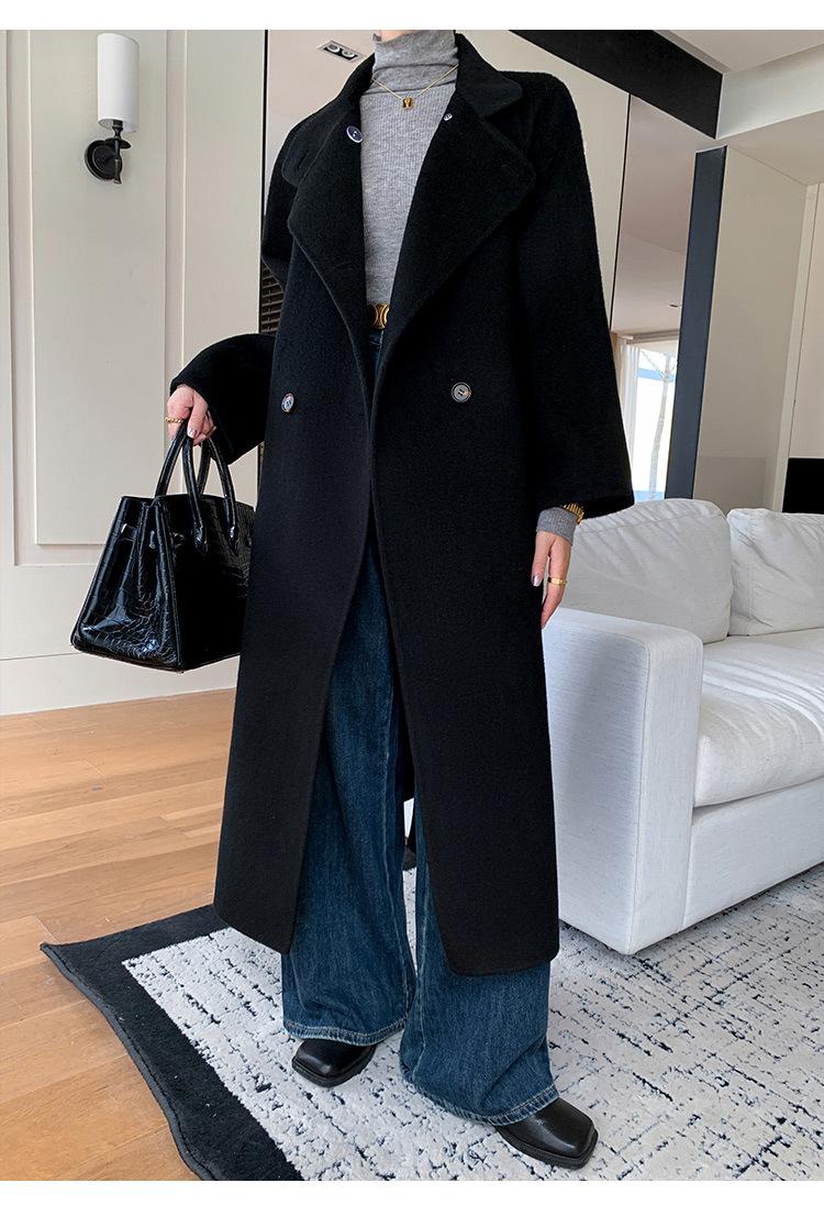 Abrigo de cachemira de doble cara para mujer, largo medio, otoño 2023, nuevo abrigo de lana de alta gama, abrigo de lana pequeño de otoño e invierno