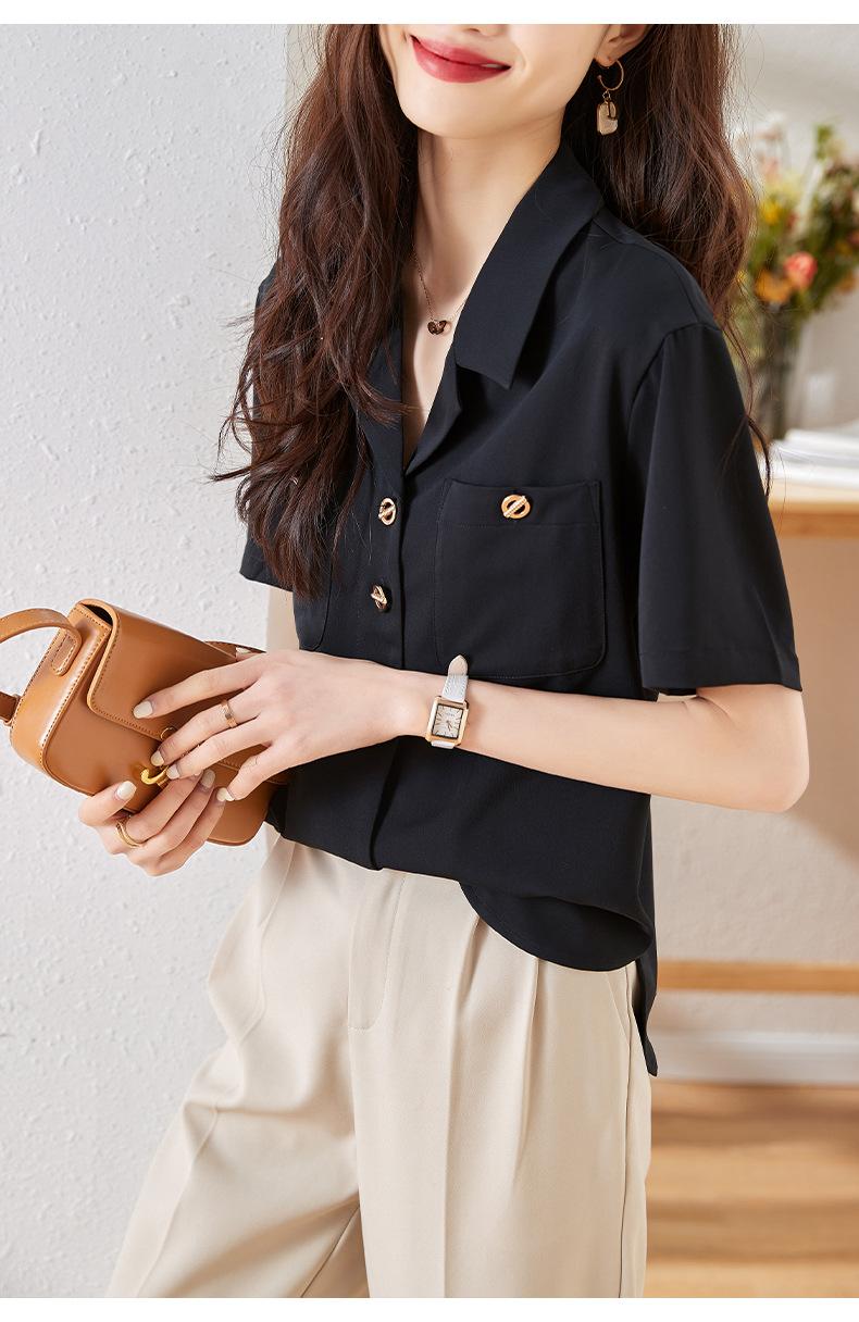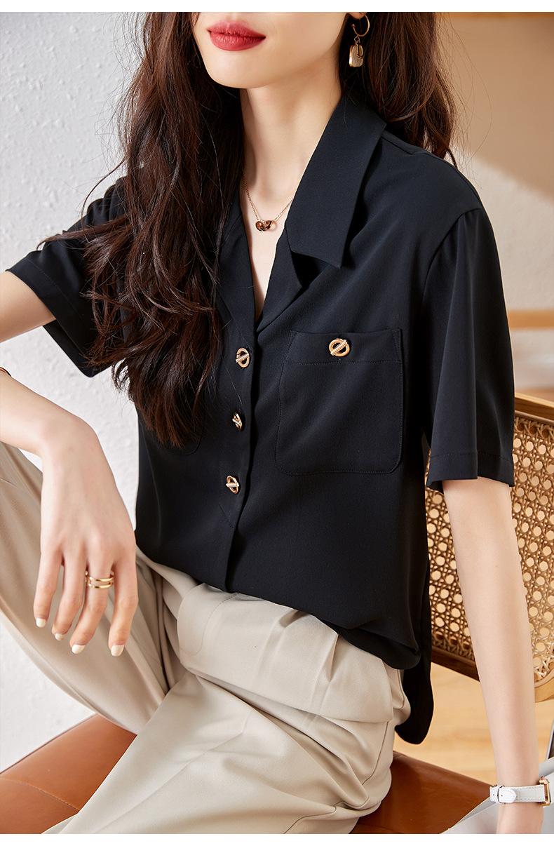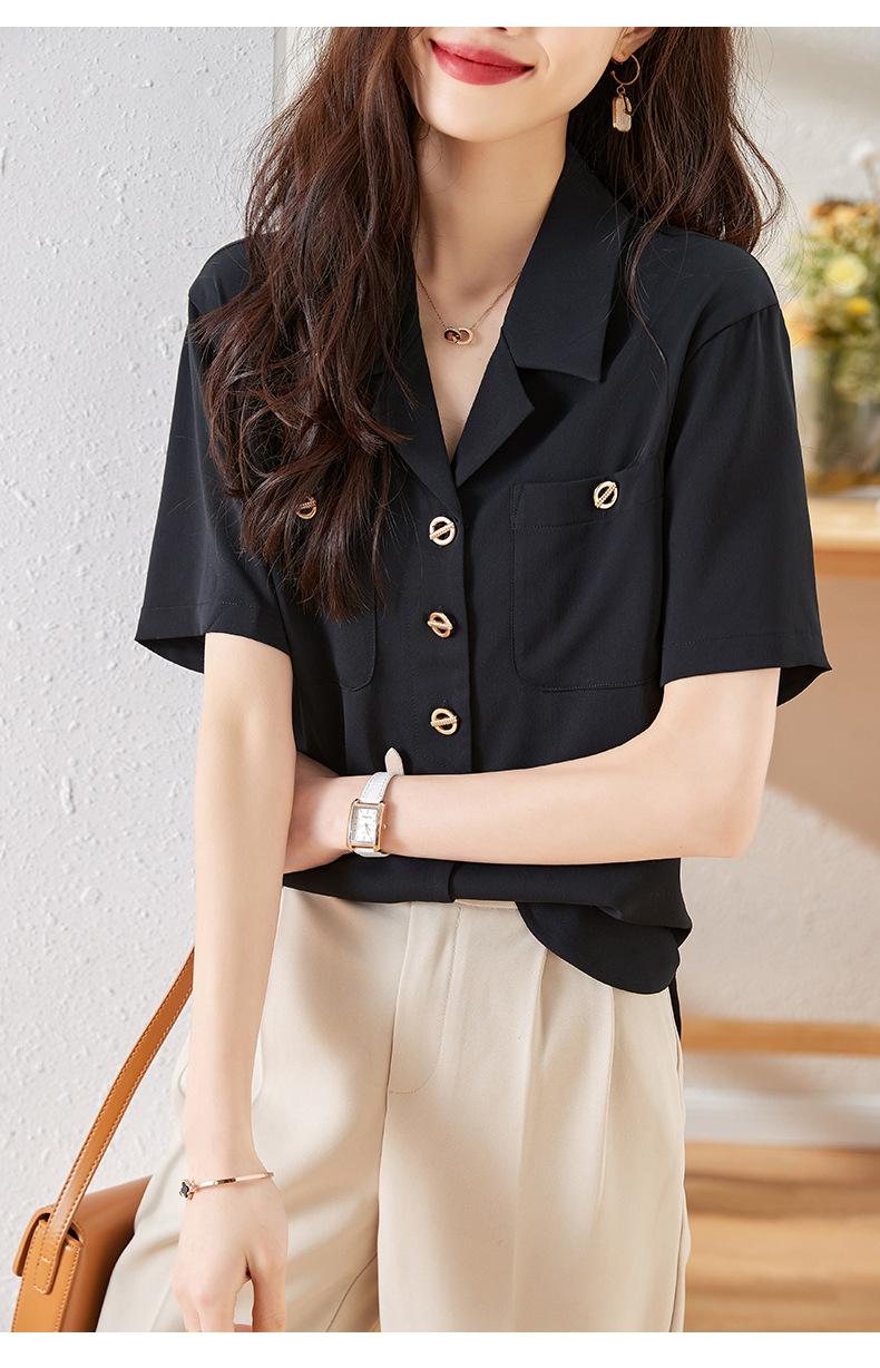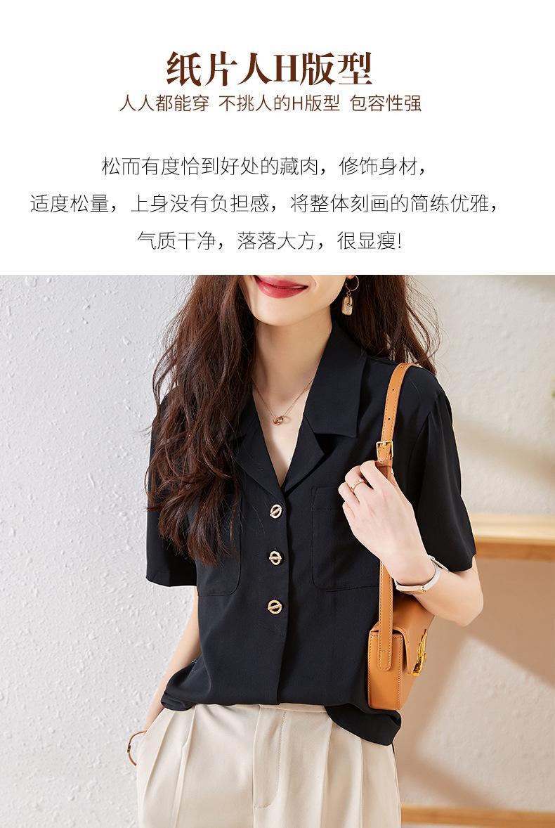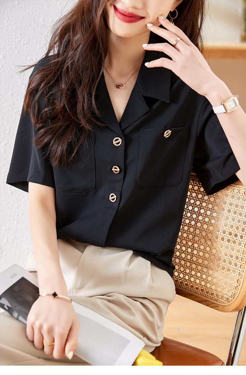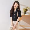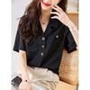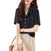 2024 Nueva Camisa de Chifón de Manga Corta Francesa para Mujer Verano Diseño Delgado Nicho Chic Top con Cuello en V