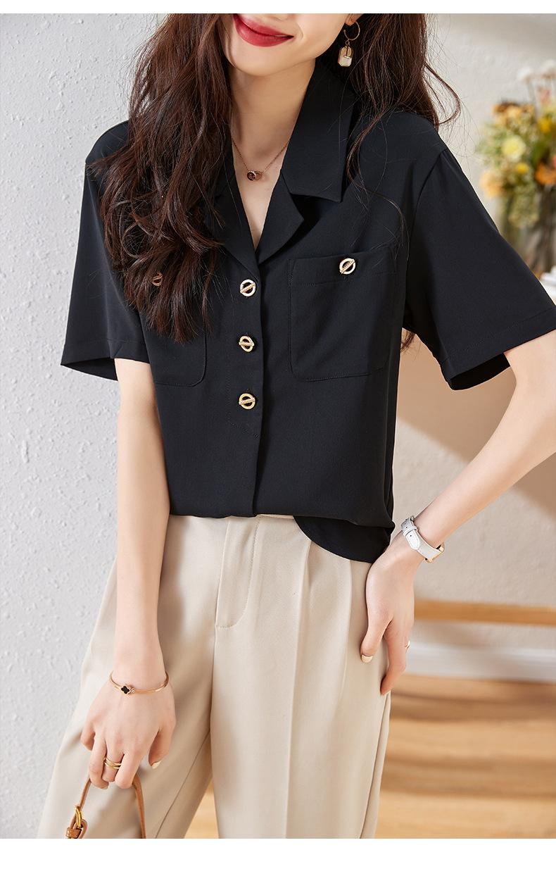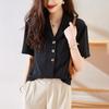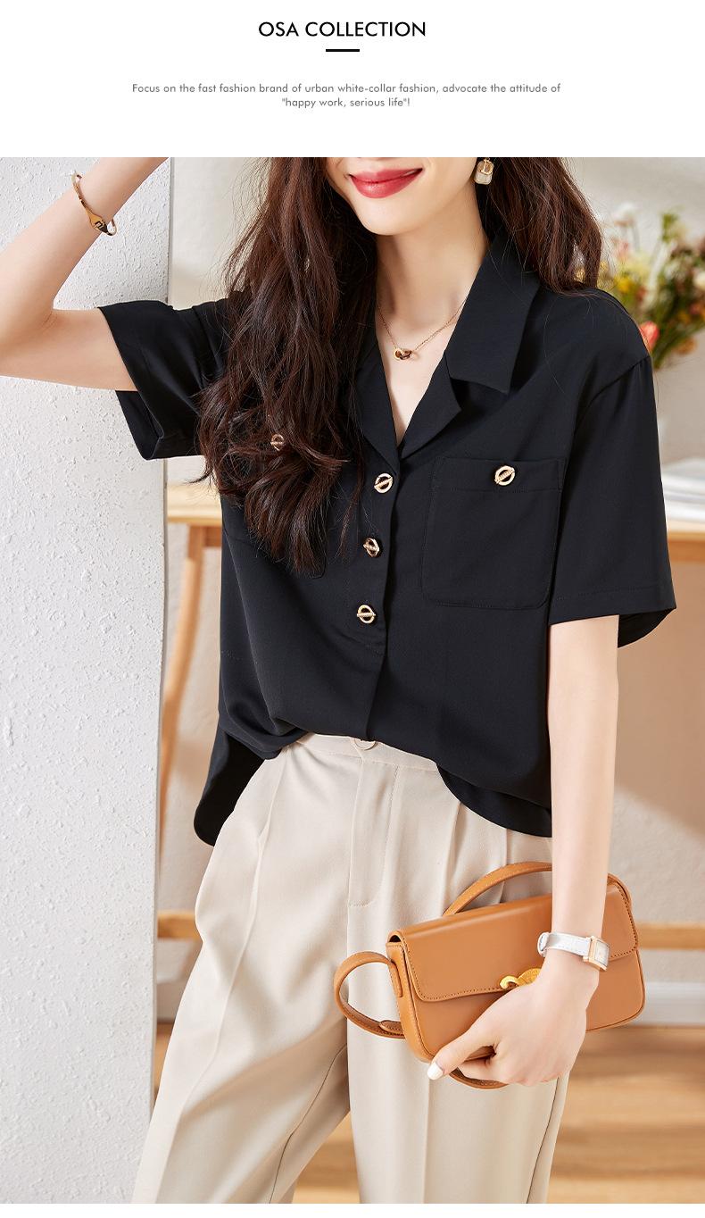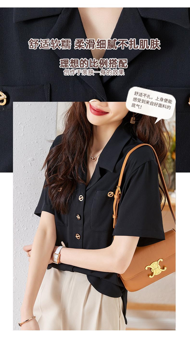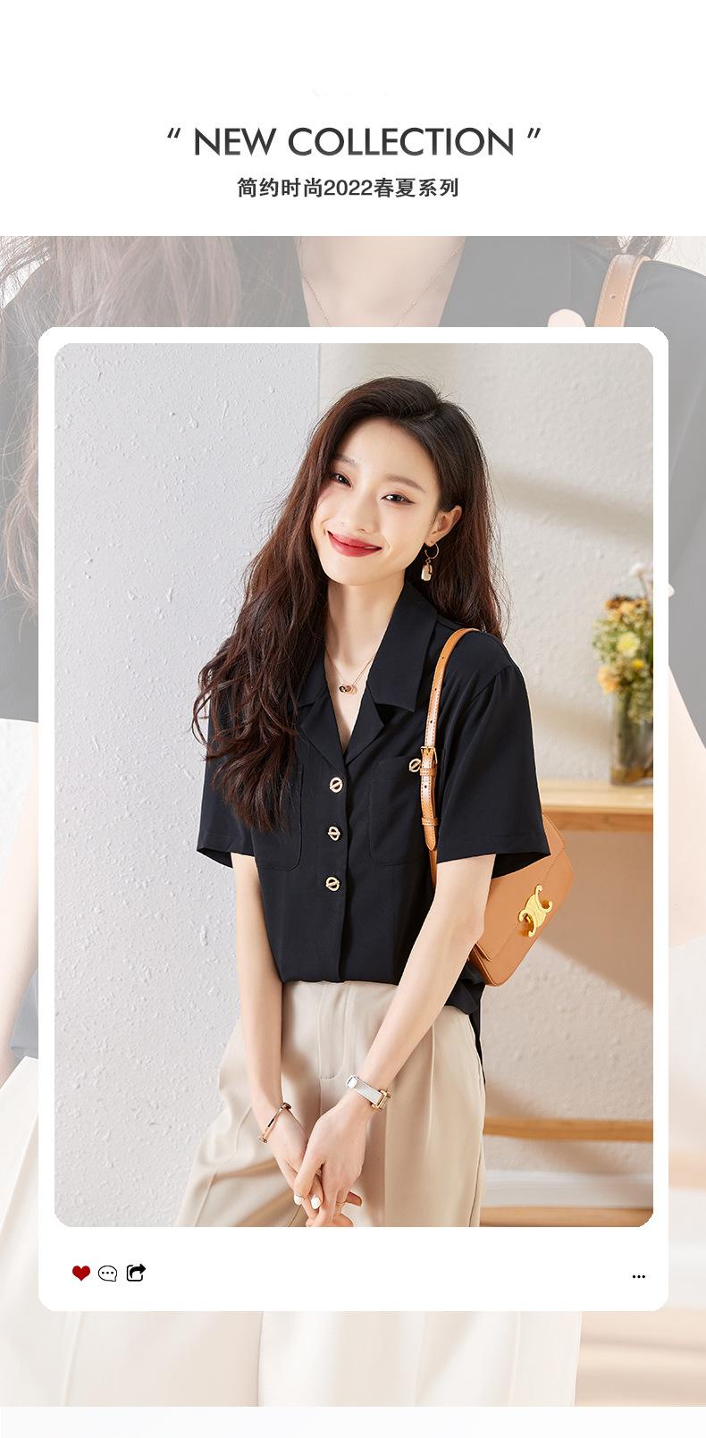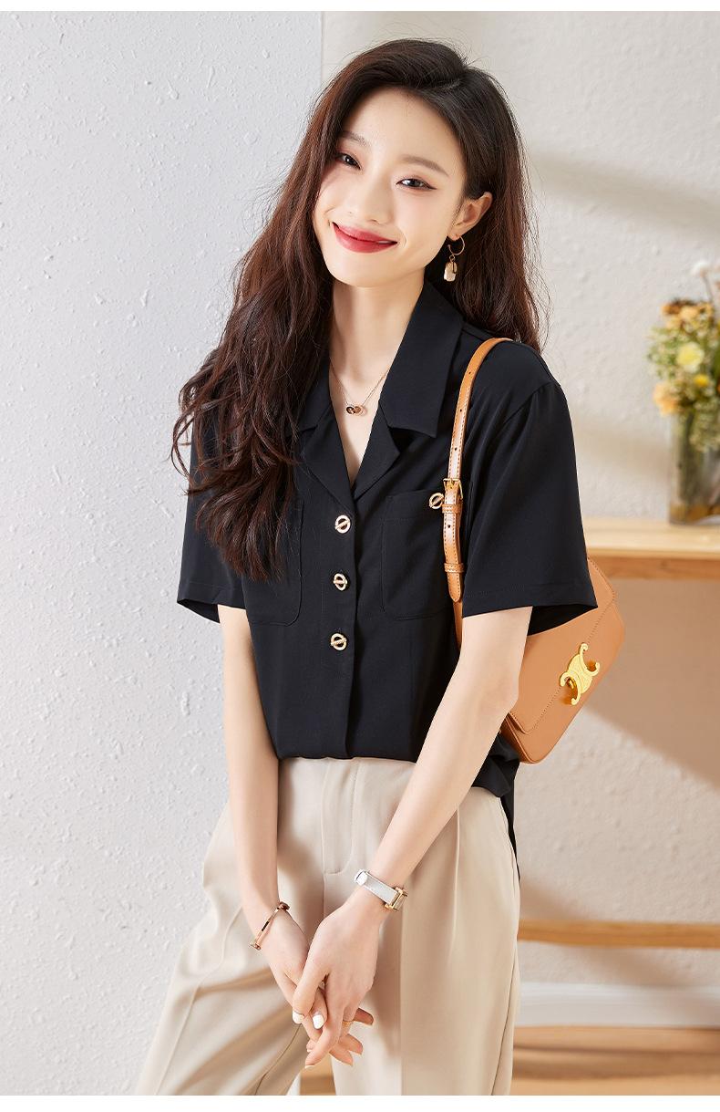 2024 Nueva Camisa de Chifón de Manga Corta Francesa para Mujer Verano Diseño Delgado Nicho Chic Top con Cuello en V
