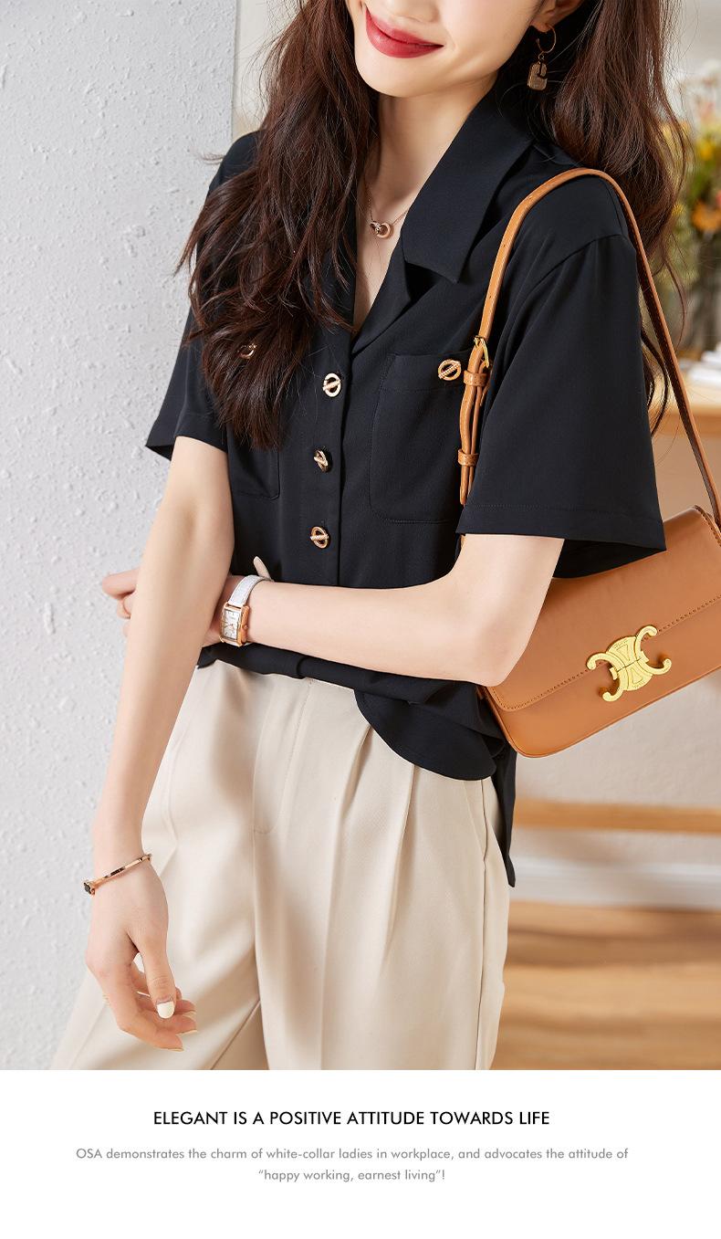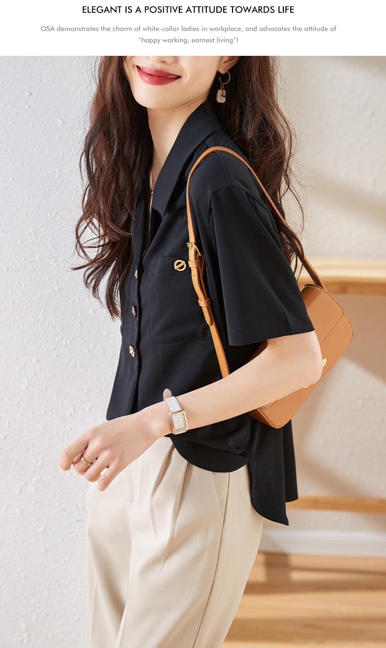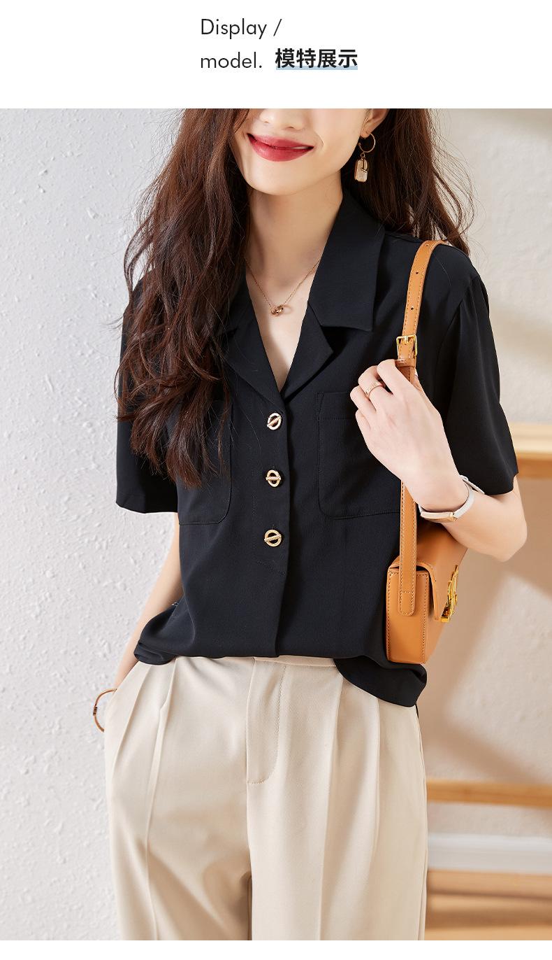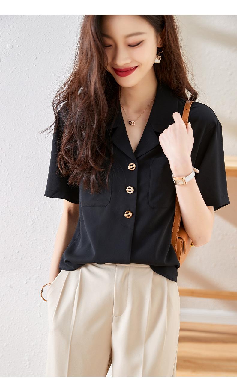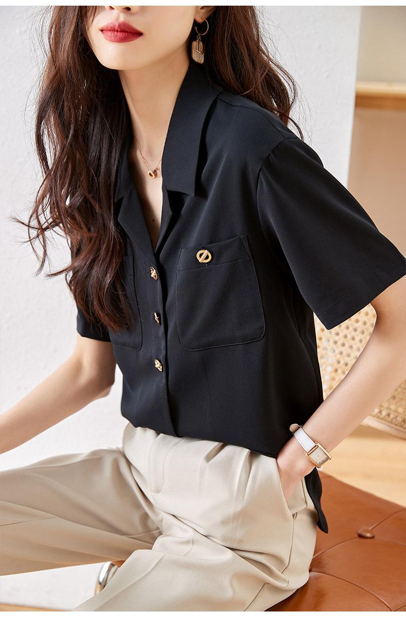 2024 Nueva Camisa de Chifón de Manga Corta Francesa para Mujer Verano Diseño Delgado Nicho Chic Top con Cuello en V