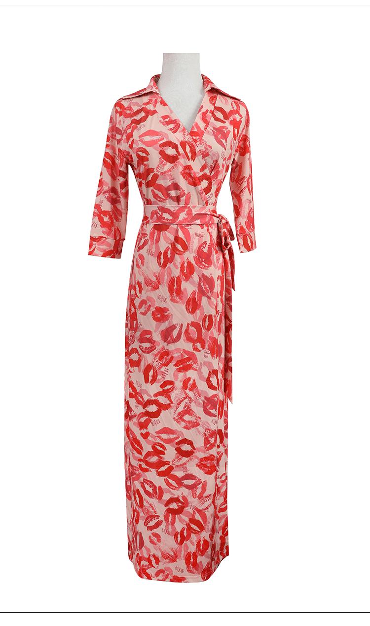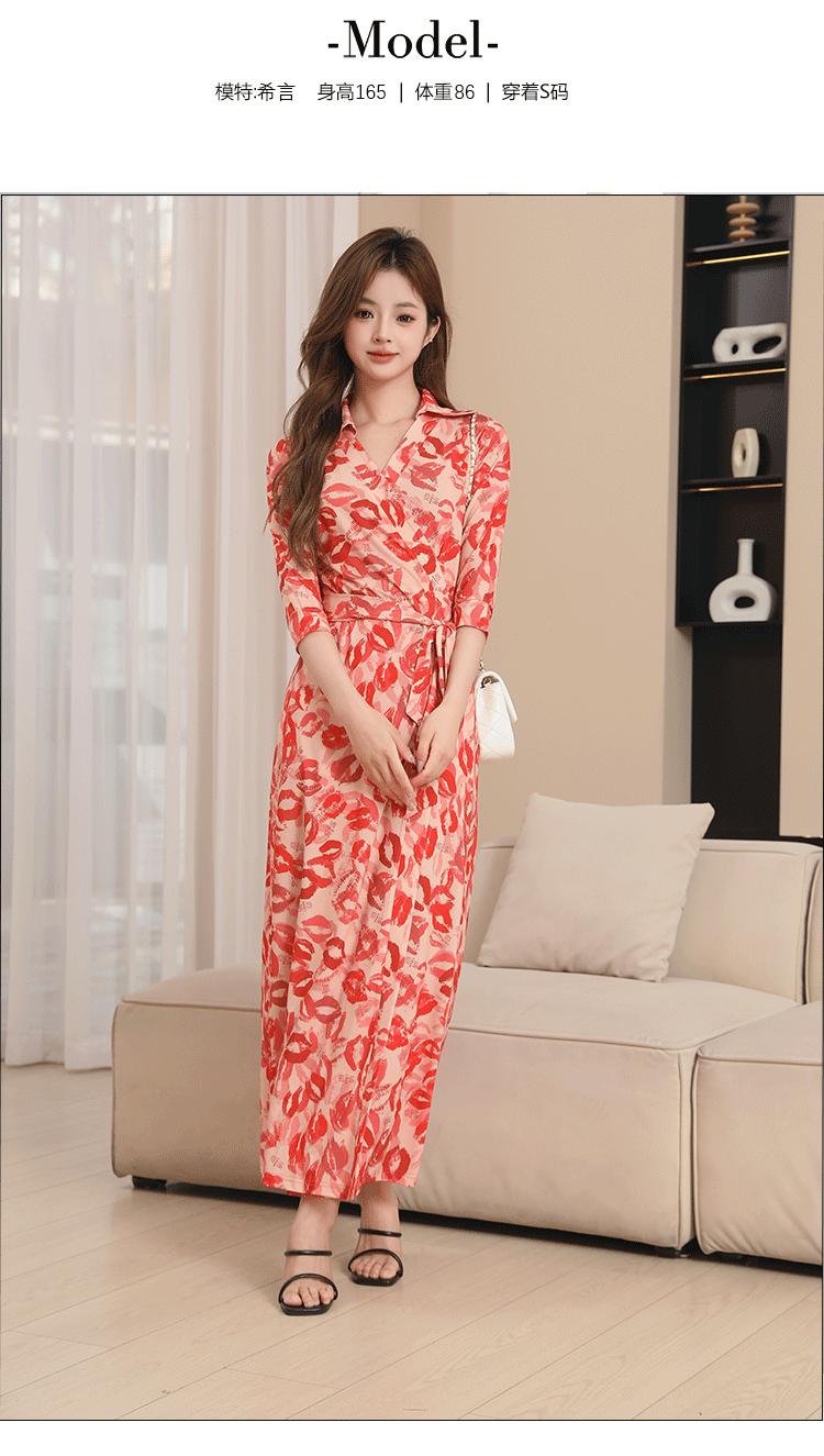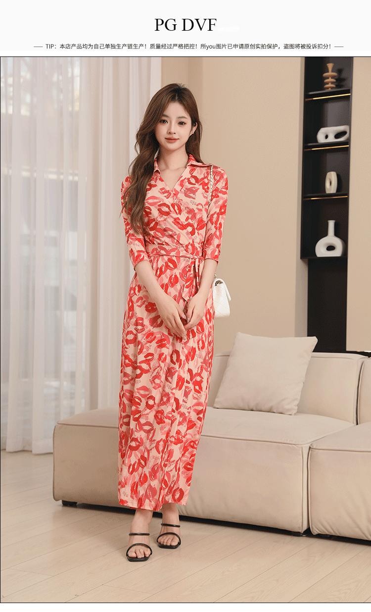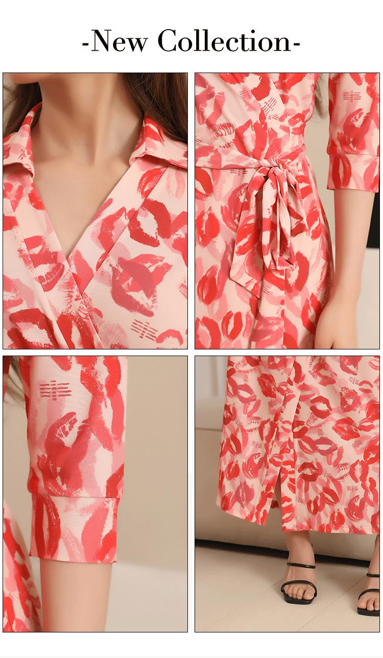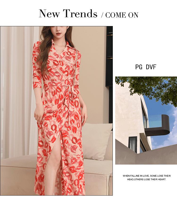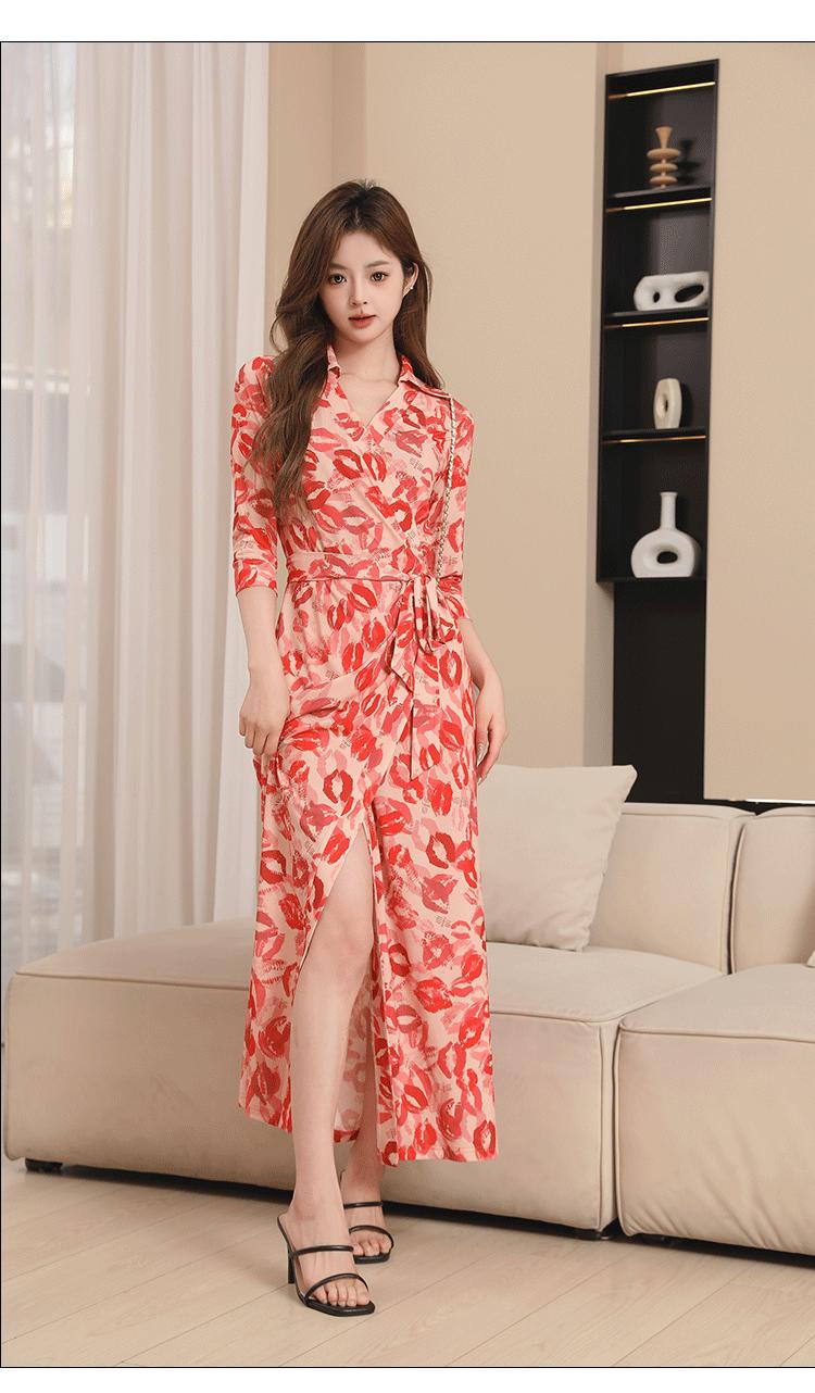 Vestido Floral con Escote Dividido, Corte Slim, y Vestido Largo Estilo Wrap, Pg Dvf2025 Nueva Moda de Verano para Mujer