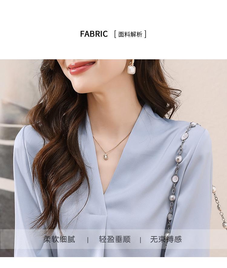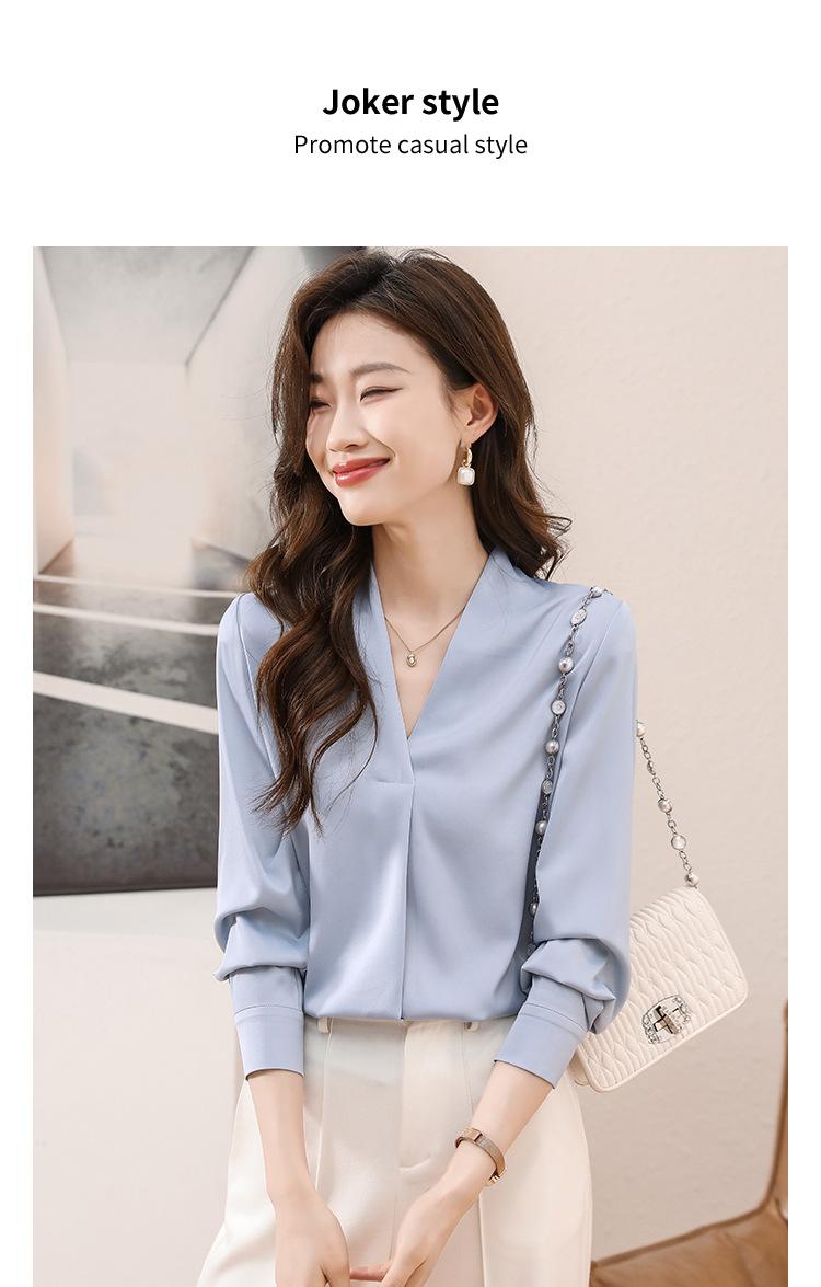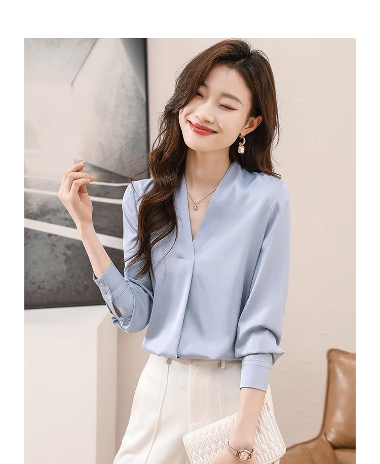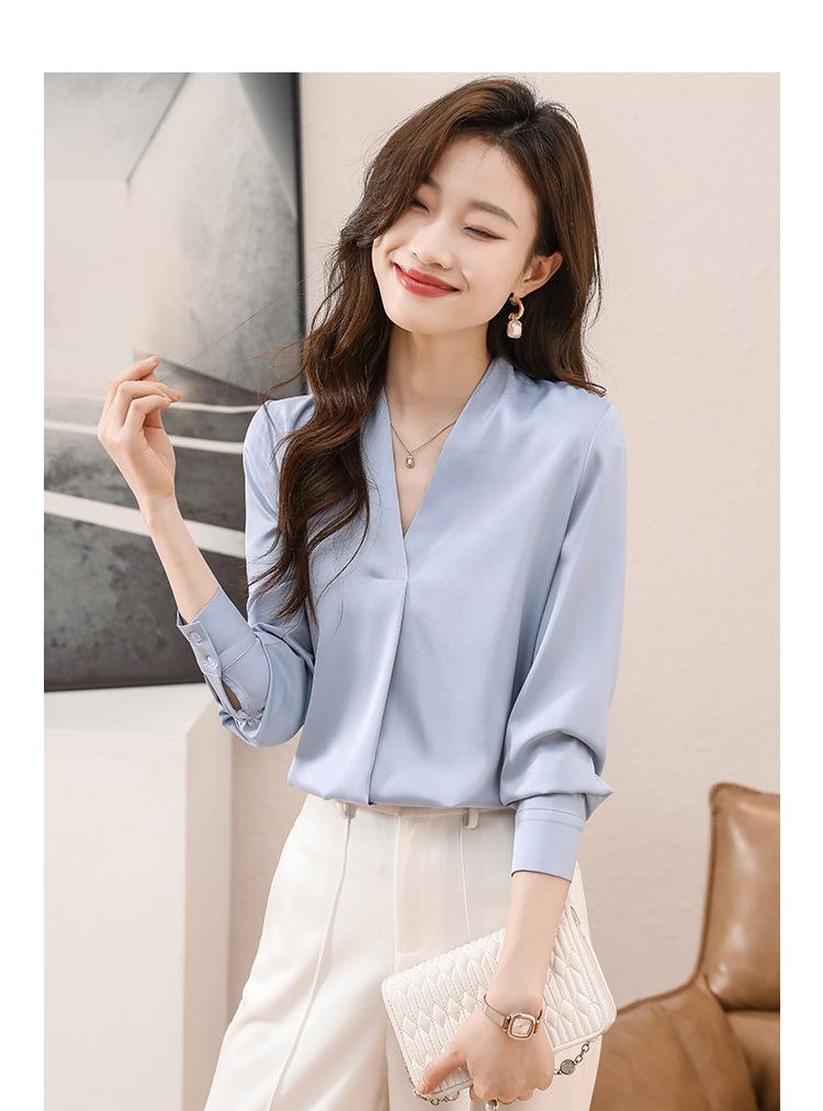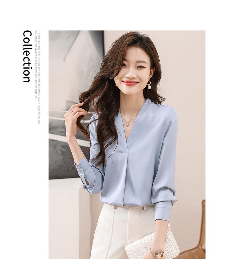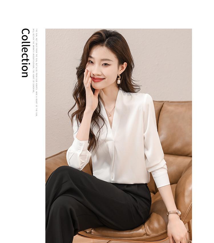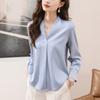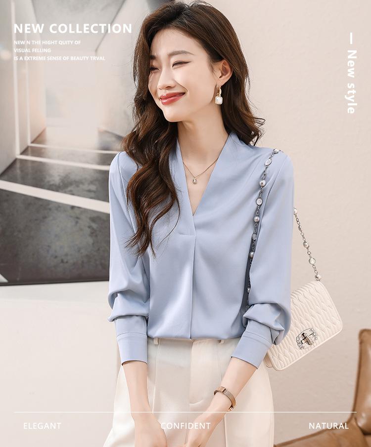 Camisa de satén francés de tiro real para mujer, diseño de manga larga de otoño, camisa profesional de nicho con cuello en V, top versátil para viajeros