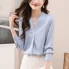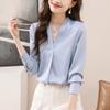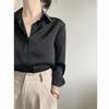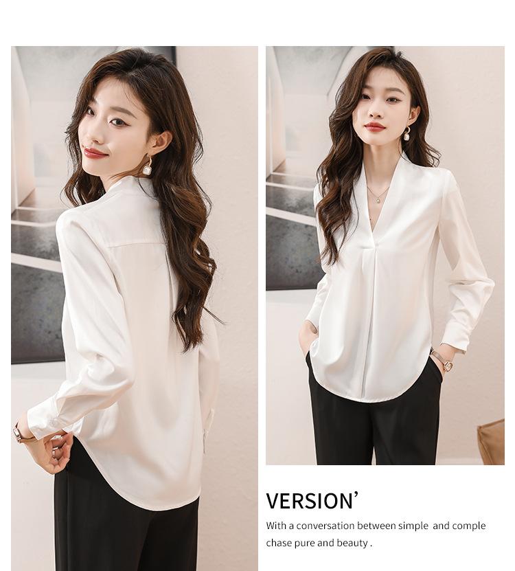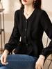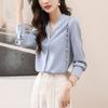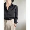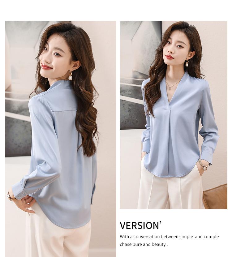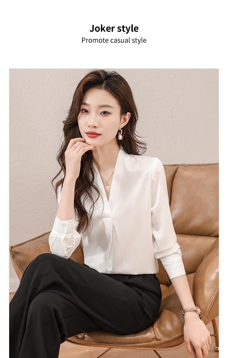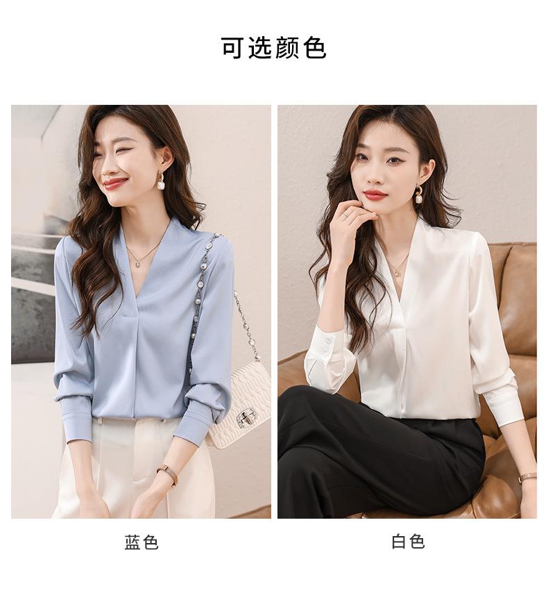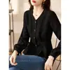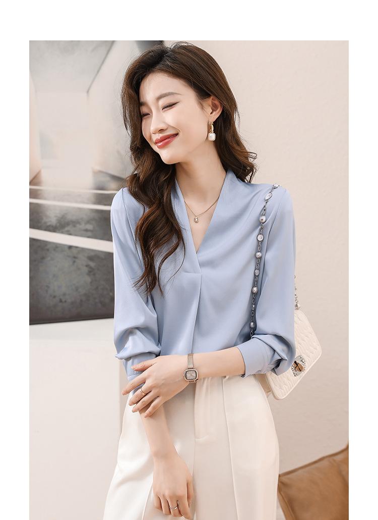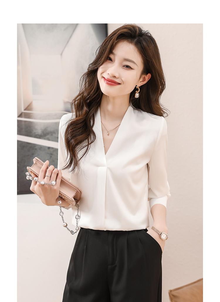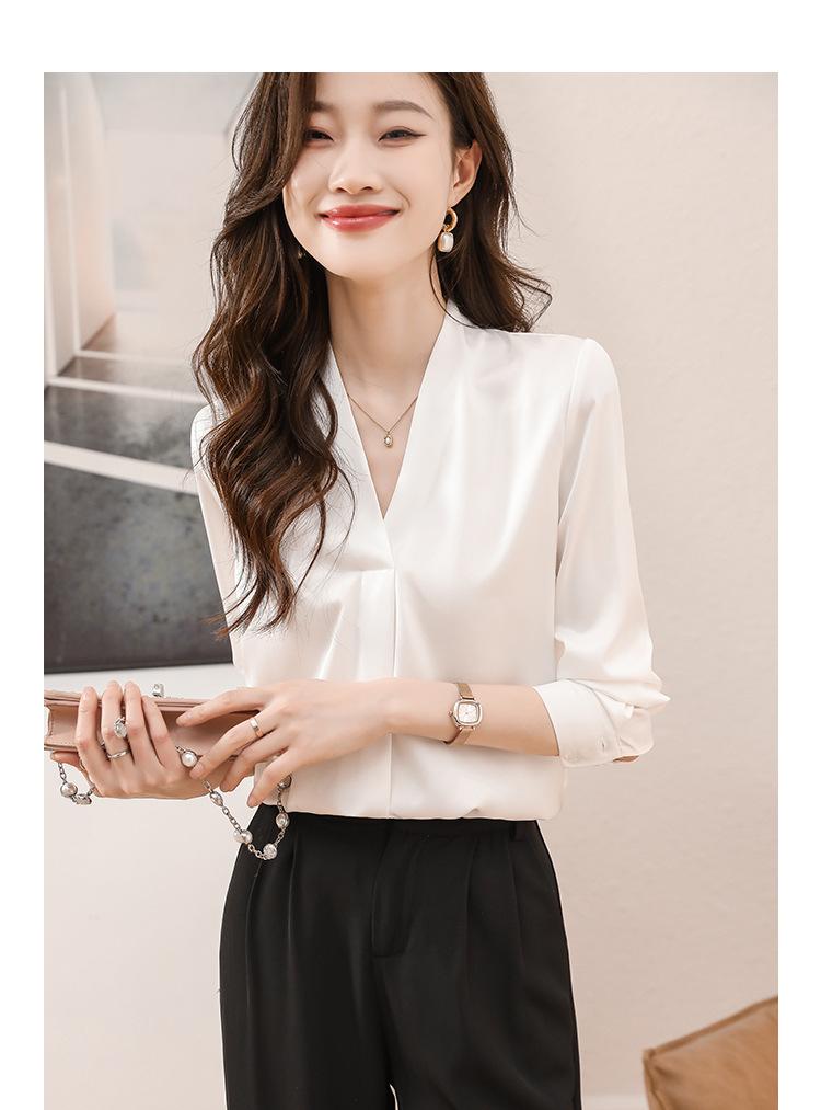 Camisa de satén francés de tiro real para mujer, diseño de manga larga de otoño, camisa profesional de nicho con cuello en V, top versátil para viajeros
