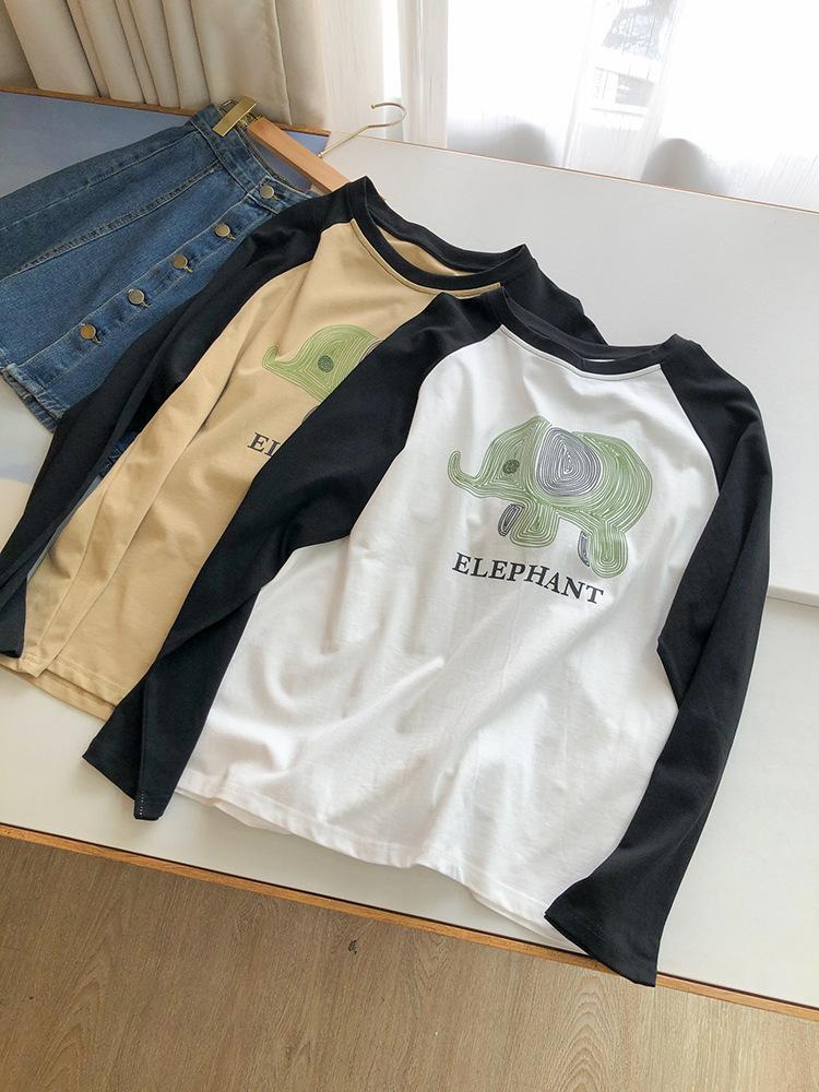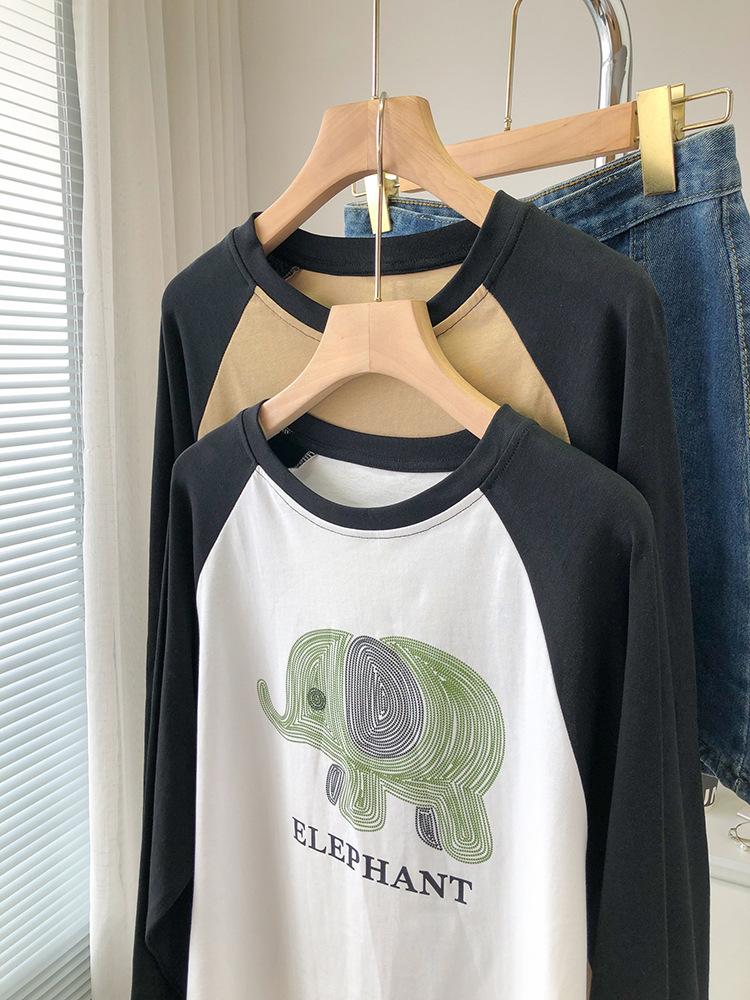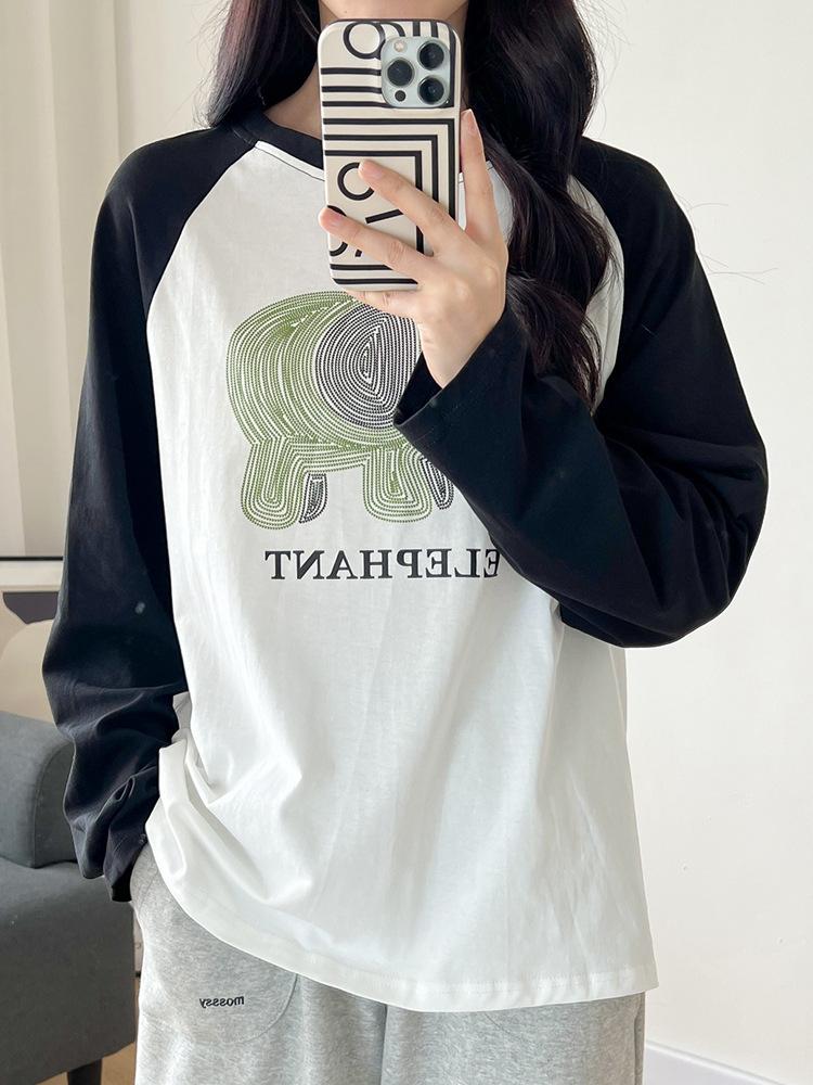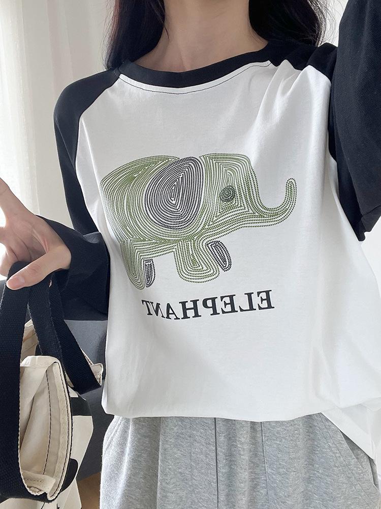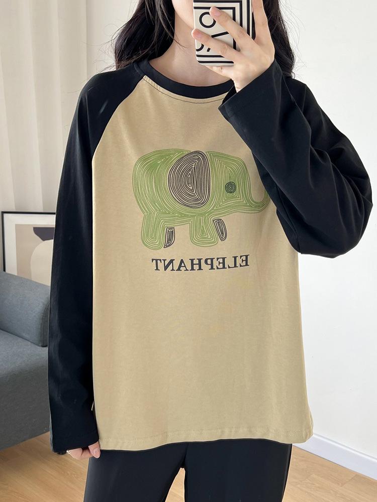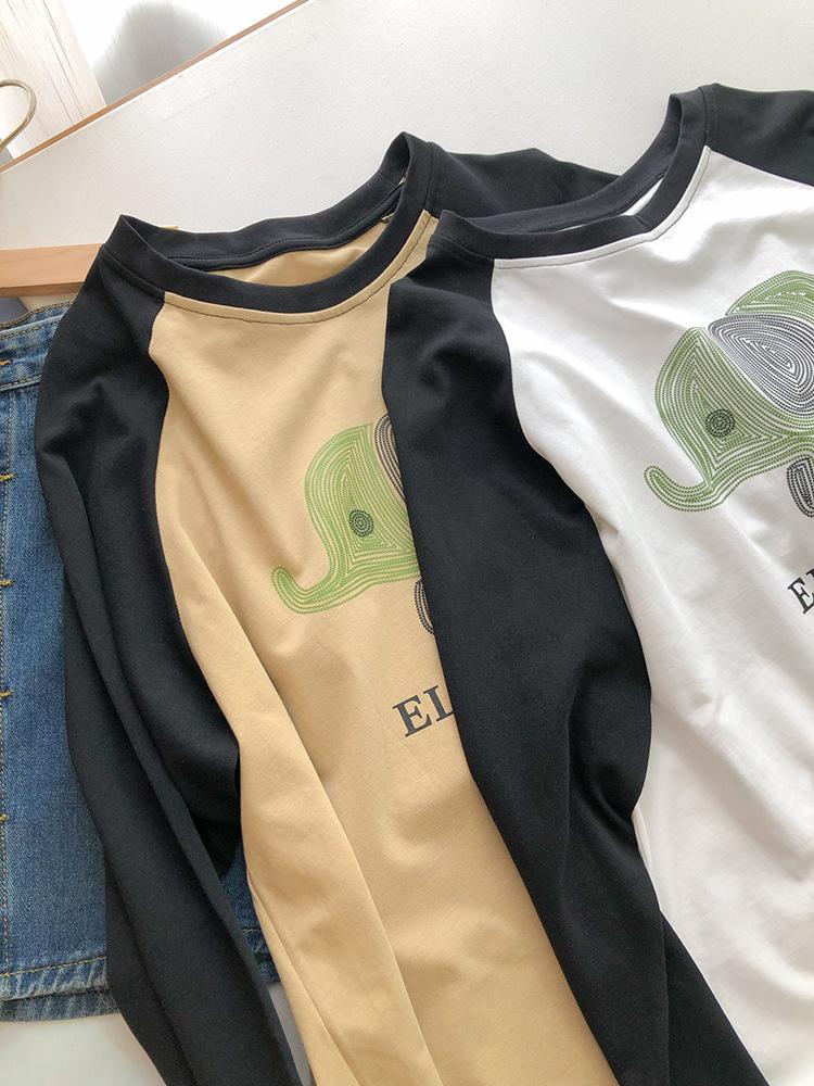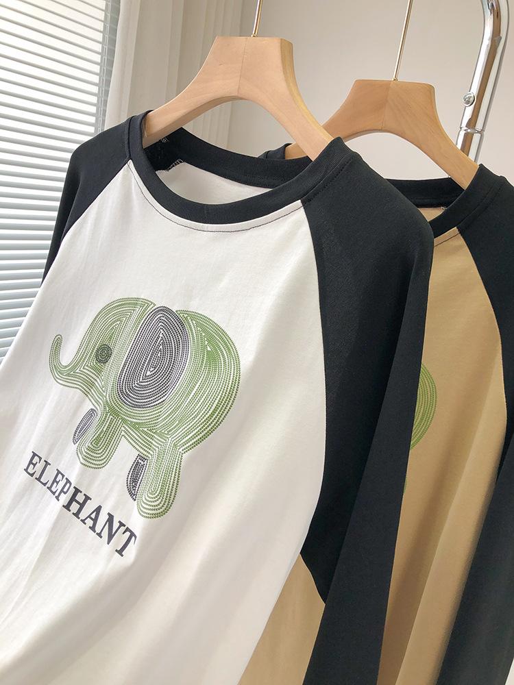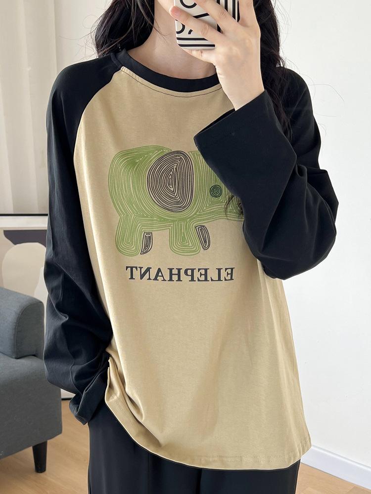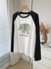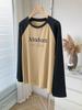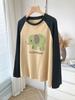 Playera de Algodón Puro Raglán de Manga Larga para Mujer Primavera y Otoño 2023 Nuevos Tops Estampado de Letras de Dibujos Animados Camiseta Básica Holgada de Talla Grande
