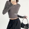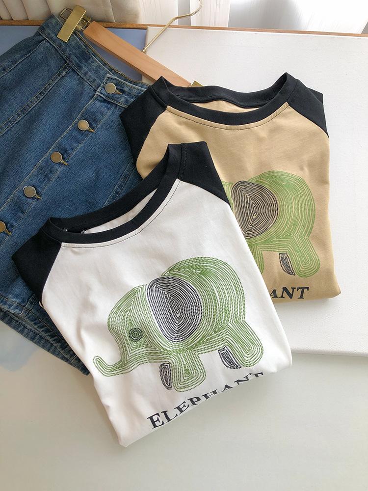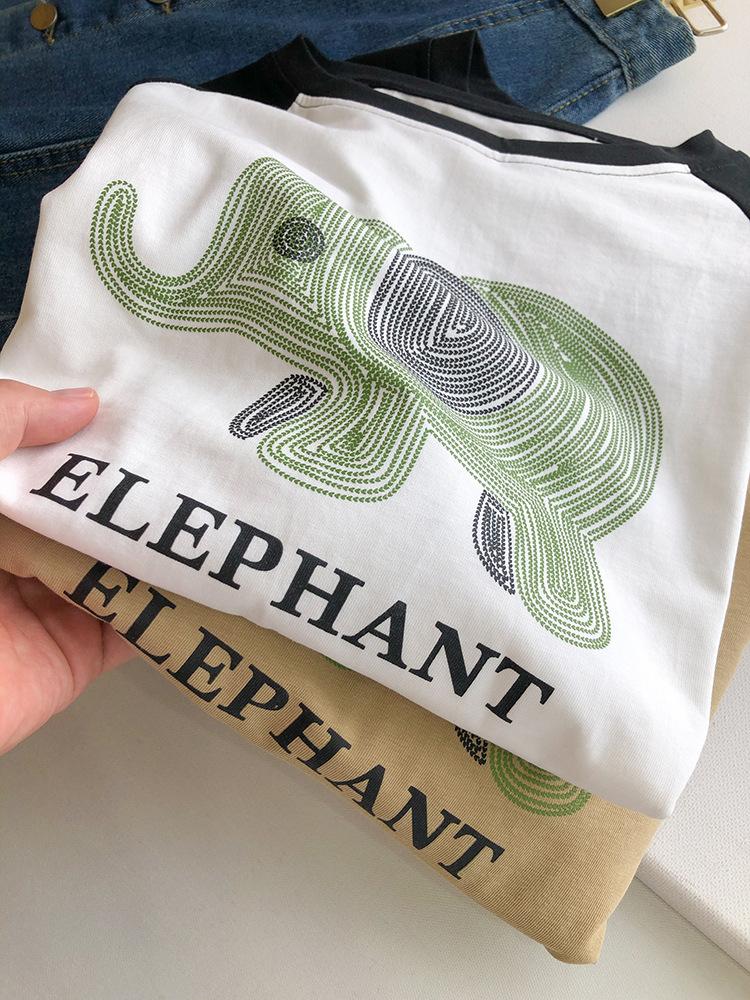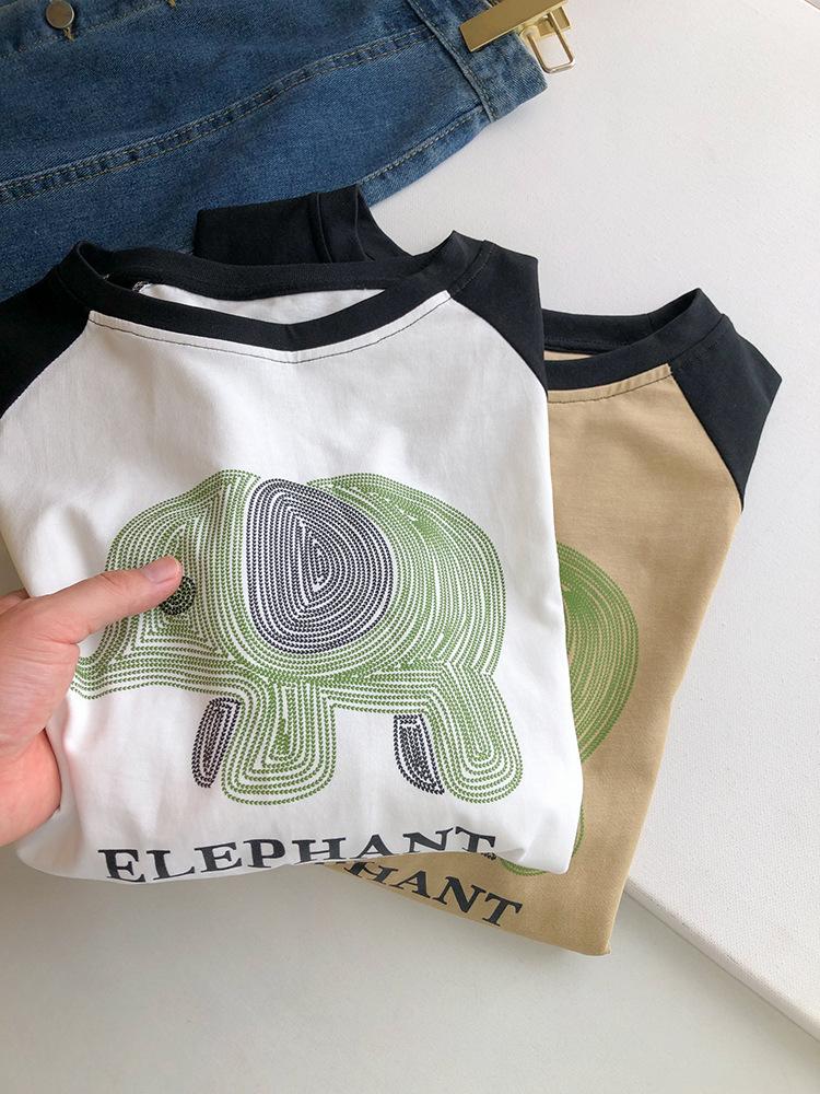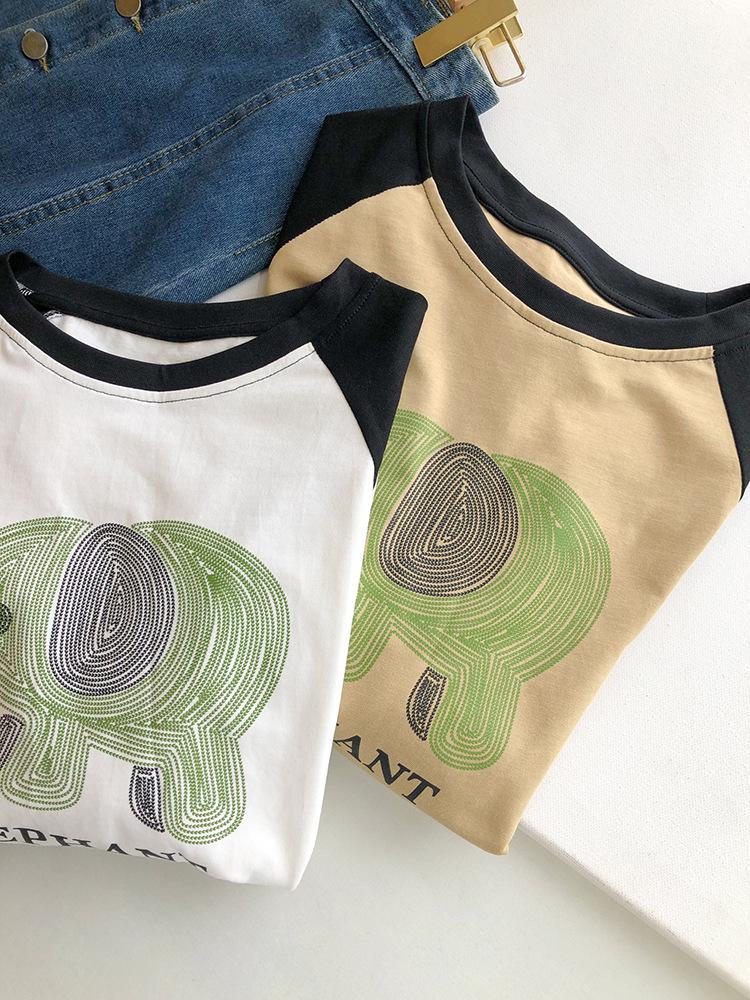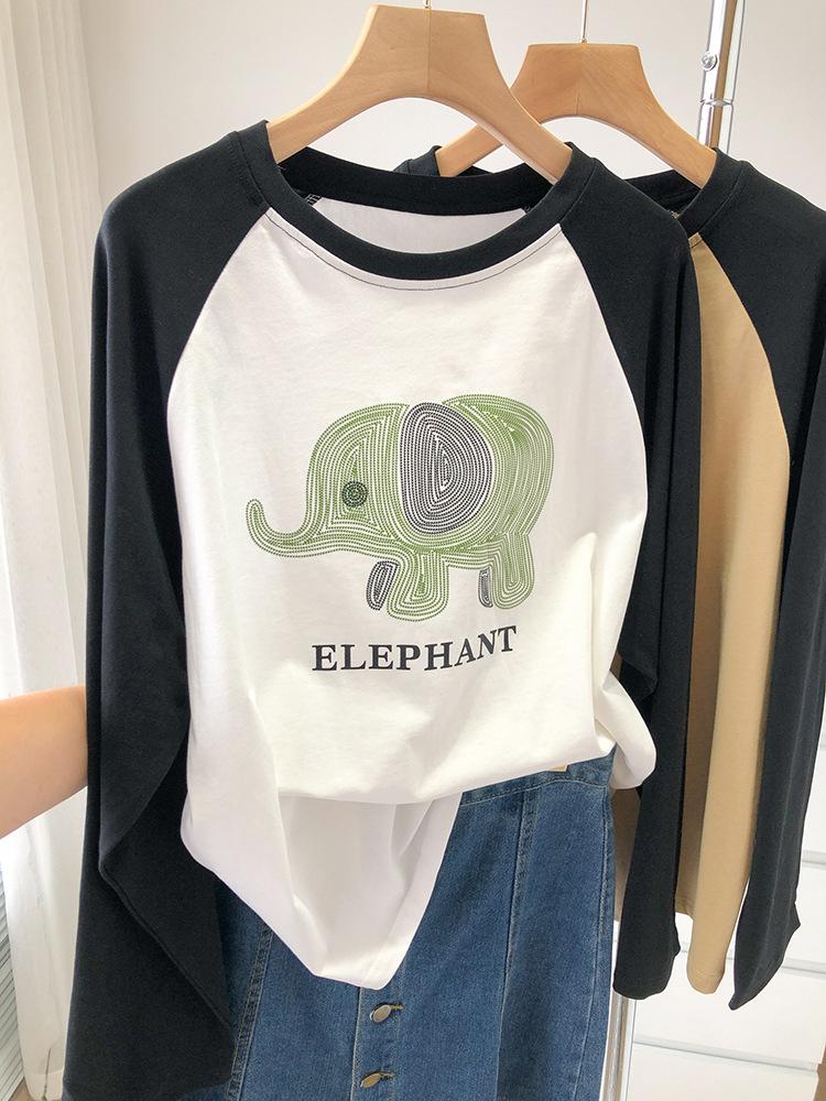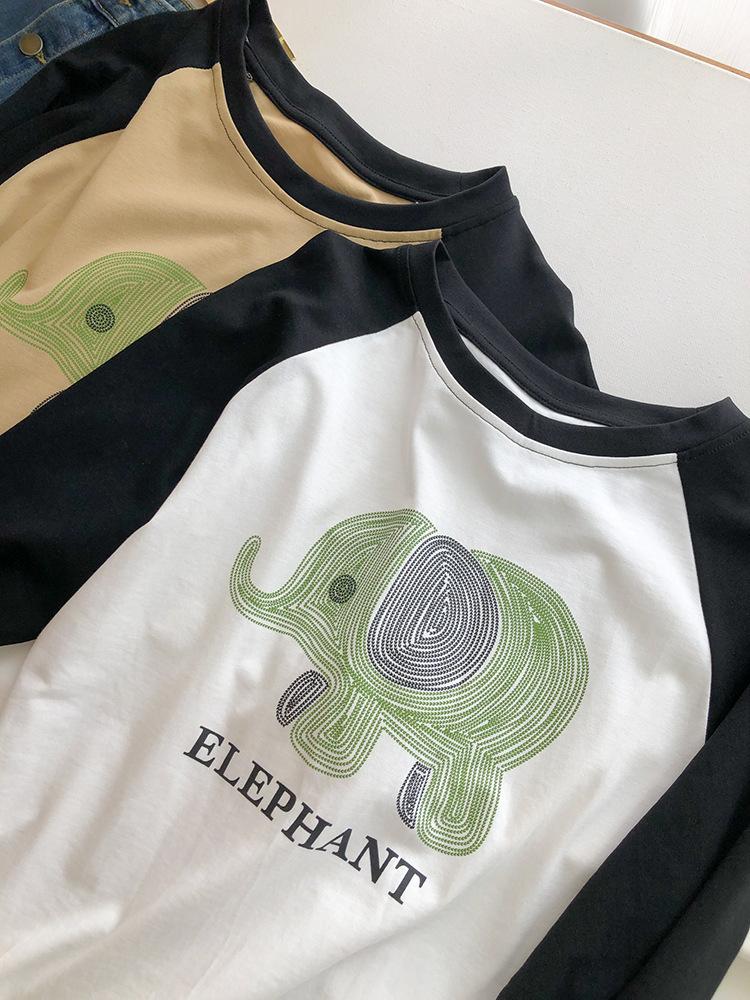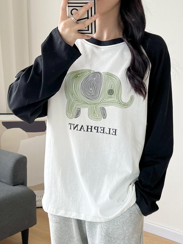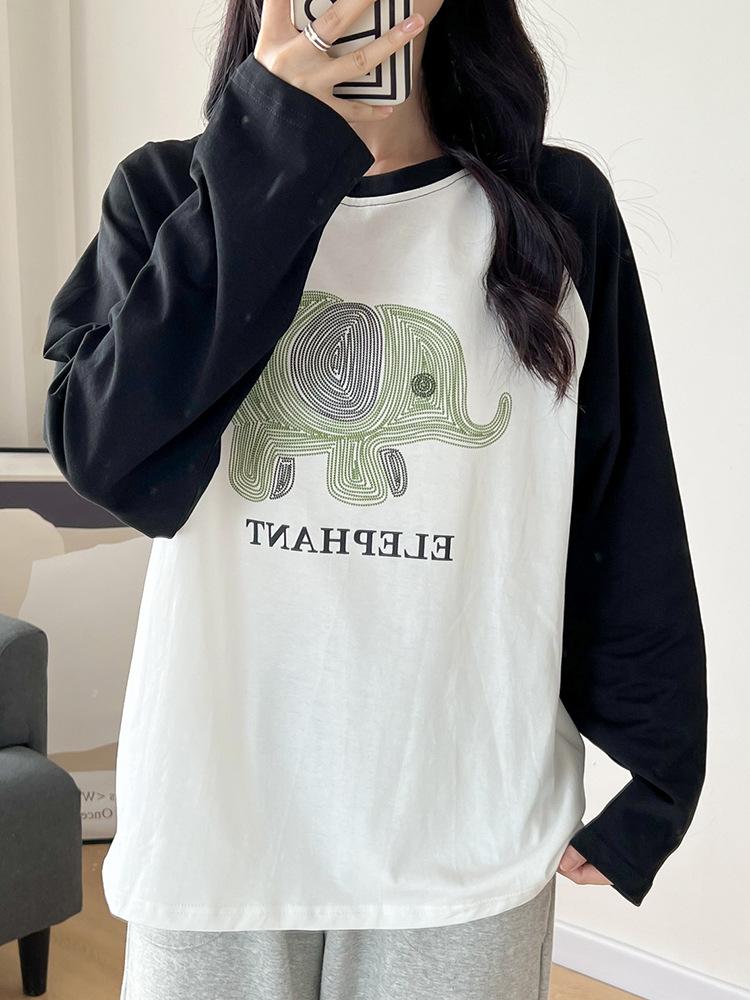 Playera de Algodón Puro Raglán de Manga Larga para Mujer Primavera y Otoño 2023 Nuevos Tops Estampado de Letras de Dibujos Animados Camiseta Básica Holgada de Talla Grande