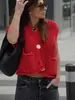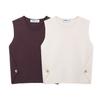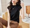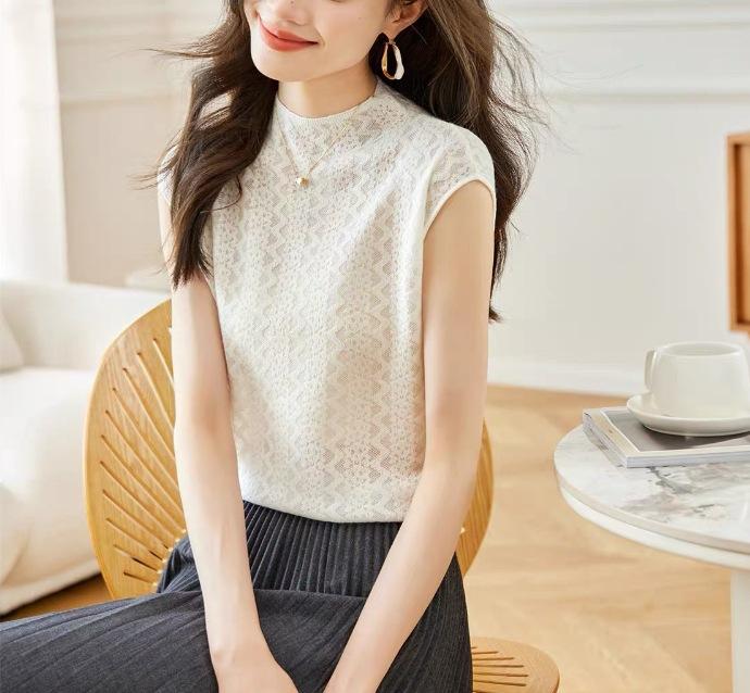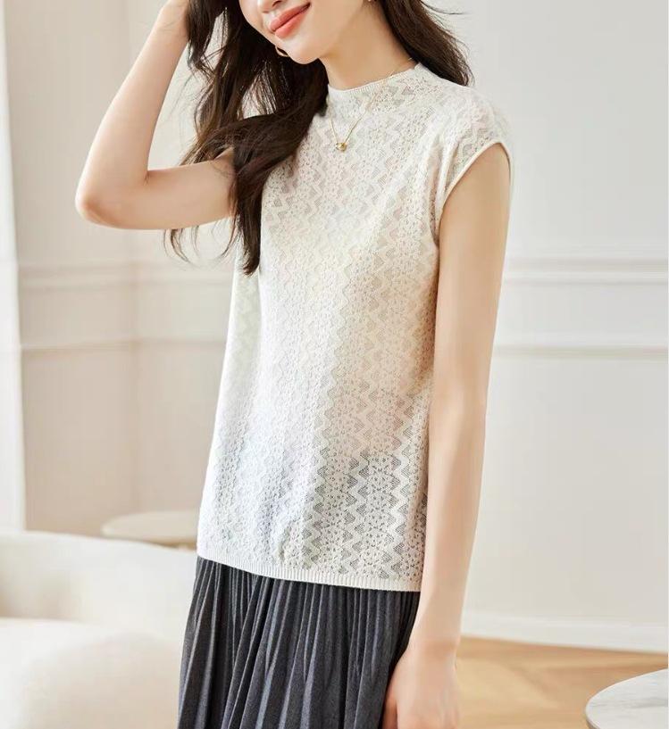 Chaleco de punto sin mangas de jacquard con cuello alto medio para mujer, primavera 2024, nuevo top corto súper bonito