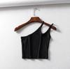 Camisola corta ajustada con cuello oblicuo irregular y un solo hombro, novedad de verano de 2024 para mujer