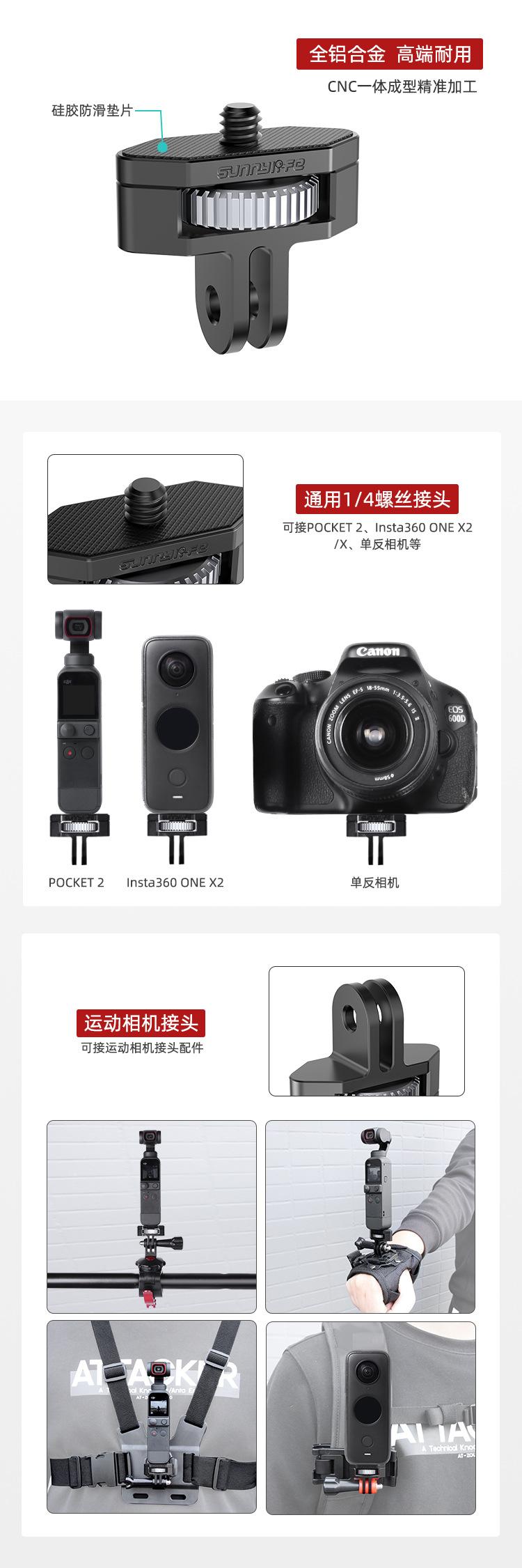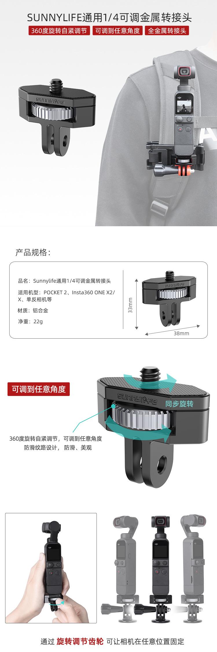 OSMO 360/ puede serInsta360 X5、POCKET 3/2、Panorámica de 1 pulgada Insta360 ONE RS, FIMI PALM 2, Insta360 ONE X2/X, cámaras SLR y otros equipos fotográficos con orificios de tornillo de 1/4 en la parte inferiorAdaptador para el conector de la cámara deportiva accesorios