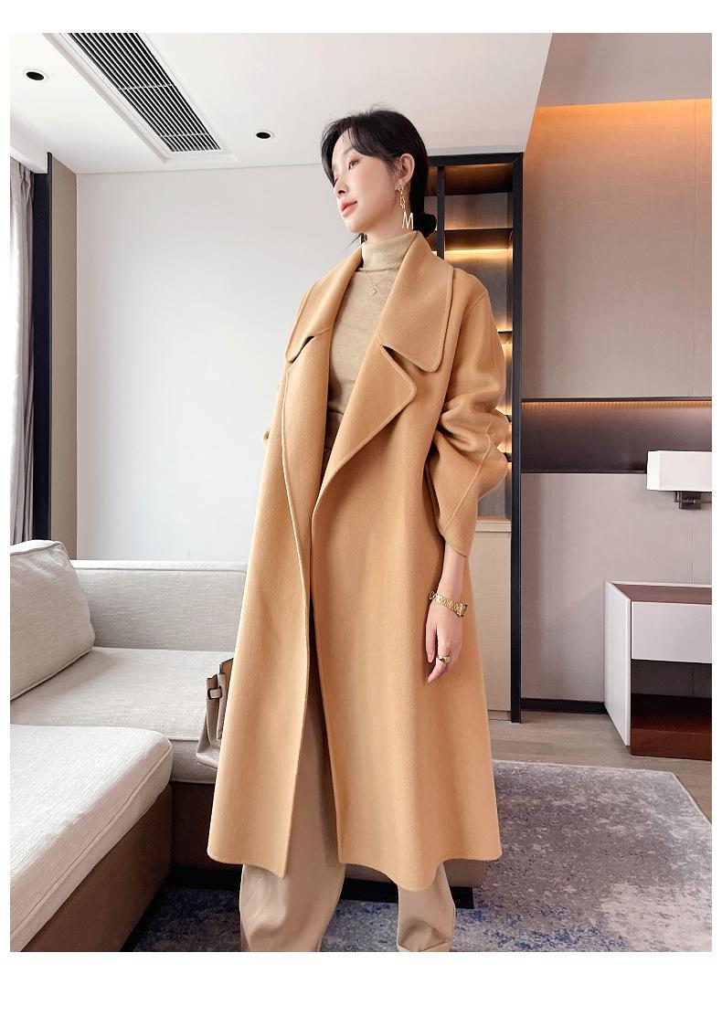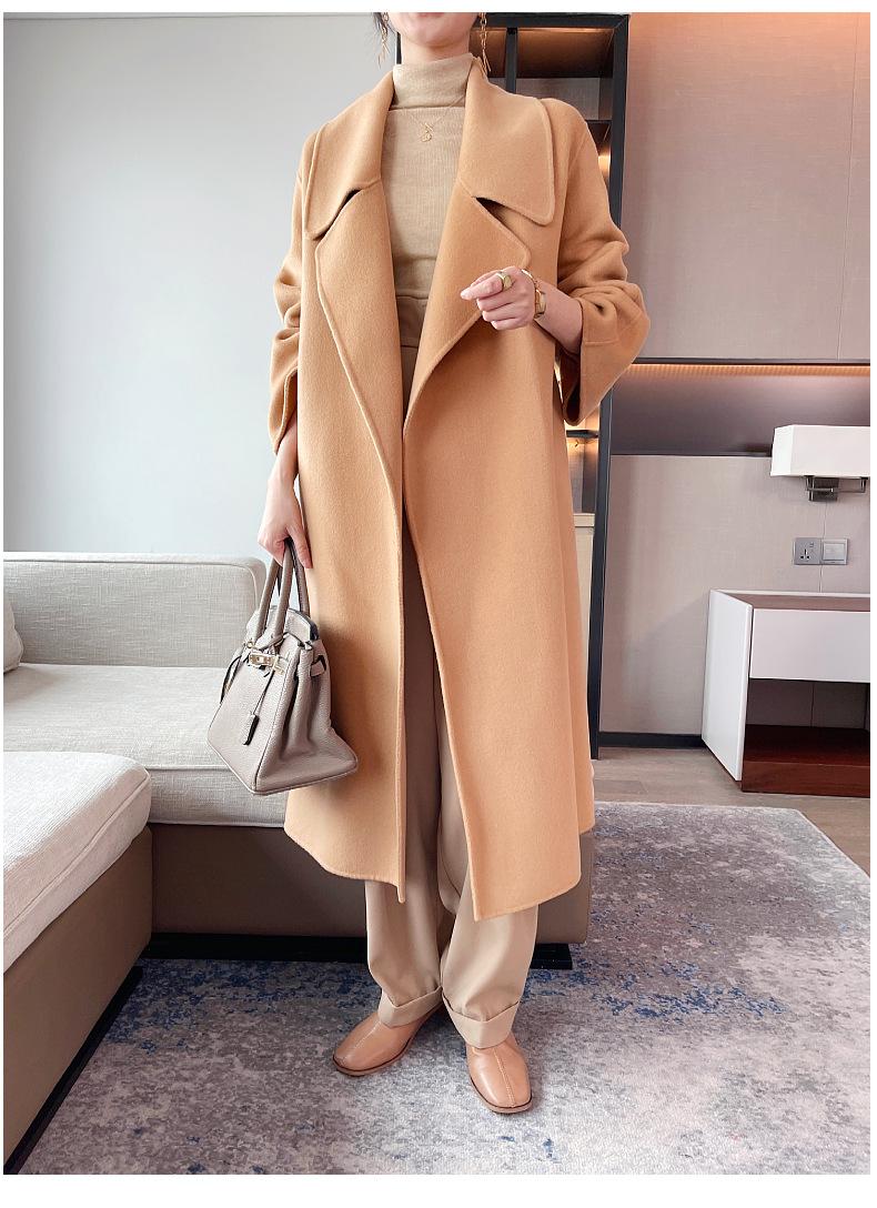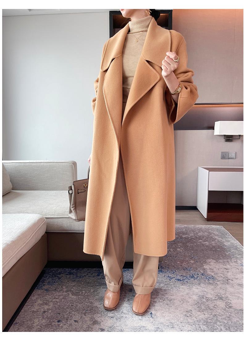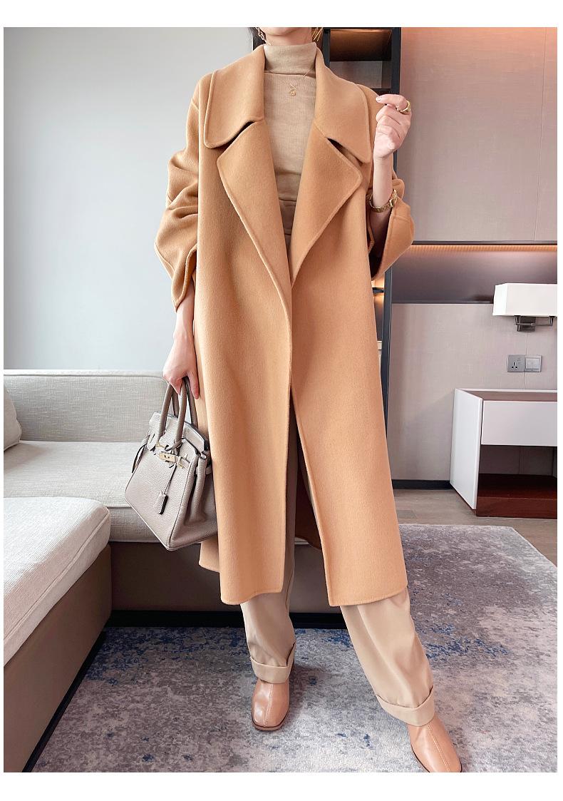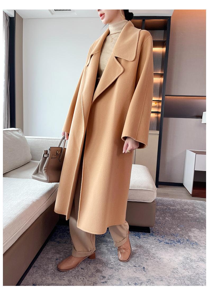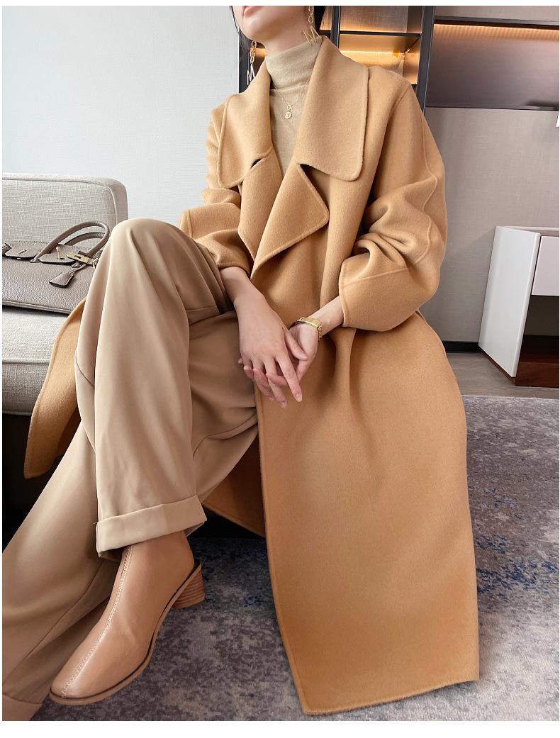 Abrigo de Cachemira de Doble Cara Camel para Mujer, Largo Medio, Abrigo de Lana Otoño e Invierno 2025, Elegante y Adecuado para Desplazamientos