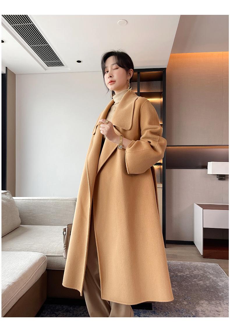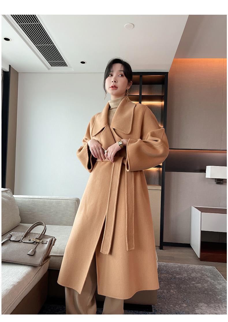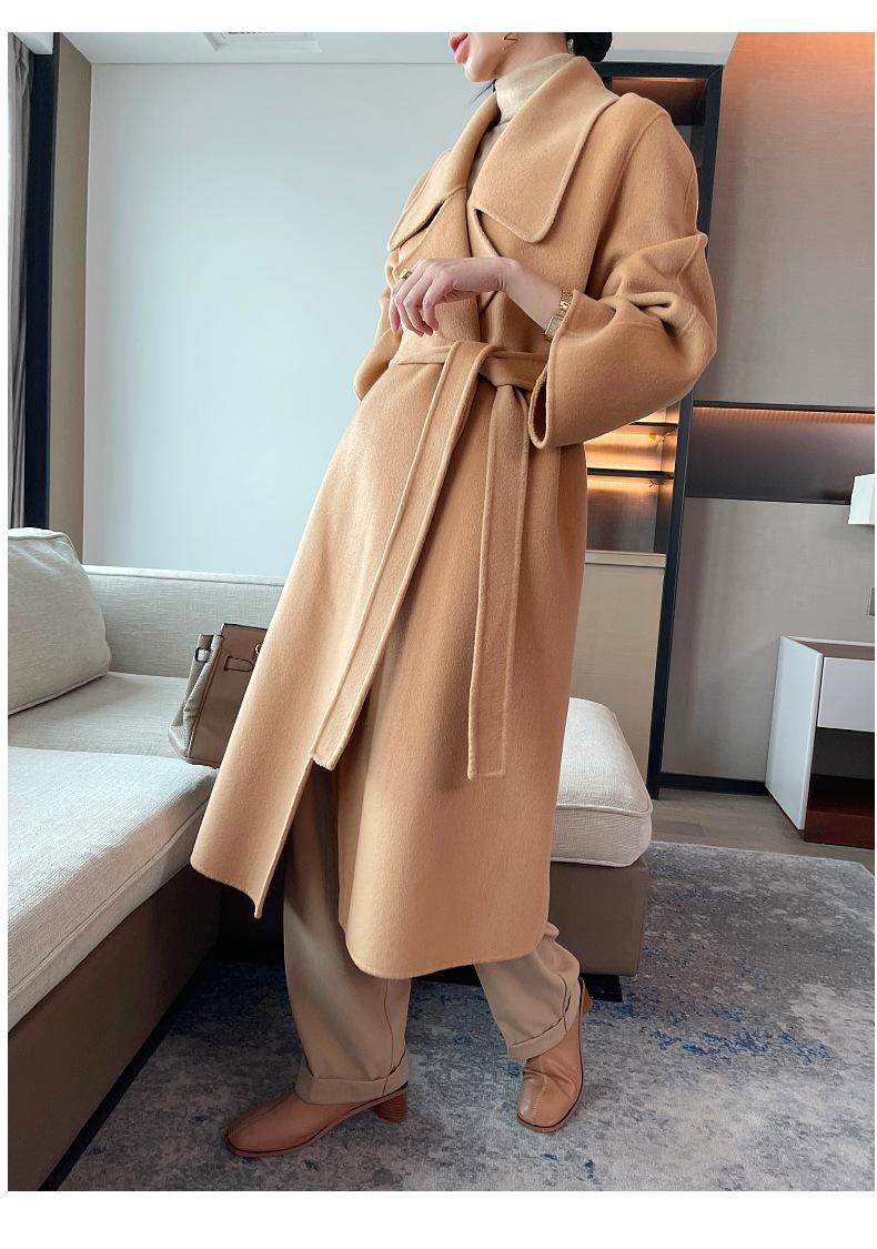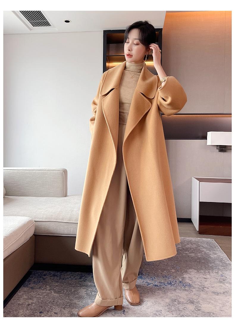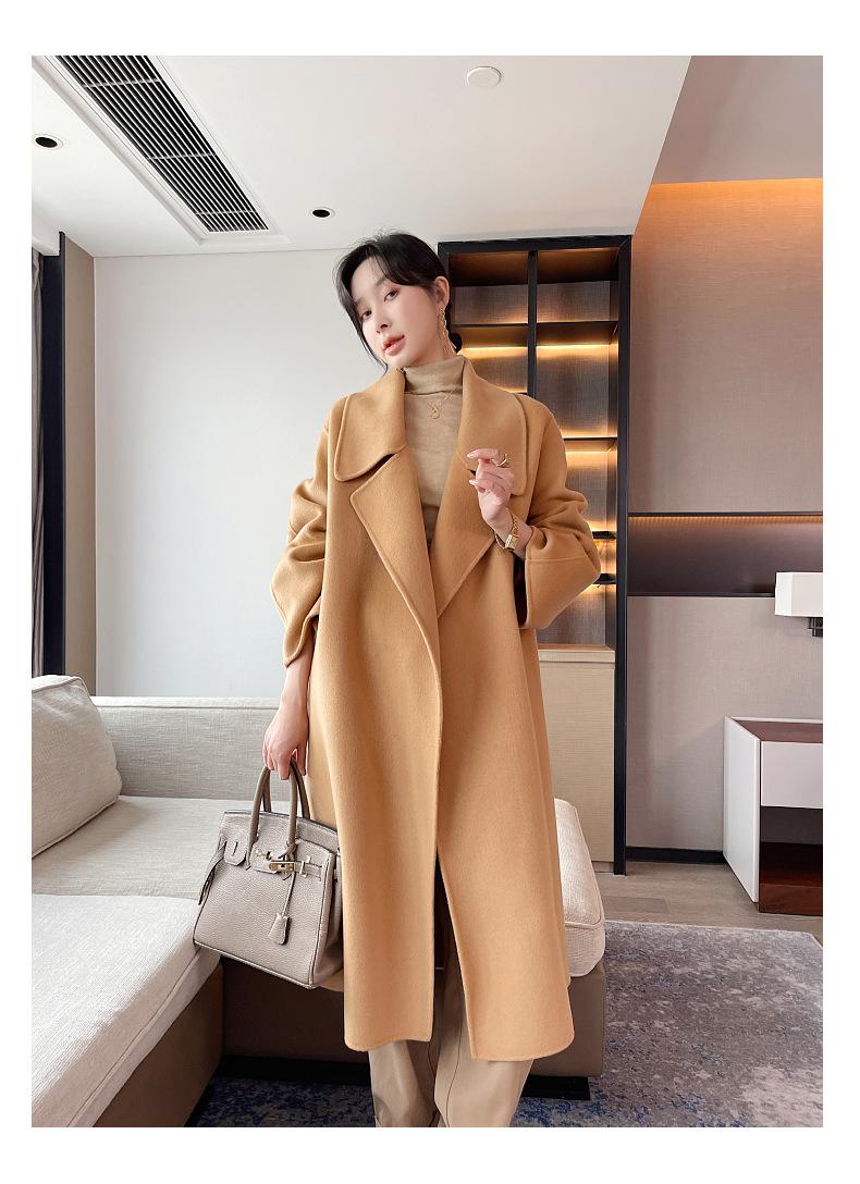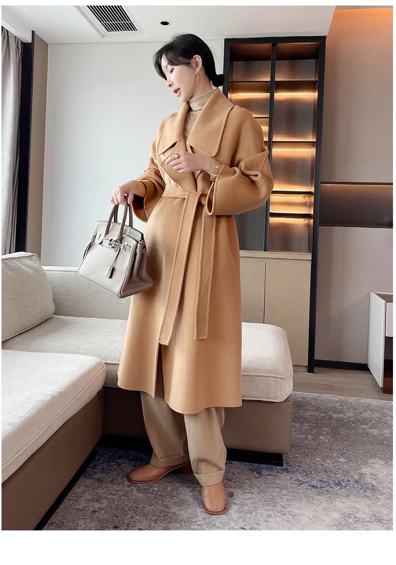 Abrigo de Cachemira de Doble Cara Camel para Mujer, Largo Medio, Abrigo de Lana Otoño e Invierno 2025, Elegante y Adecuado para Desplazamientos