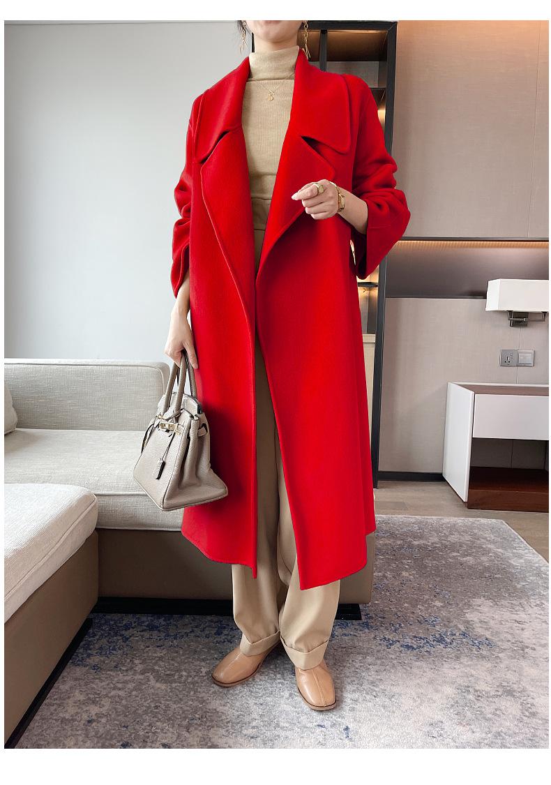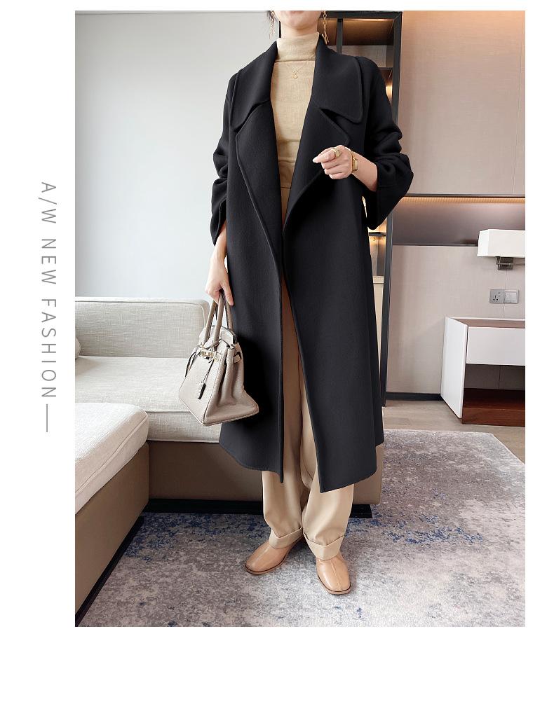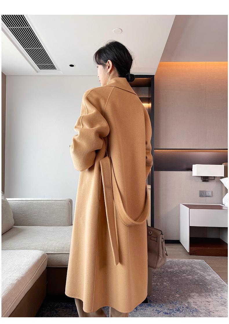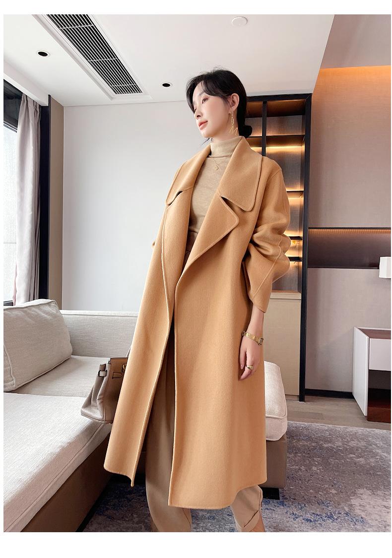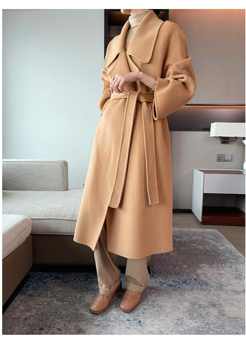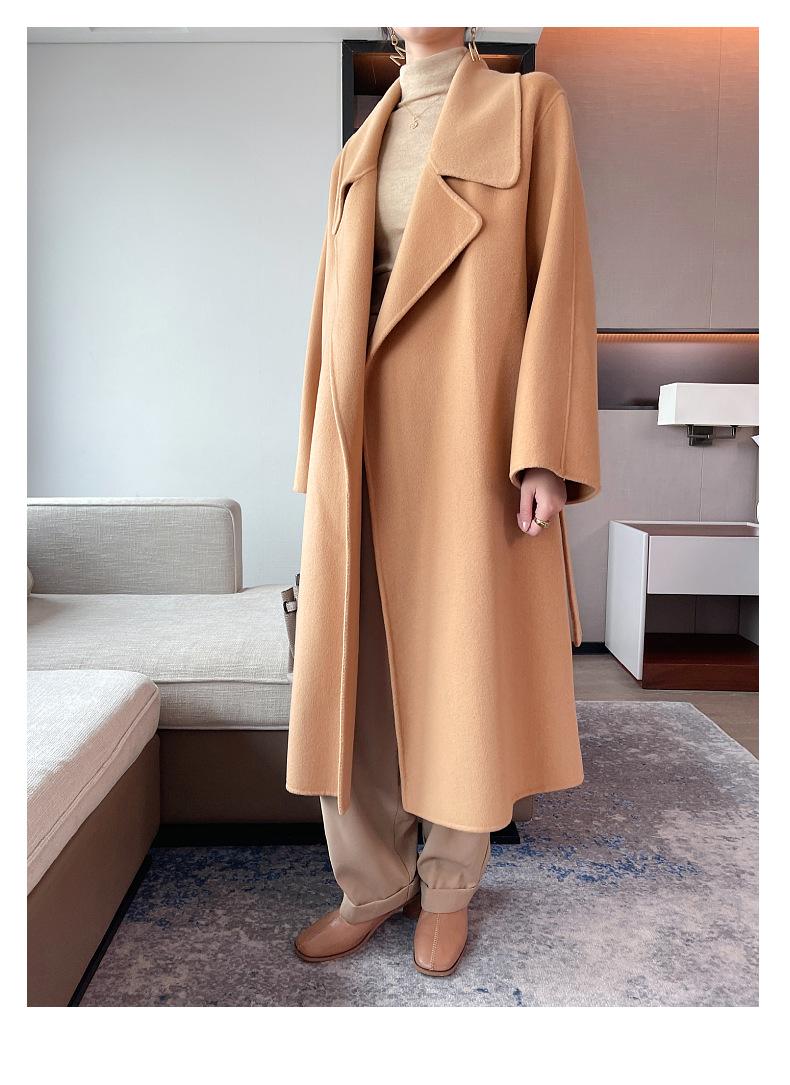 Abrigo de Cachemira de Doble Cara Camel para Mujer, Largo Medio, Abrigo de Lana Otoño e Invierno 2025, Elegante y Adecuado para Desplazamientos