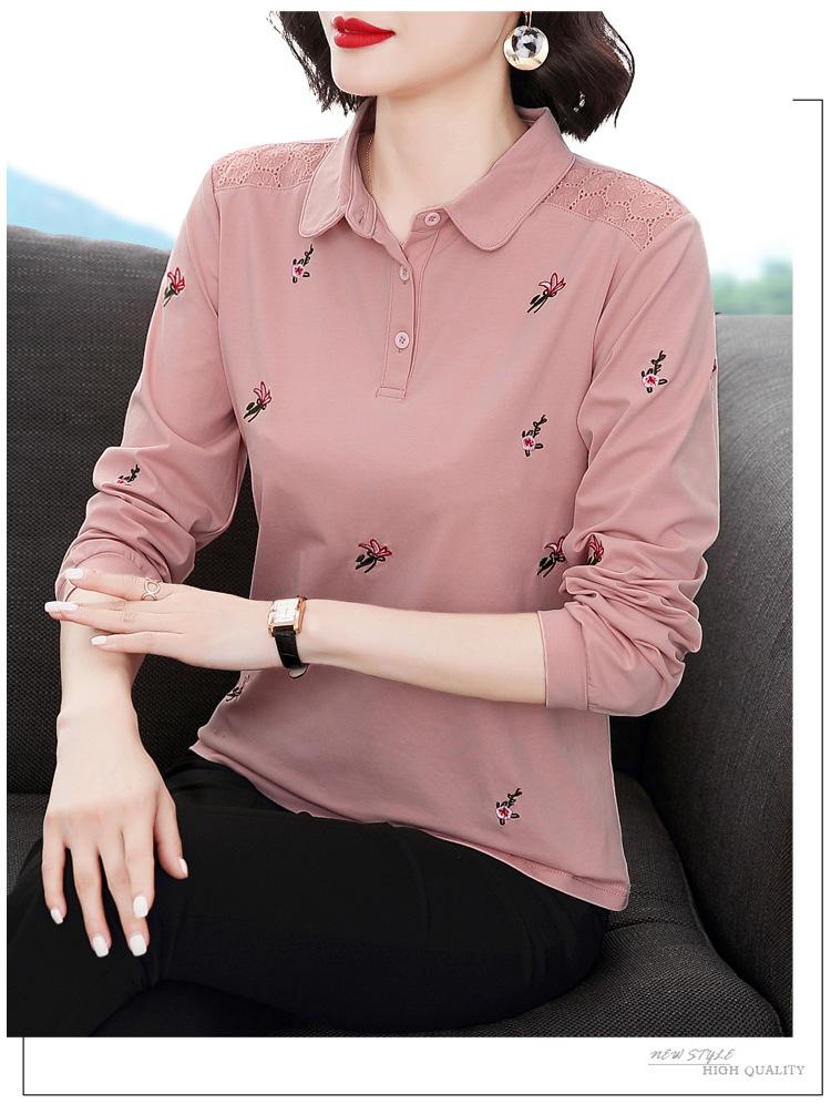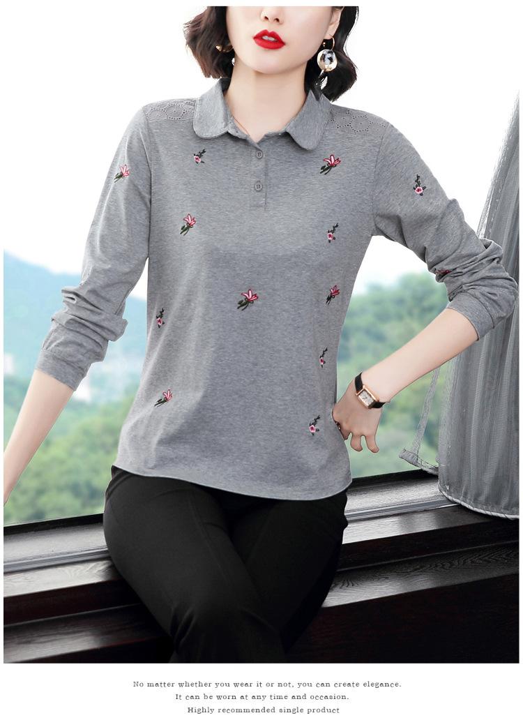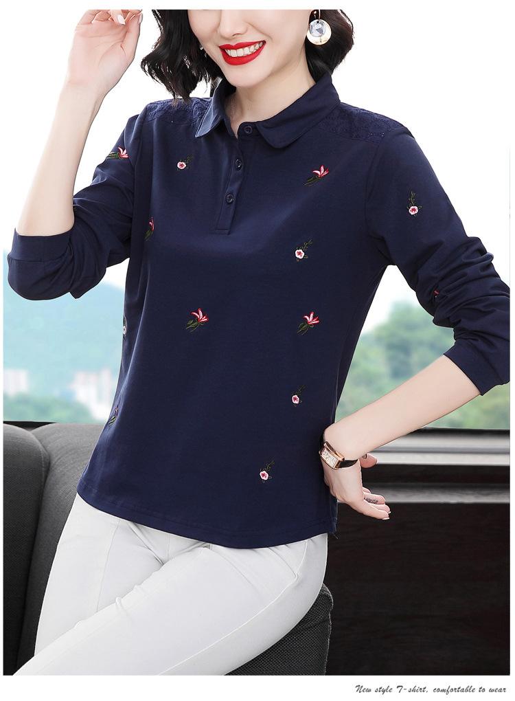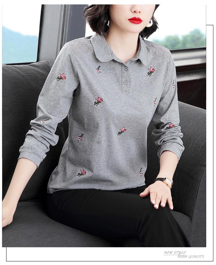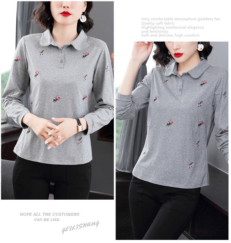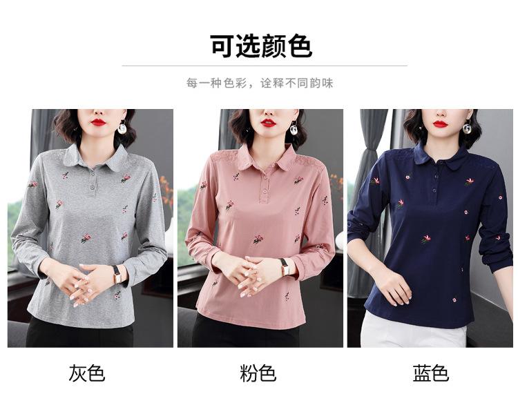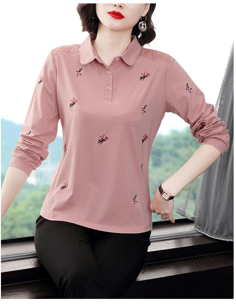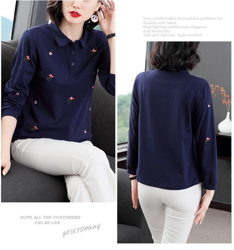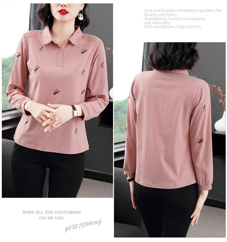Camiseta de manga larga de algodón de nuevo estilo primavera y otoño 2023 para mamás, mujeres de mediana edad y mayores, camisa polo con solapa y parte superior de abajo, camisa de moda