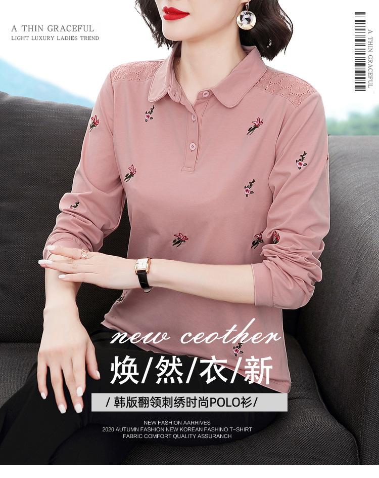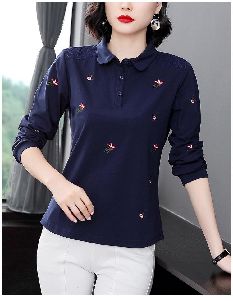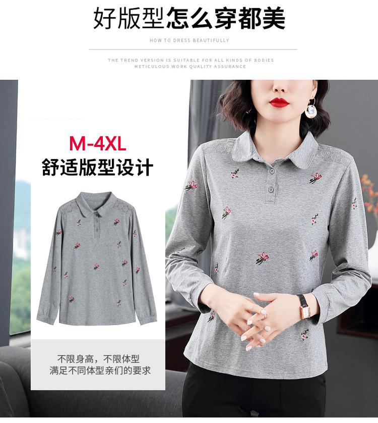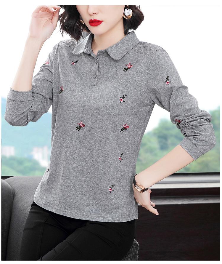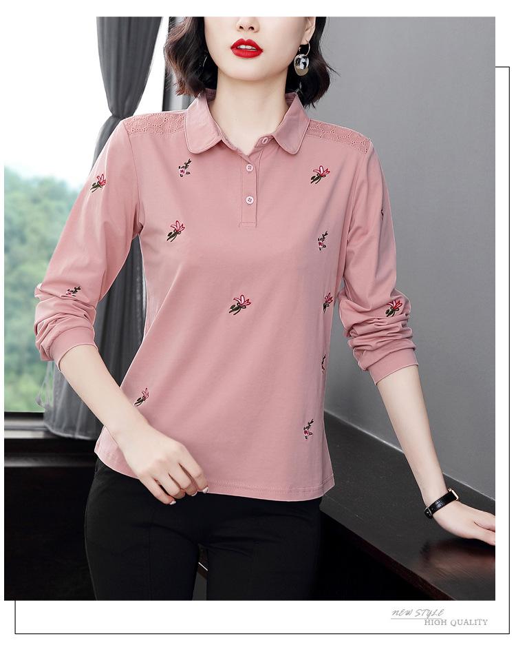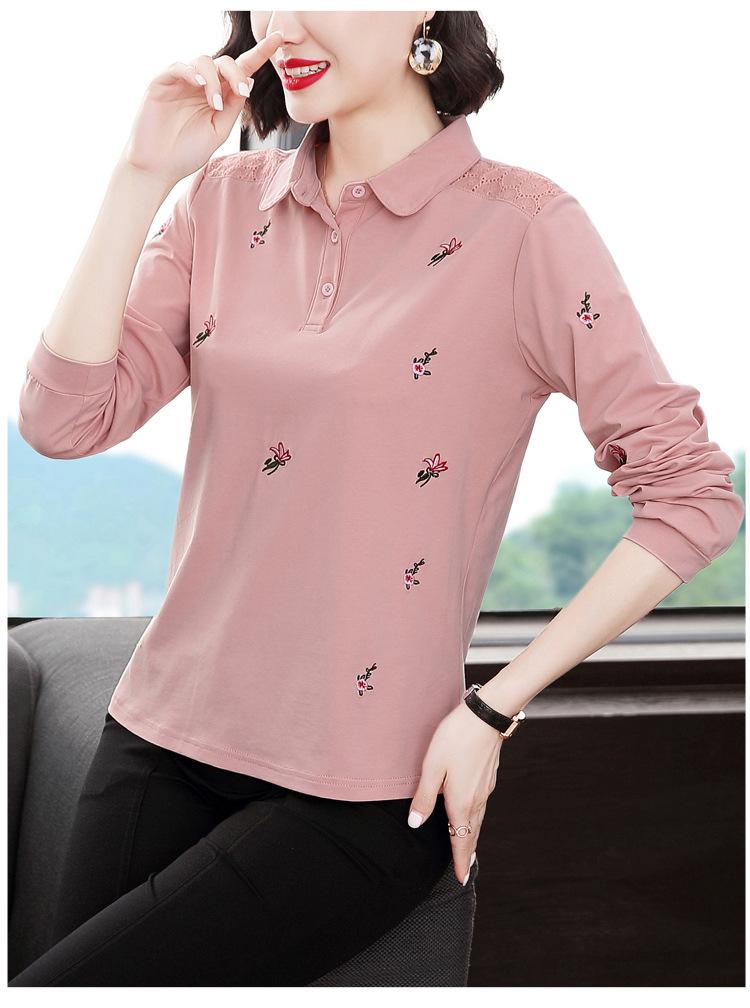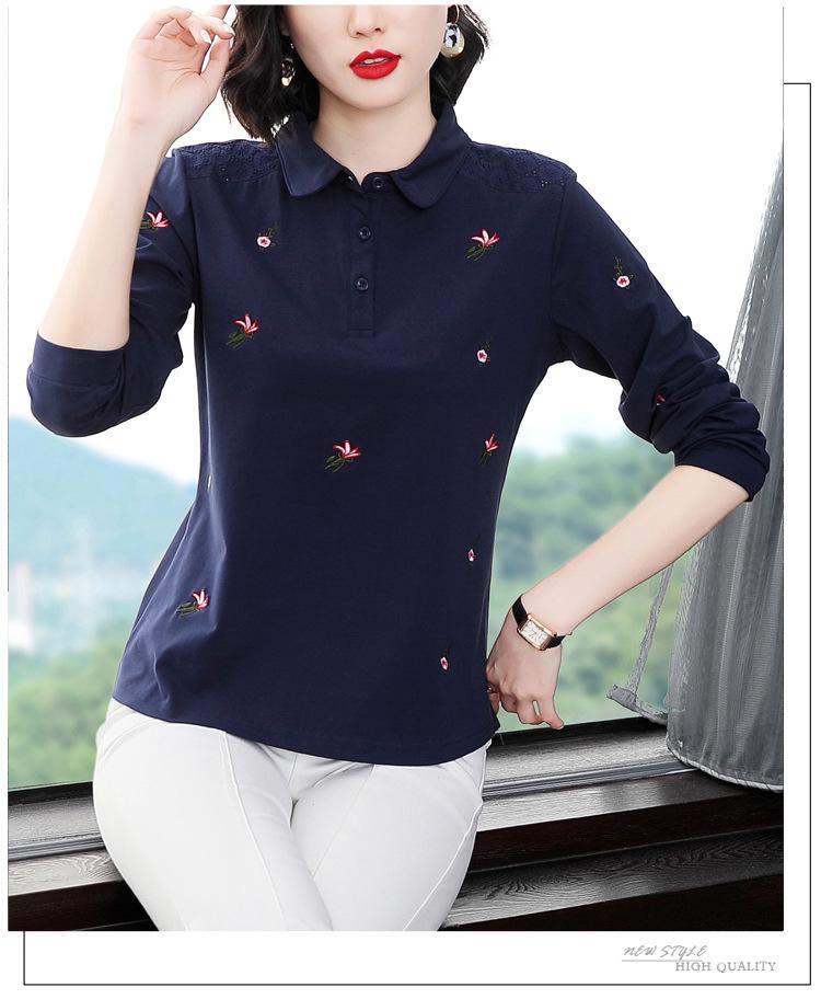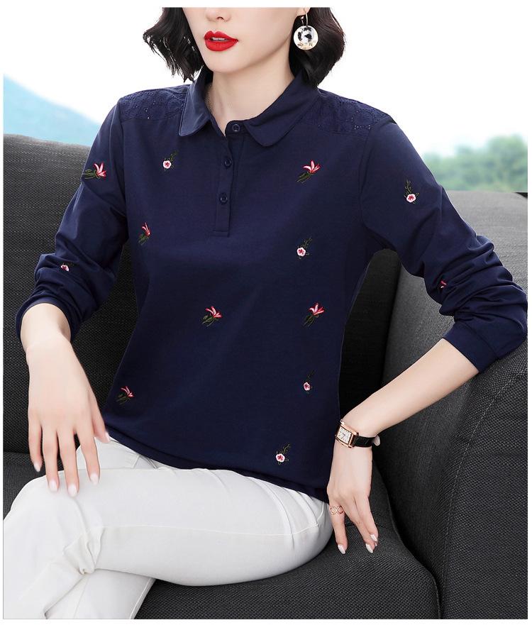 Camiseta de manga larga de algodón de nuevo estilo primavera y otoño 2023 para mamás, mujeres de mediana edad y mayores, camisa polo con solapa y parte superior de abajo, camisa de moda