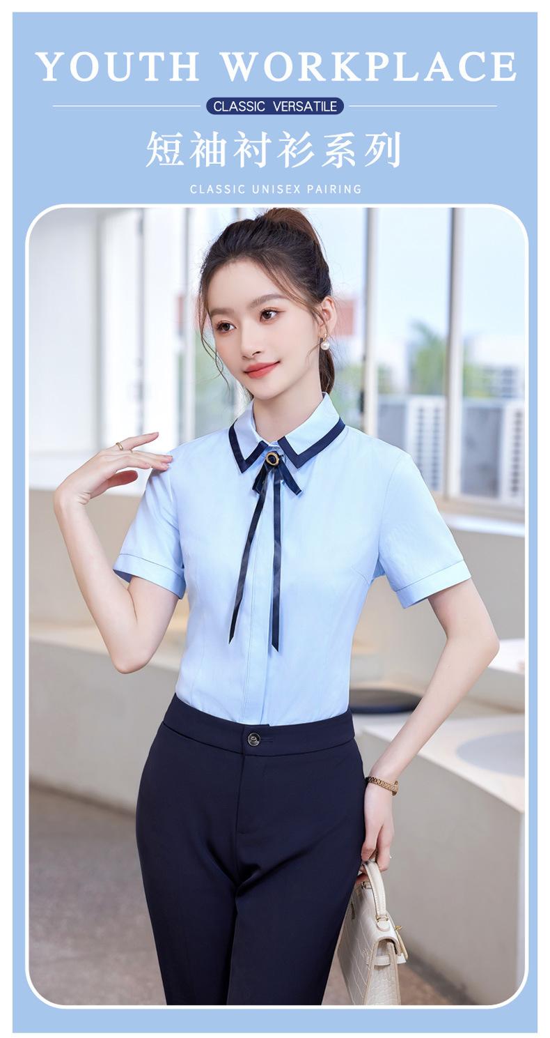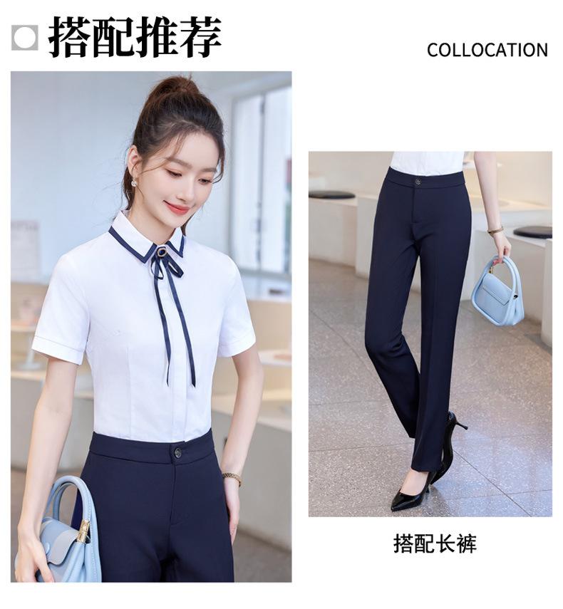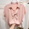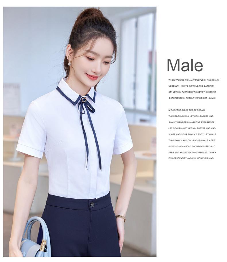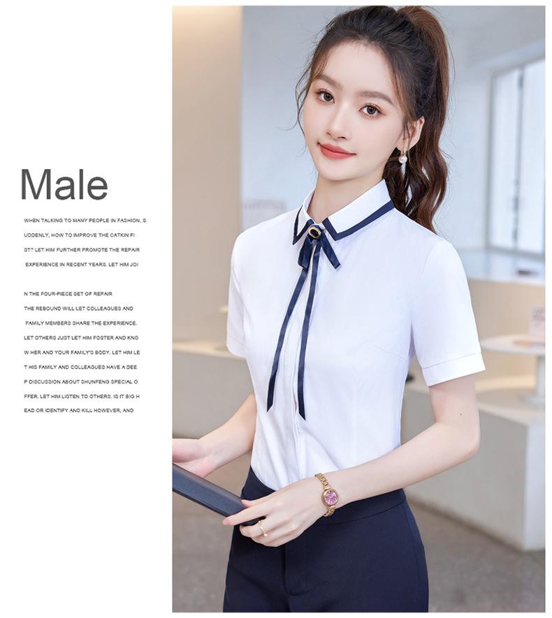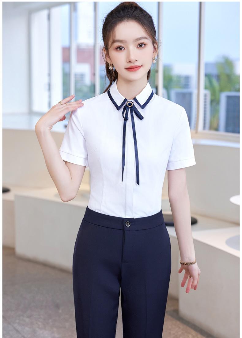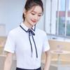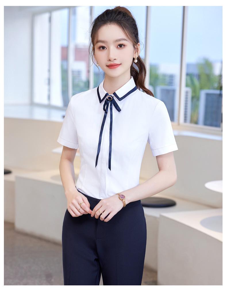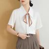 Camisa de verano ajustada de gasa con lazo y cuello cuadrado para mujer, ropa de trabajo de manga corta, camisa profesional blanca