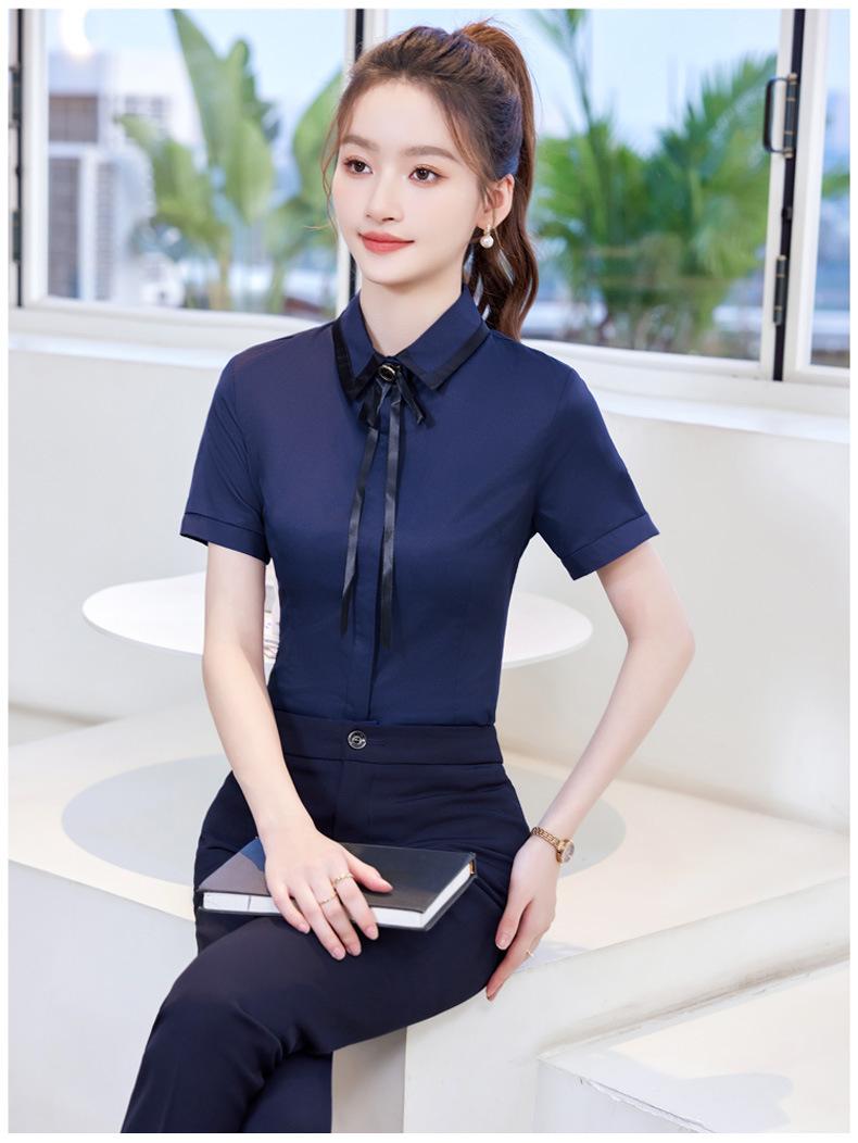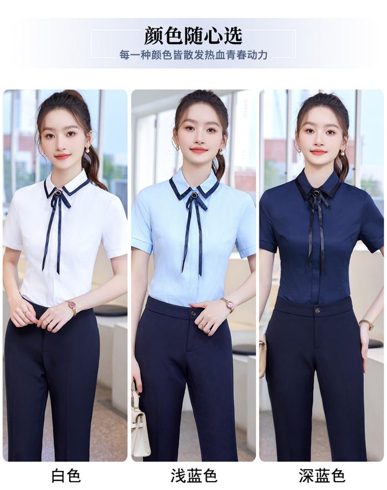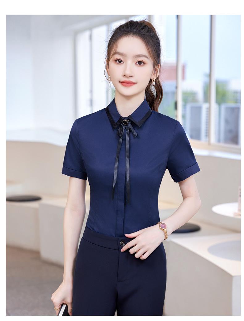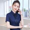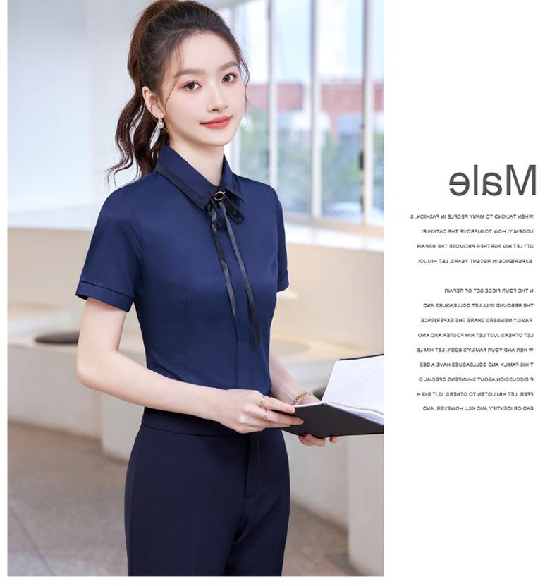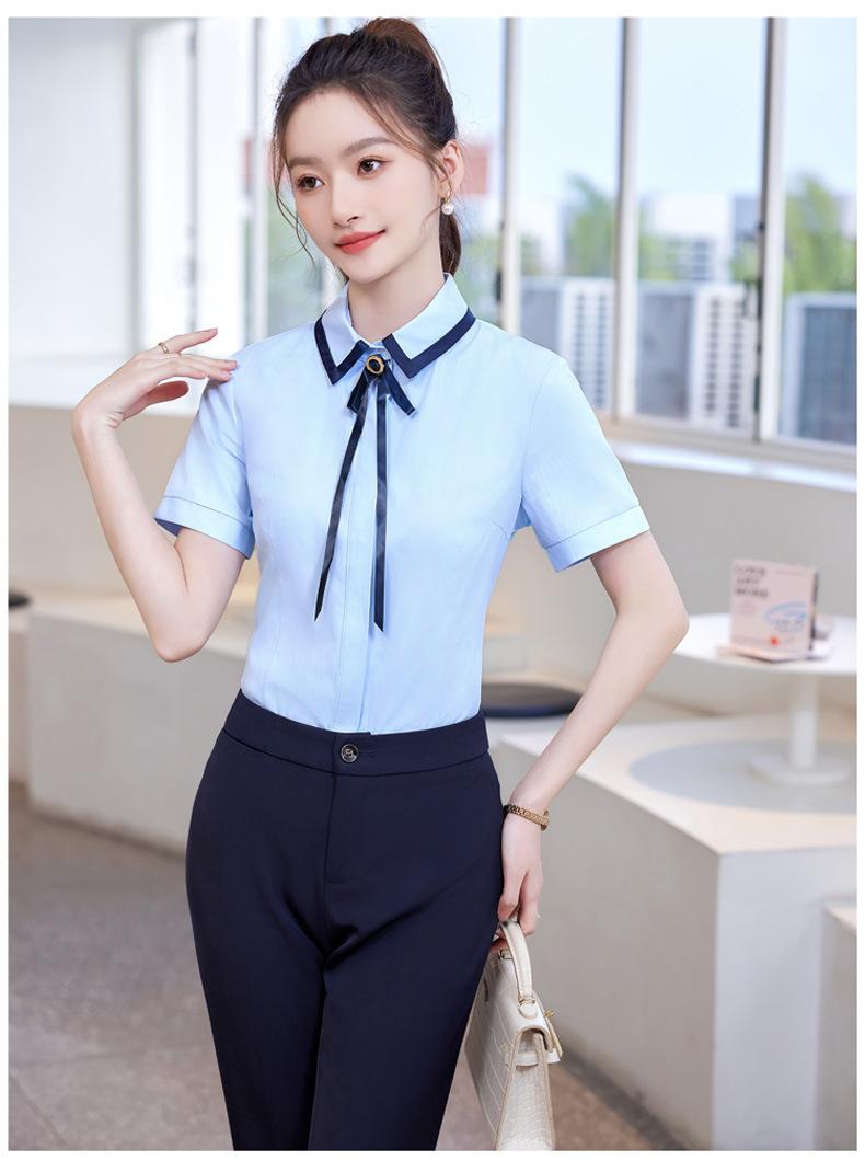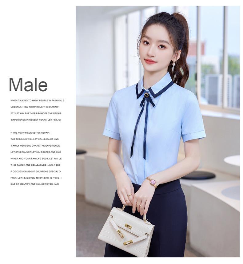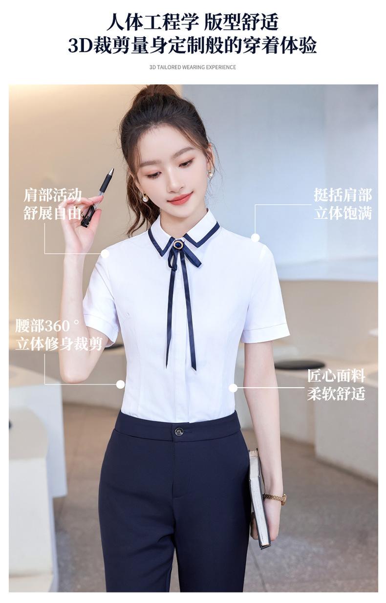 Camisa de verano ajustada de gasa con lazo y cuello cuadrado para mujer, ropa de trabajo de manga corta, camisa profesional blanca