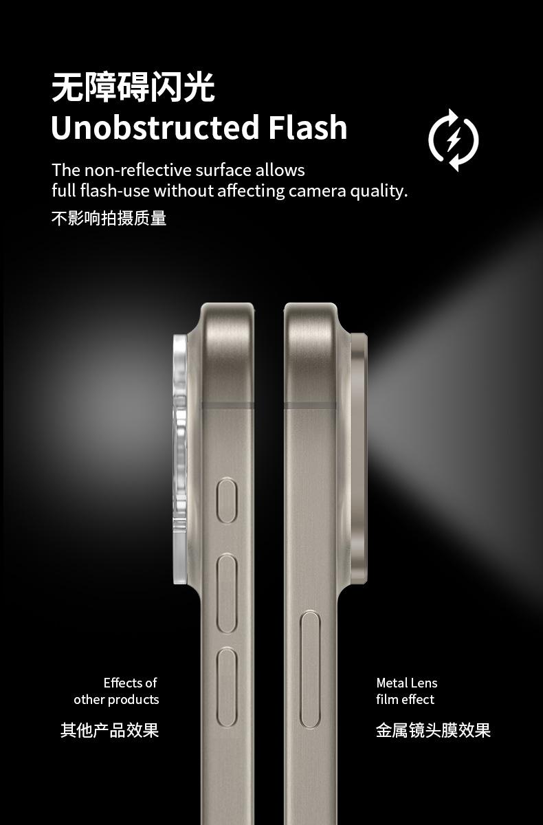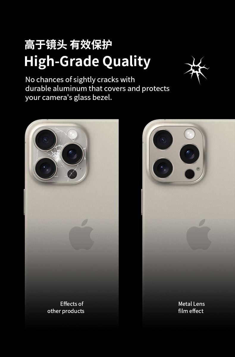 Adecuado para la película de lente de 16 pulgadas de Apple, iPhone 15 Pro Max, cámara de teléfono móvil, pegatinas de metal de titanio anticaídas al por mayor