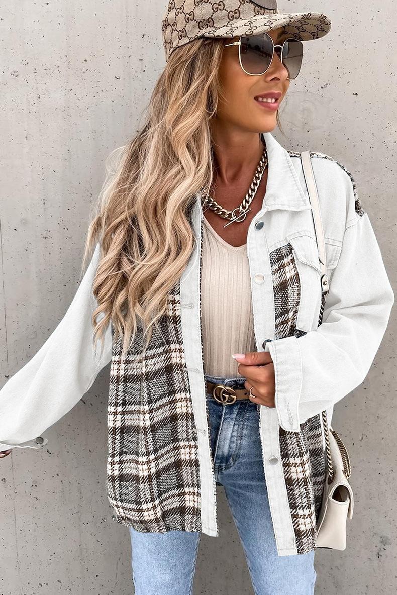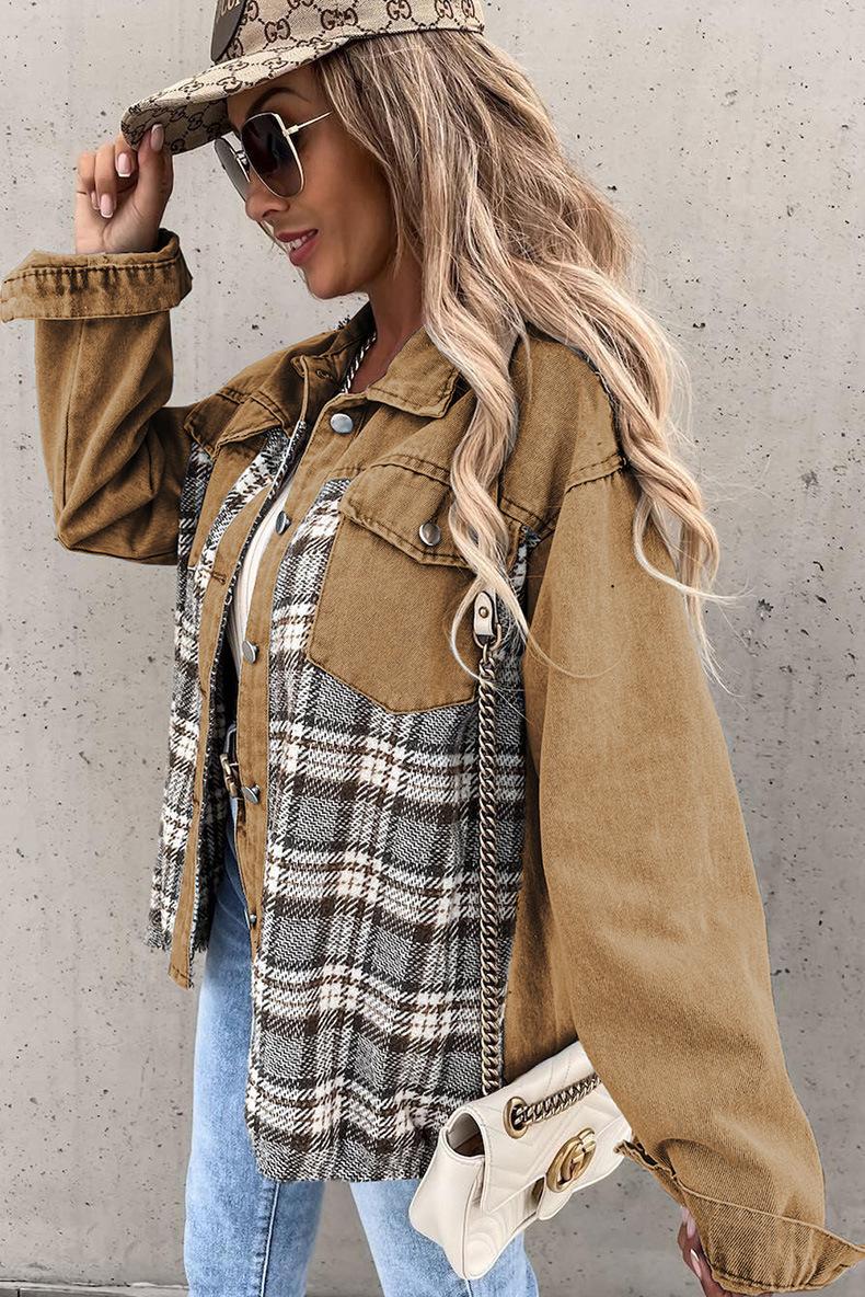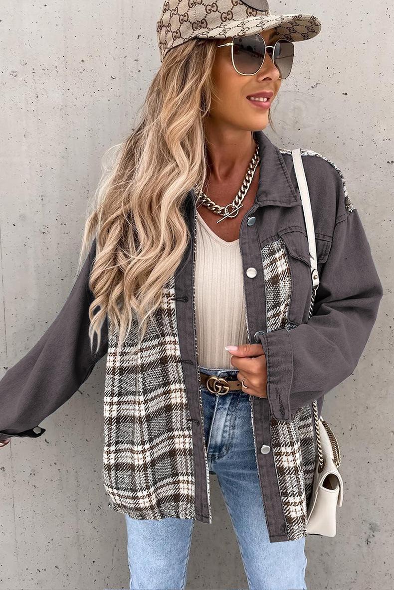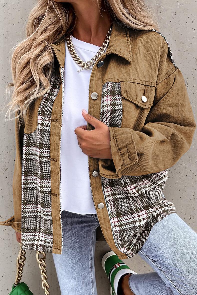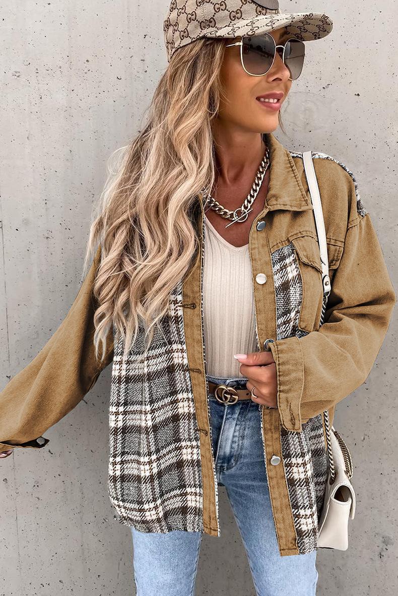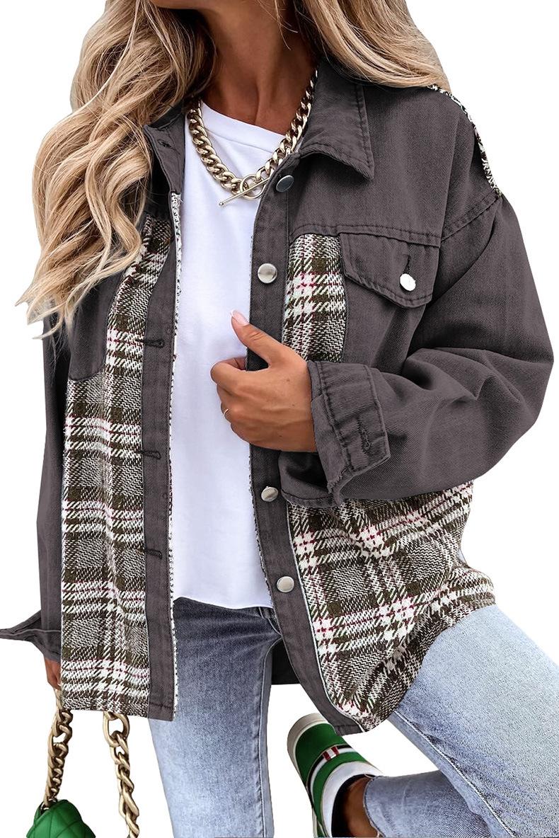| Chaqueta vaquera de sarga a cuadros con parches para mujer europea y americana, nueva chaqueta informal holgada de manga larga de Amazon 788153 |