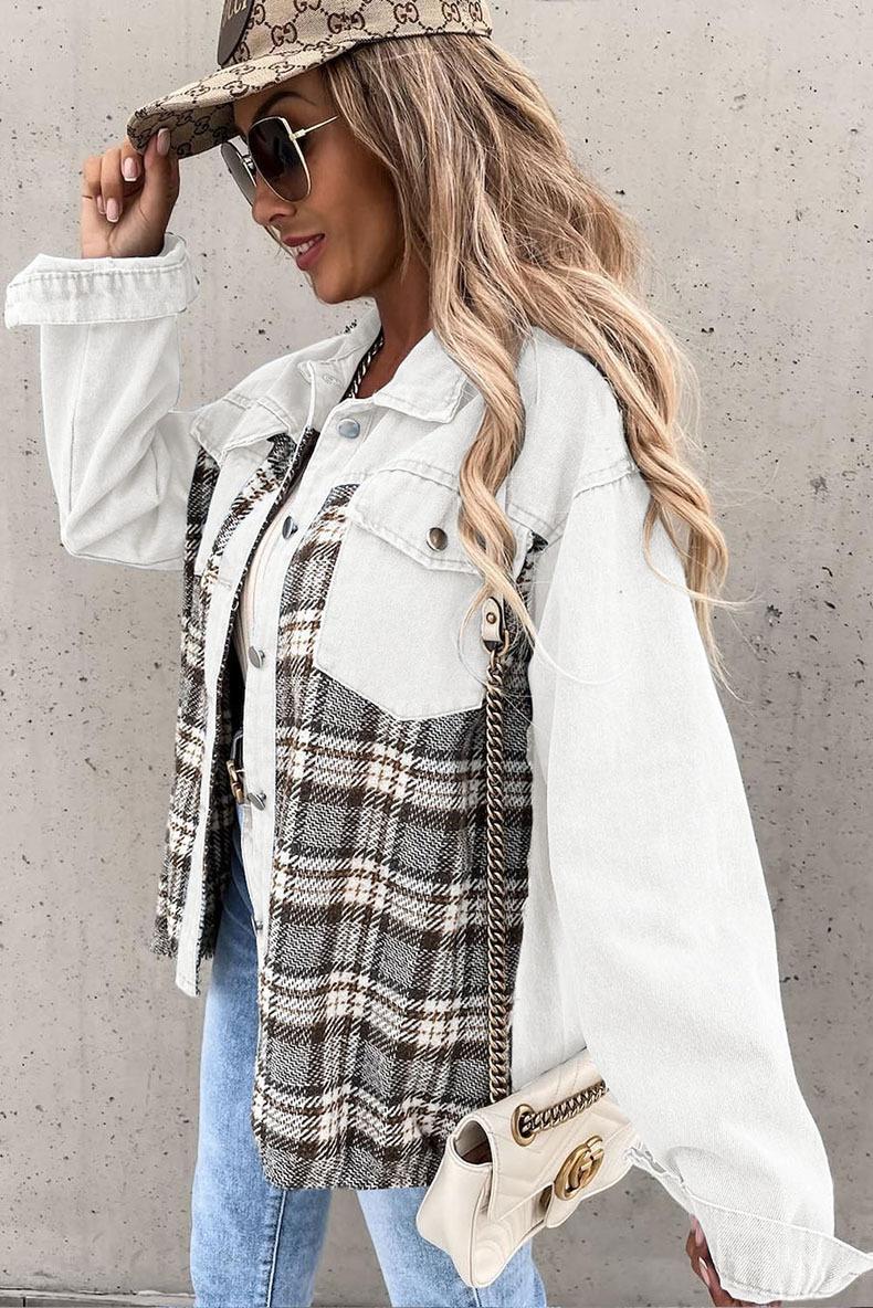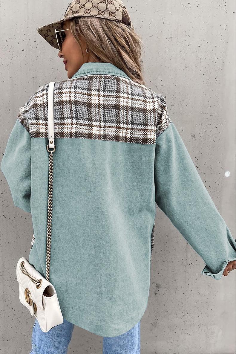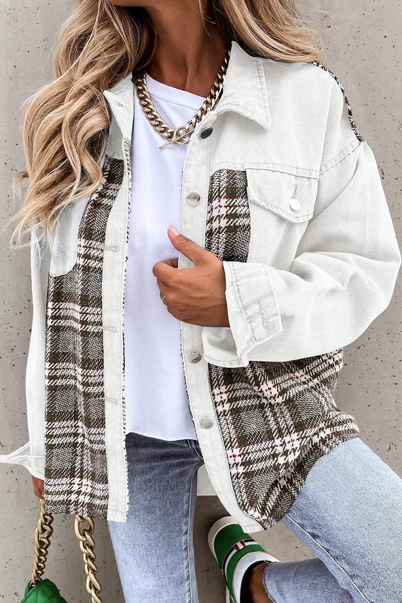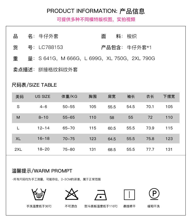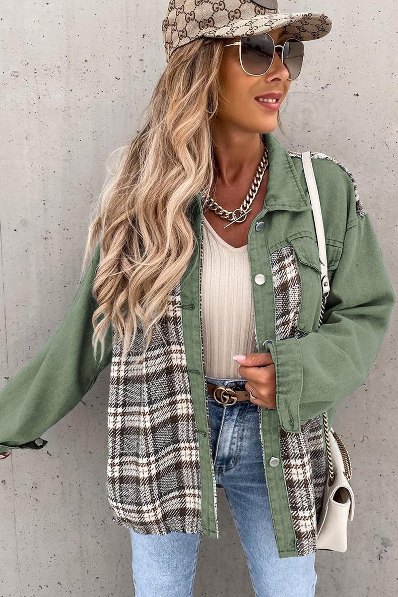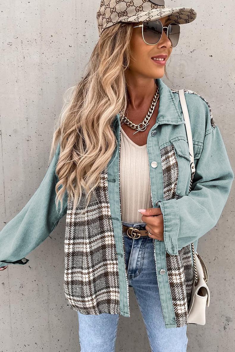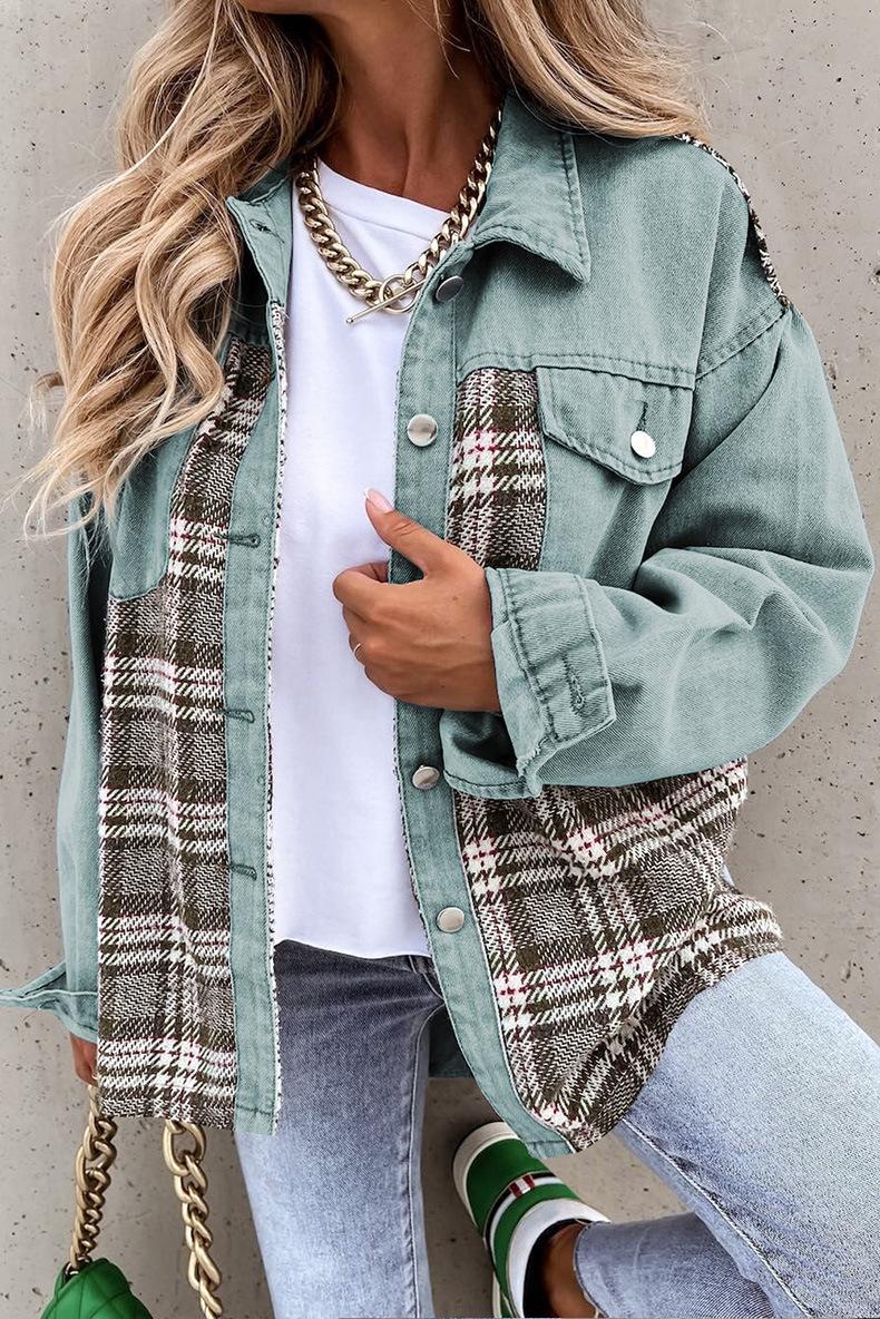 | Chaqueta vaquera de sarga a cuadros con parches para mujer europea y americana, nueva chaqueta informal holgada de manga larga de Amazon 788153 |