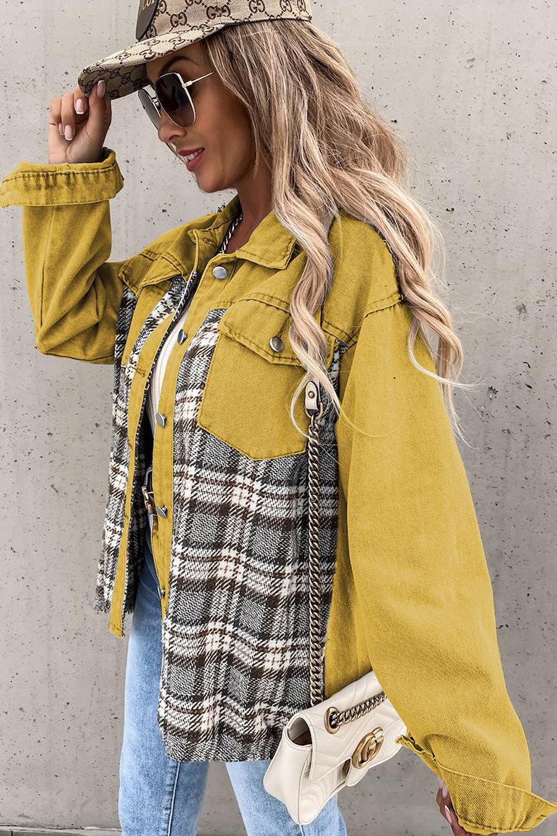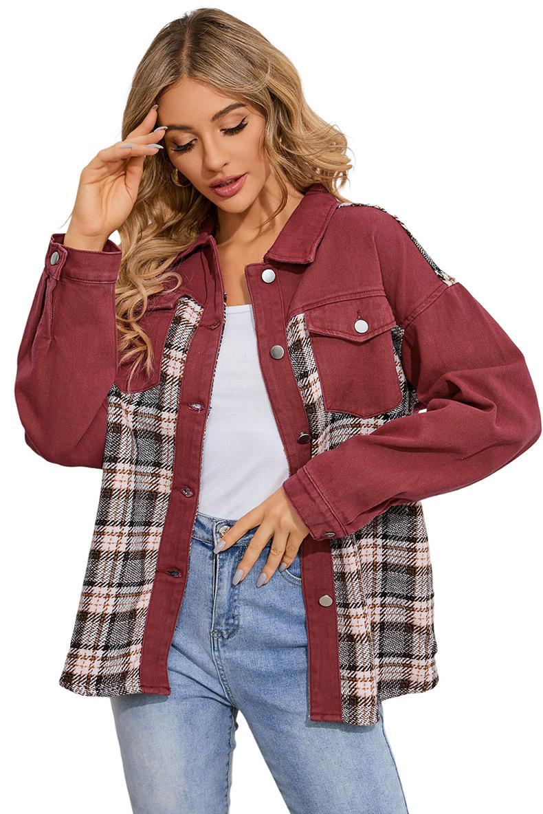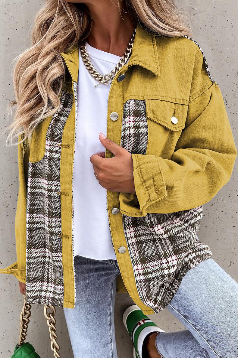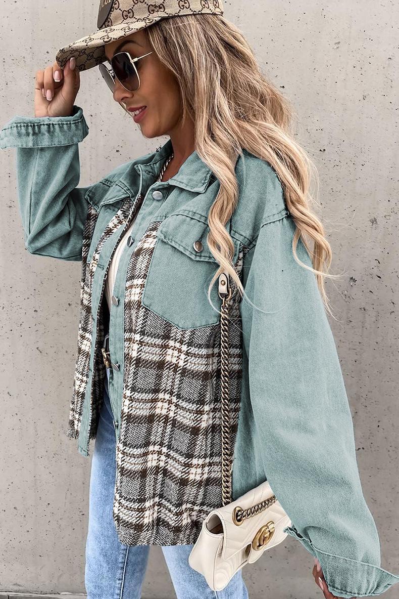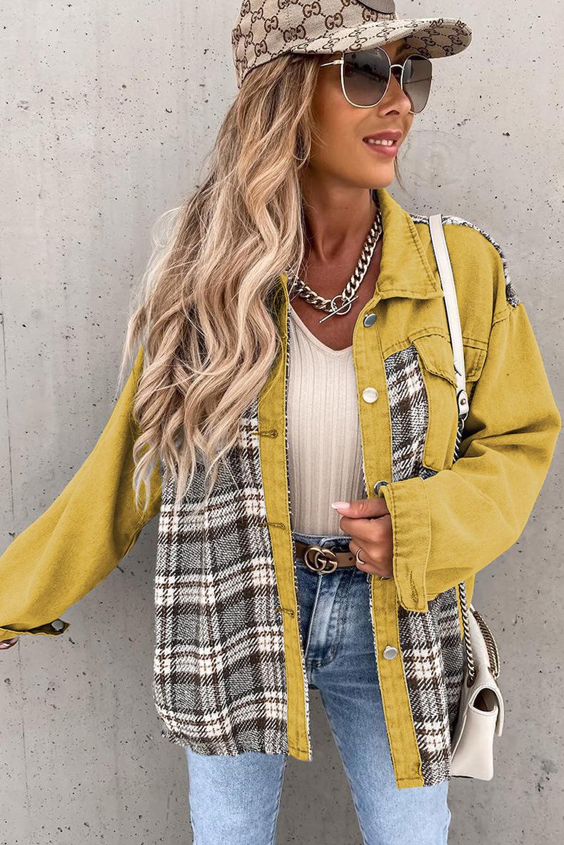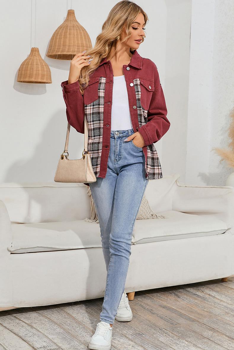 | Chaqueta vaquera de sarga a cuadros con parches para mujer europea y americana, nueva chaqueta informal holgada de manga larga de Amazon 788153 |
