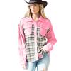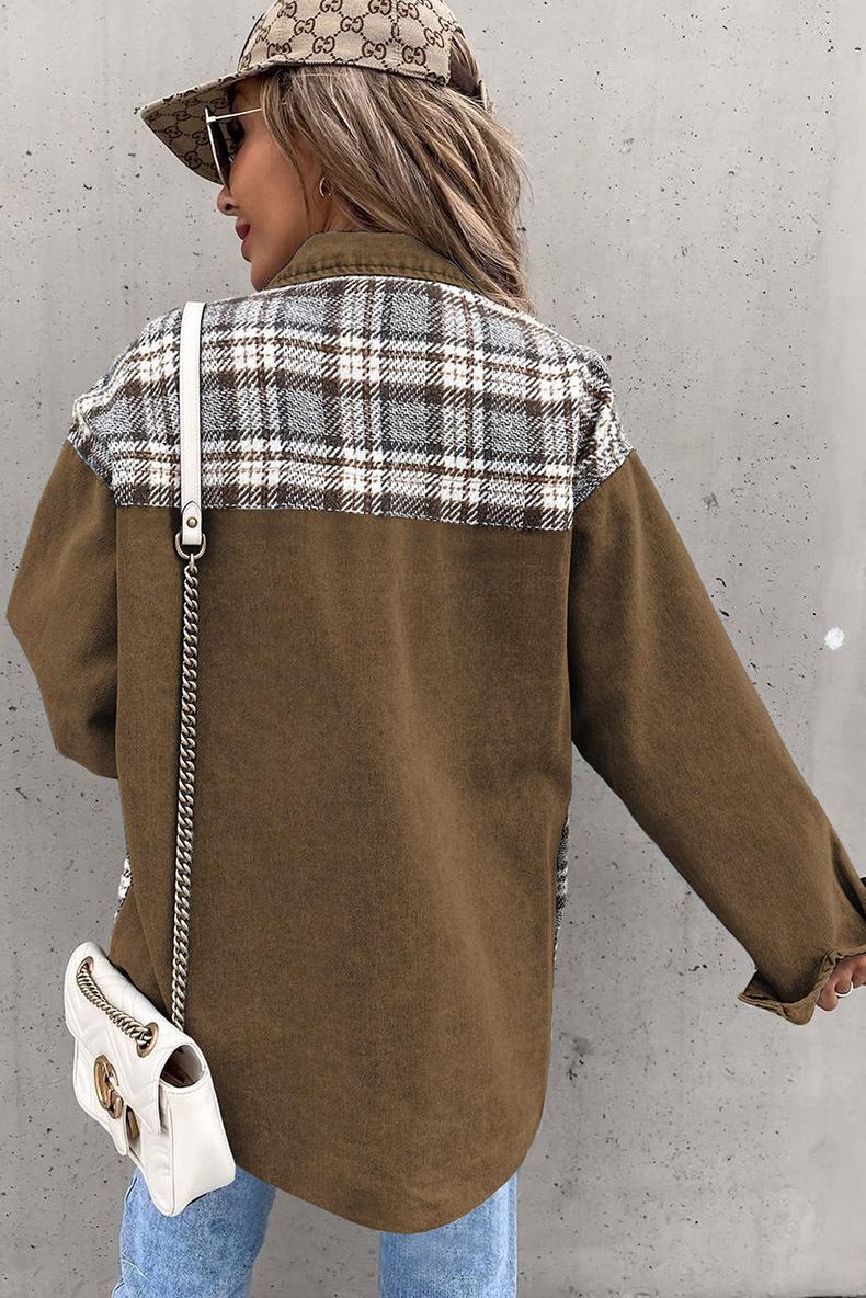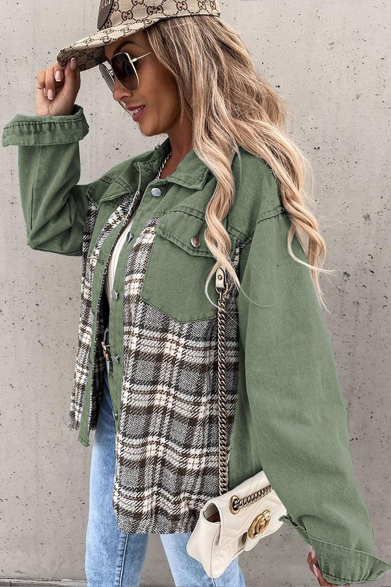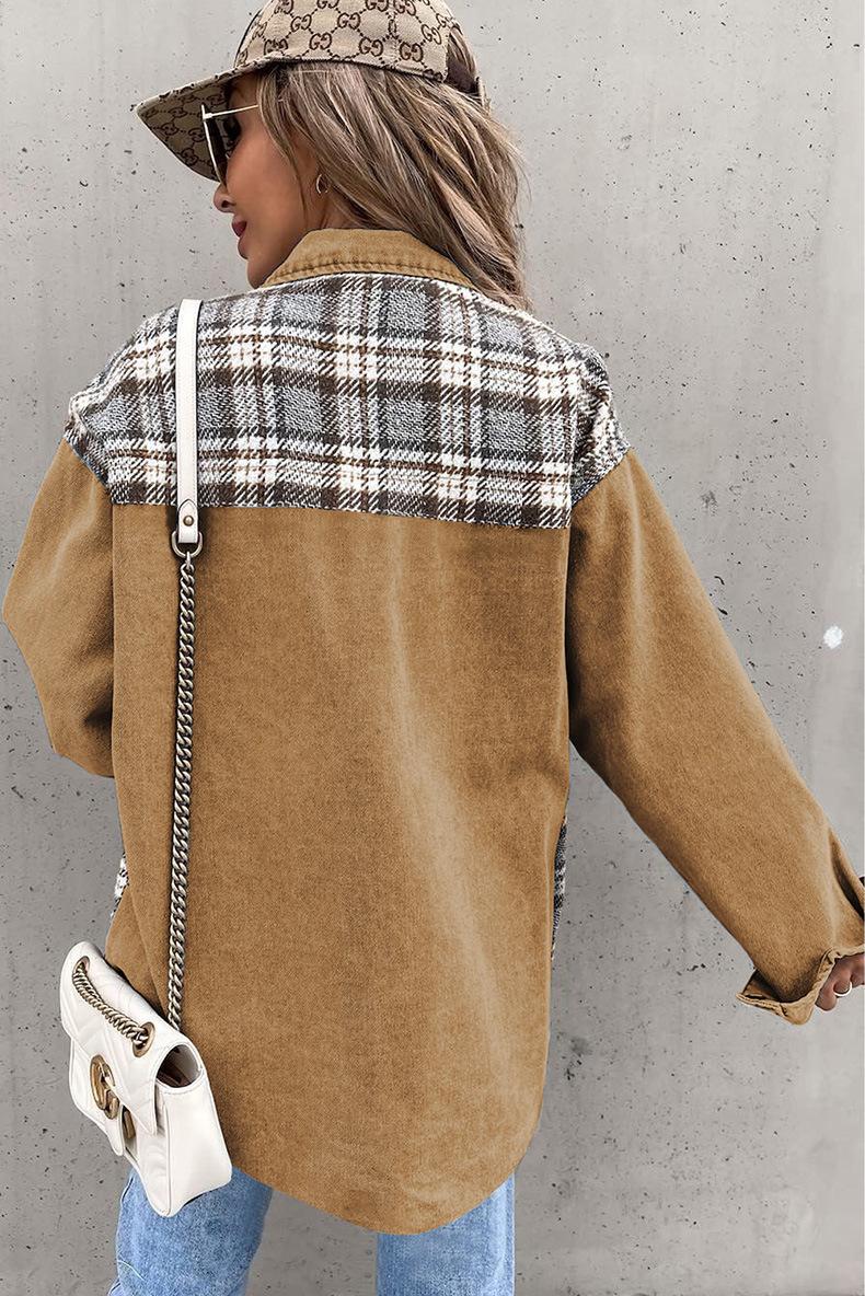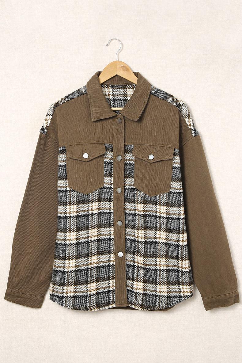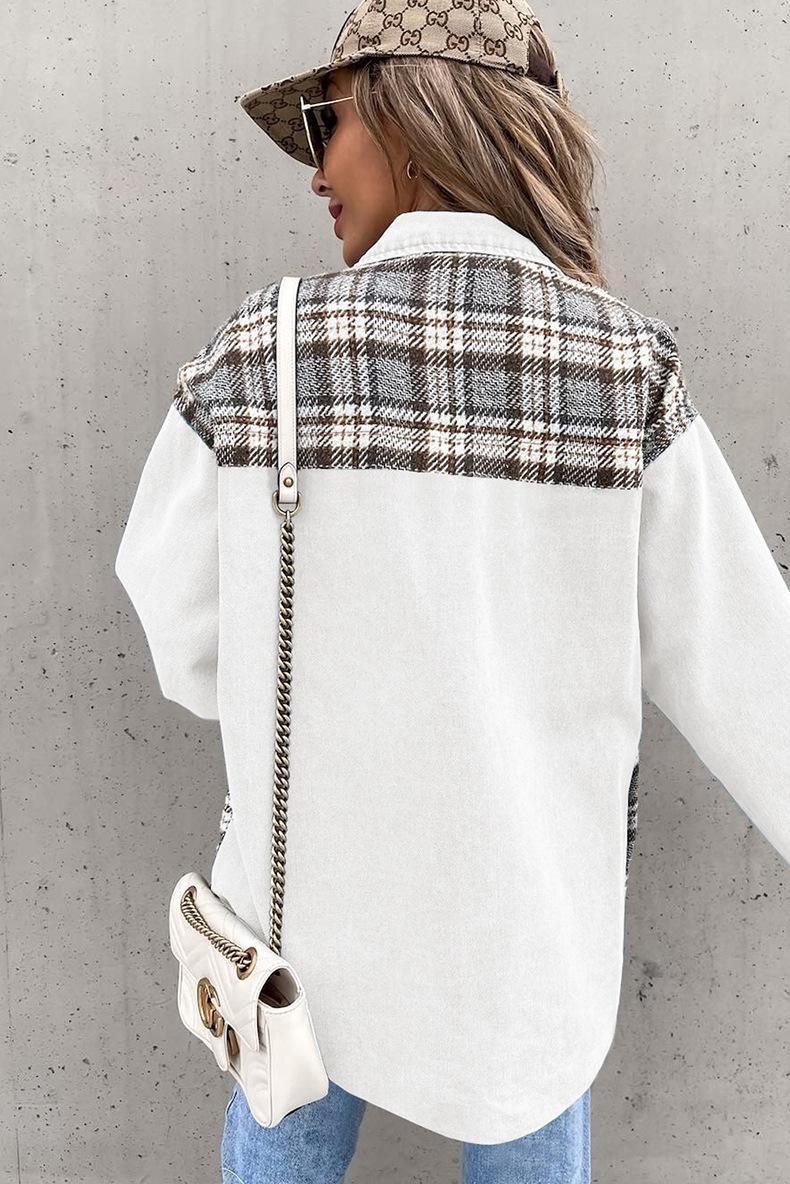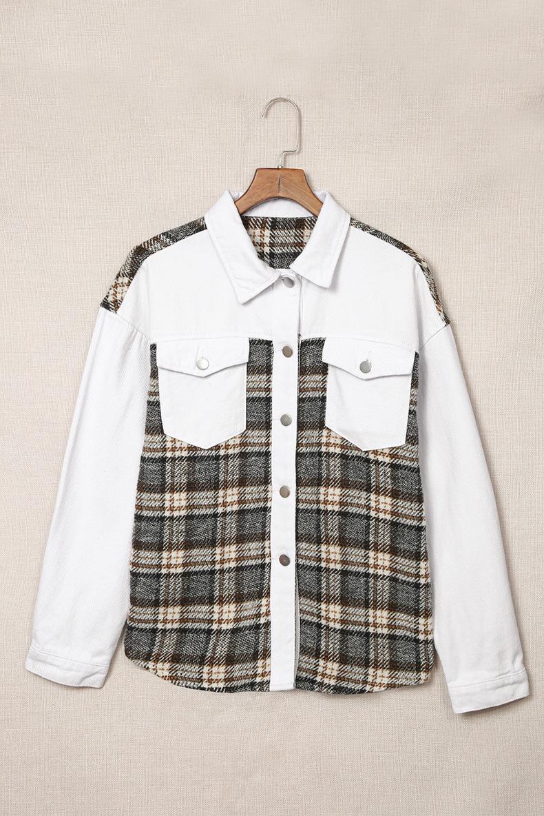 | Chaqueta vaquera de sarga a cuadros con parches para mujer europea y americana, nueva chaqueta informal holgada de manga larga de Amazon 788153 |