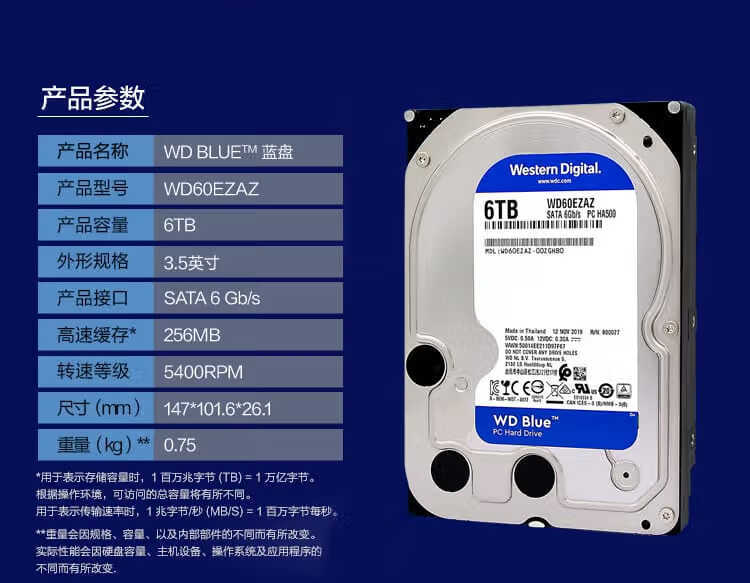 Disco duro azul original nuevo de 6 TB (Wd60Ezaz) Disco duro SATA de 3,5 pulgadas y 5400 rpm para ordenador de escritorio